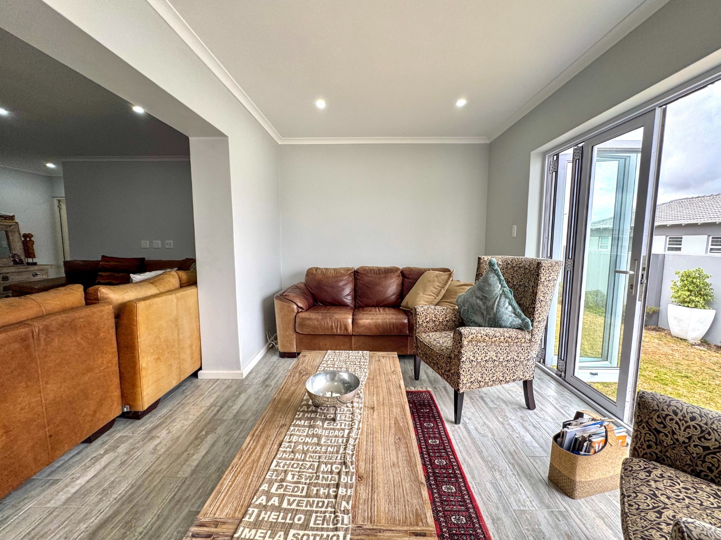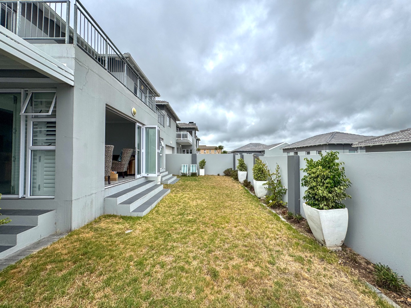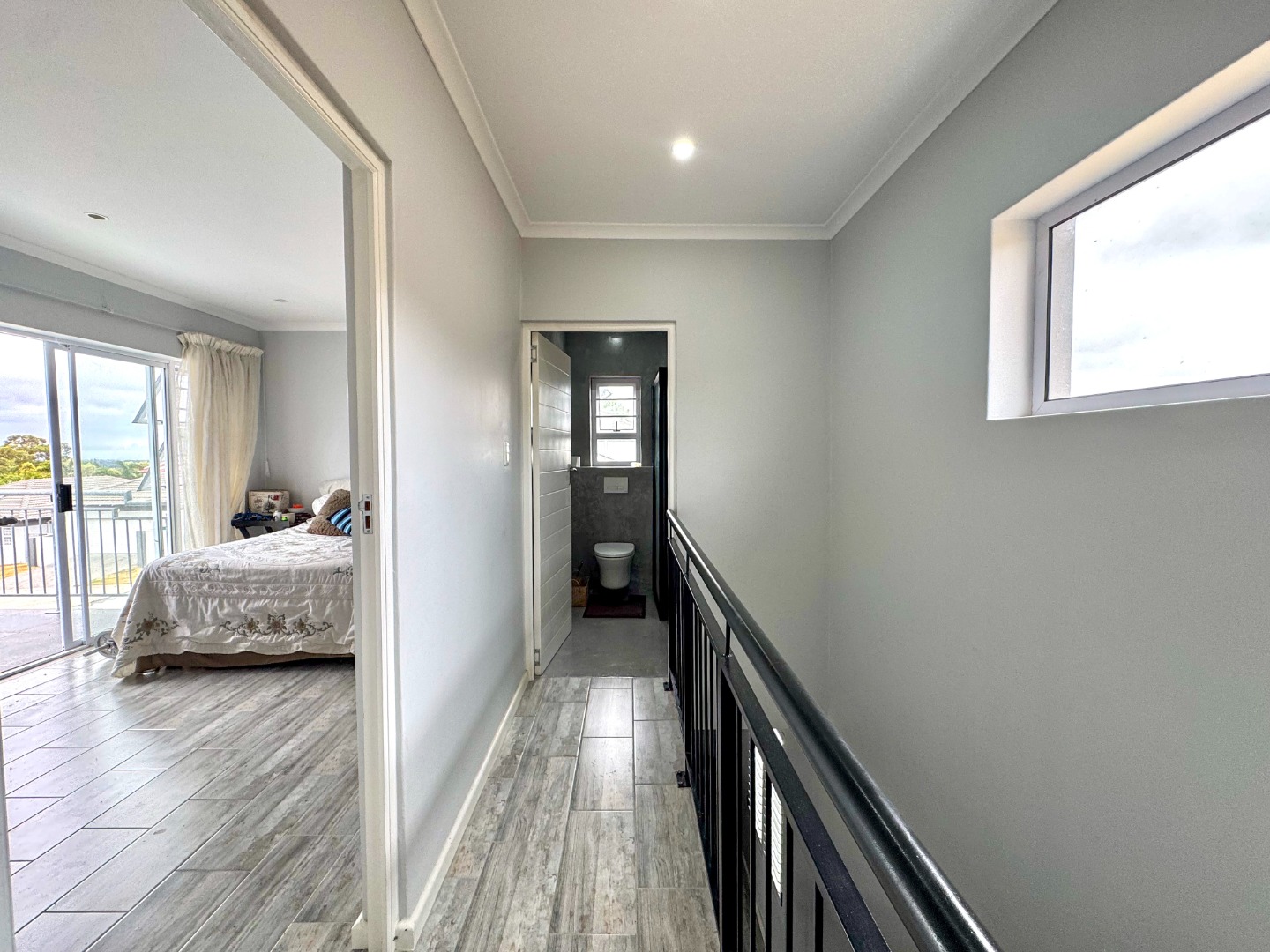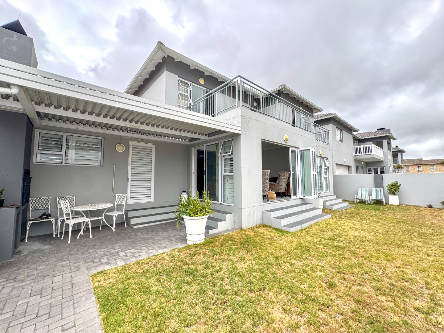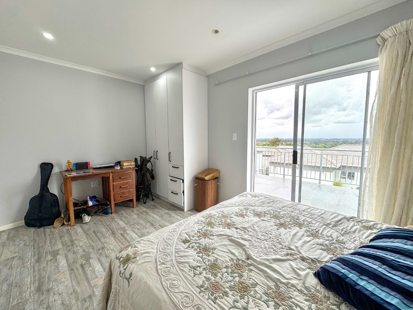 Designed for both comfort and convenience, the property includes one en-suite bathroom and an additional guest toilet, ensuring ample facilities for residents and visitors. Large bi-fold doors enhance the indoor-outdoor flow, leading to a private garden and a covered patio area, perfect for entertaining with its built-in braai. Multiple balconies offer additional outdoor retreats, providing scenic views. A double garage and paved driveway provide secure parking for up to two vehicles, and pets are allowed, making this a truly welcoming home.