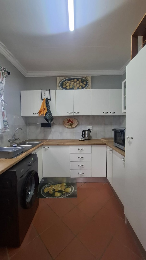 Discover this charming cottage-style home available for rent in the desirable suburb of Lorraine, Port Elizabeth. The property immediately captivates with its classic white facade, complemented by a distinctive green tiled roof and elegant dormer windows, creating a welcoming first impression. A neat gravel path with stepping stones leads to the entrance, hinting at the comfort within. Inside, this inviting home offers three comfortable bedrooms and two well-appointed bathrooms, including a convenient en-suite. The layout features a spacious lounge, a dedicated dining room perfect for entertaining, and a functional kitchen. Natural light floods the living areas through large windows and glass doors, enhancing the bright ambiance. The ground floor boasts durable tiled flooring, leading to a classic wooden staircase connecting the levels. The bright dining or sunroom provides a versatile space with direct access to the outdoors, ideal for enjoying the Port Elizabeth climate. This property is perfectly suited for families or professionals seeking a comfortable and practical rental home. Further enhancing convenience, a double garage offers secure, off-street parking for two vehicles. Situated within a secure complex, this rental property provides peace of mind for its residents. Lorraine, Port Elizabeth, is a sought-after residential area known for its convenience, community atmosphere, and accessibility to local amenities. Key Features: * 3 Bedrooms, 2 Bathrooms (1 en-suite) * 1 Lounge, 1 Dining Room, 1 Kitchen * Double Garage Parking * Charming Cottage-Style Design * Ample Natural Light * Secure Complex Living * Tiled Ground Floor * Outdoor Access