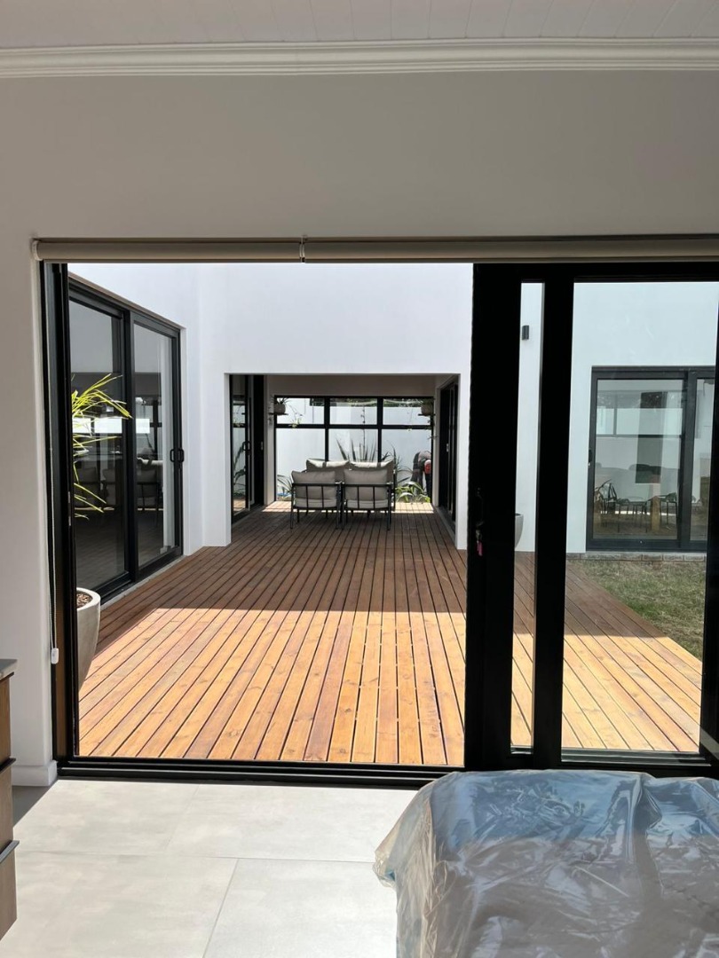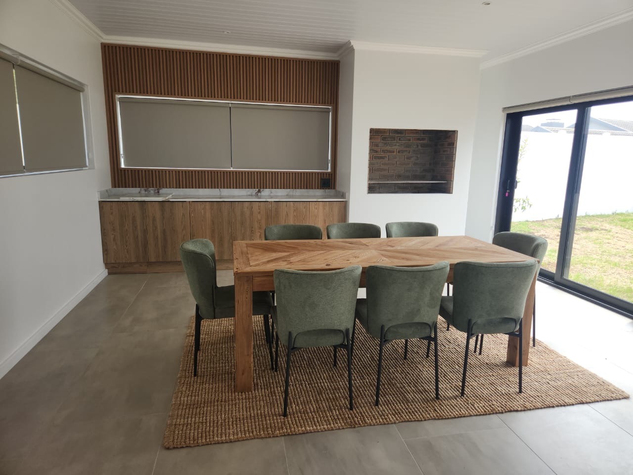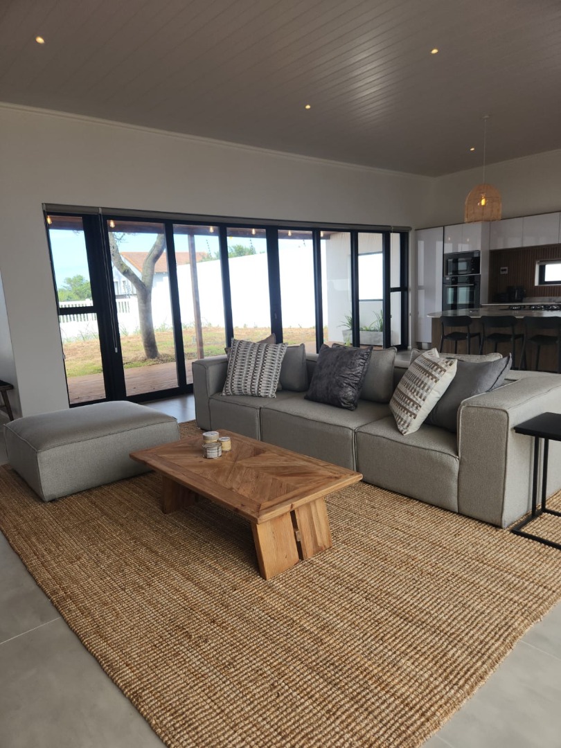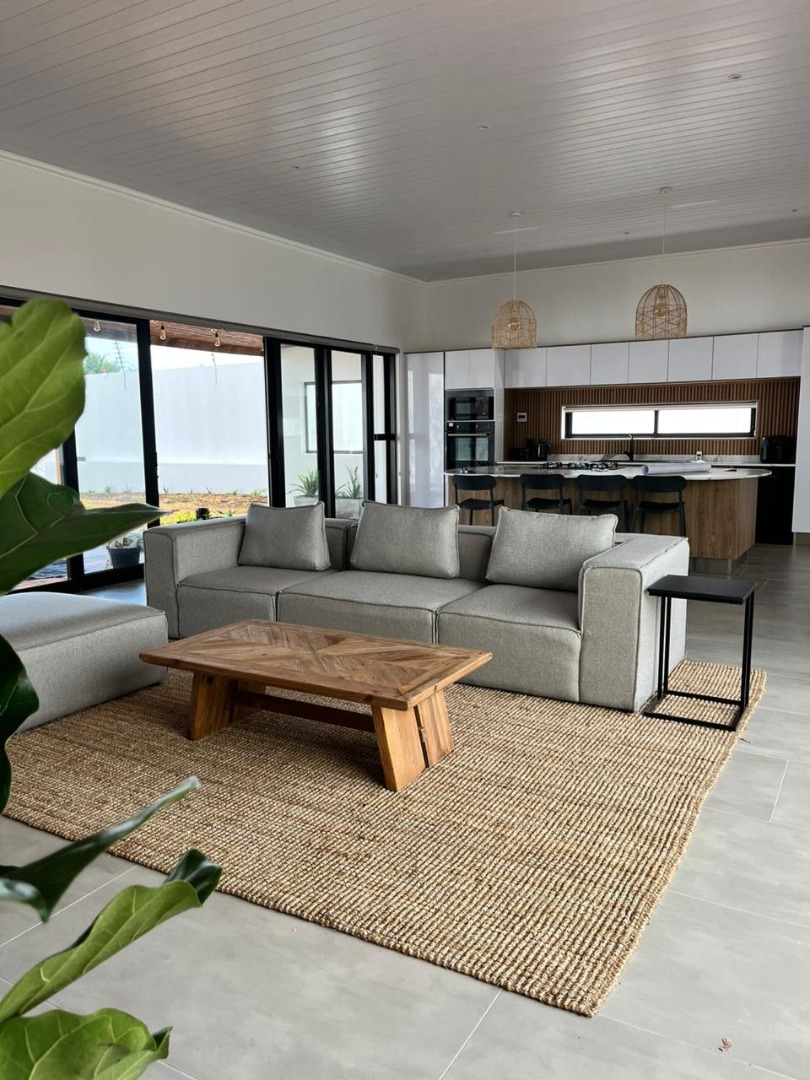 Discover modern living in this stylish, furnished rental property located within a secure gated community in Lovemore Park, Port Elizabeth. This contemporary home features three spacious bedrooms and three well-appointed bathrooms, including one en-suite, alongside a convenient guest toilet. The interior boasts an open-plan design, seamlessly connecting the living spaces, highlighted by elegant wood ceilings and a sophisticated slatted wood feature wall. The heart of the home is a gourmet kitchen, equipped with a large island, integrated gas hob, sleek two-tone cabinetry, and luxurious marble-look countertops, complemented by a dedicated pantry. Two comfortable lounges, one serving as a family TV room, and a distinct dining area provide ample space for relaxation and entertaining. Expansive sliding glass doors invite abundant natural light and create a seamless flow to the outdoor patio and deck, perfect for enjoying the built-in braai and private garden. Designed for a convenient lifestyle, this furnished residence is ideal for professionals or families seeking a lock-up-and-go option. Security is paramount, with features including an access gate, alarm system, electric fencing, security gate, and an intercom system, all within a secure gated community. Further enhancing its appeal are practical amenities such as a laundry area, double garage, additional parking, solar geyser, and water tanks, ensuring comfort and efficiency. Lovemore Park offers a tranquil suburban environment while maintaining easy access to Port Elizabeth's amenities. This location provides a balanced lifestyle, combining peace with proximity to urban conveniences. Key Features: * 3 Bedrooms, 3 Bathrooms (1 En-suite) * Fully Furnished * Modern Open-Plan Living * Gourmet Kitchen with Gas Hob & Island * Two Lounges & Dining Area * Patio, Deck & Built-in Braai * Double Garage & Additional Parking * Gated Community Security * Solar Geyser & Water Tanks