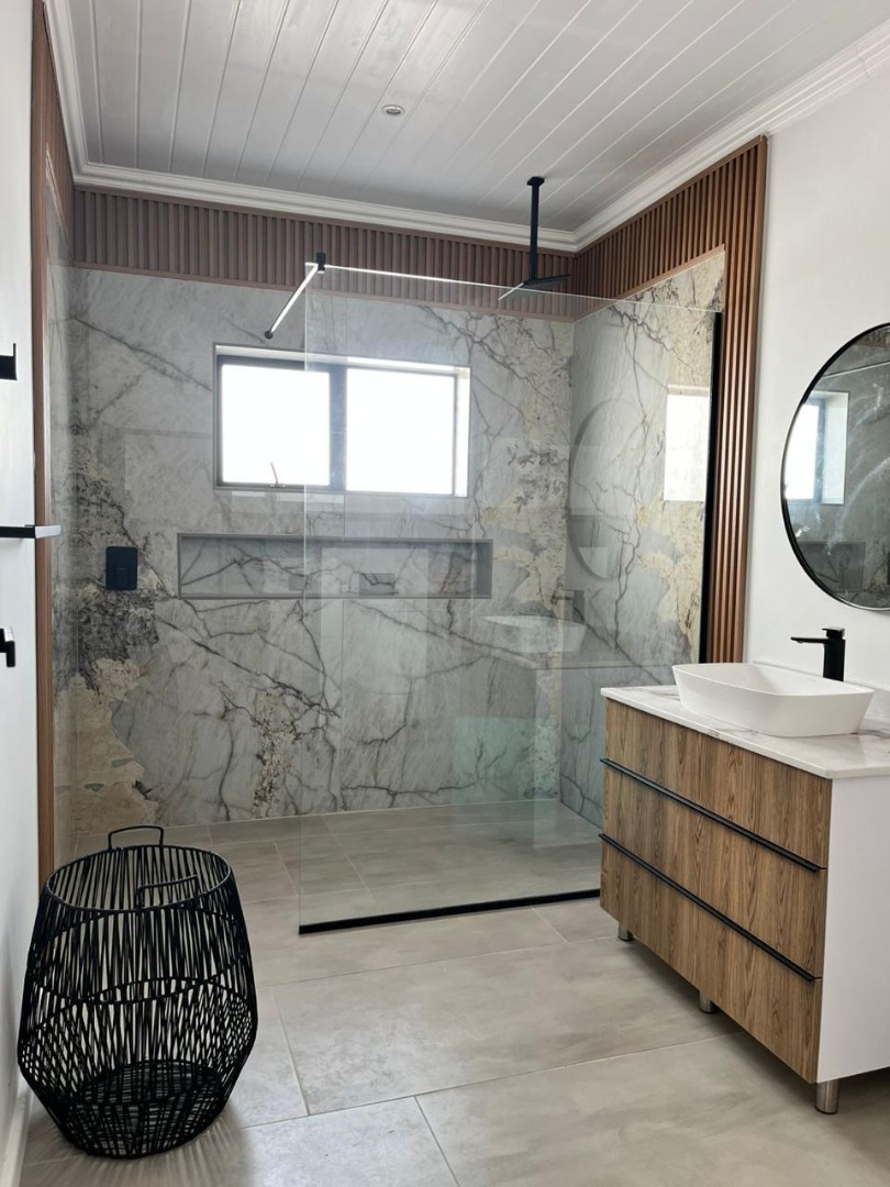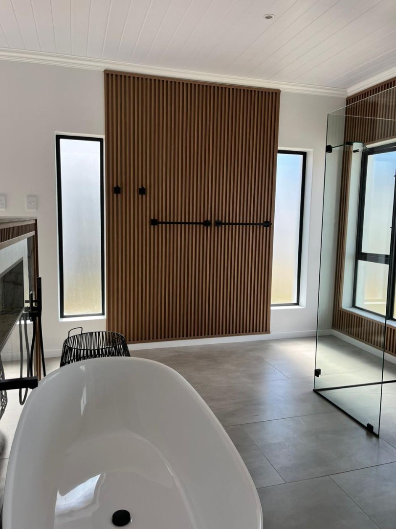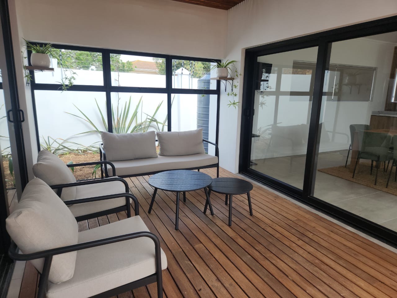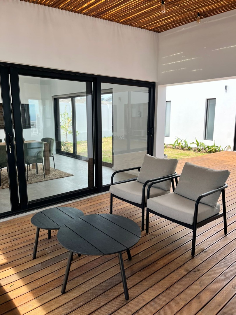 Discover modern living in this stylish, furnished rental property located within a secure gated community in Lovemore Park, Port Elizabeth. This contemporary home features three spacious bedrooms and three well-appointed bathrooms, including one en-suite, alongside a convenient guest toilet. The interior boasts an open-plan design, seamlessly connecting the living spaces, highlighted by elegant wood ceilings and a sophisticated slatted wood feature wall. The heart of the home is a gourmet kitchen, equipped with a large island, integrated gas hob, sleek two-tone cabinetry, and luxurious marble-look countertops, complemented by a dedicated pantry. Two comfortable lounges, one serving as a family TV room, and a distinct dining area provide ample space for relaxation and entertaining. Expansive sliding glass doors invite abundant natural light and create a seamless flow to the outdoor patio and deck, perfect for enjoying the built-in braai and private garden. Designed for a convenient lifestyle, this furnished residence is ideal for professionals or families seeking a lock-up-and-go option. Security is paramount, with features including an access gate, alarm system, electric fencing, security gate, and an intercom system, all within a secure gated community. Further enhancing its appeal are practical amenities such as a laundry area, double garage, additional parking, solar geyser, and water tanks, ensuring comfort and efficiency. Lovemore Park offers a tranquil suburban environment while maintaining easy access to Port Elizabeth's amenities. This location provides a balanced lifestyle, combining peace with proximity to urban conveniences. Key Features: * 3 Bedrooms, 3 Bathrooms (1 En-suite) * Fully Furnished * Modern Open-Plan Living * Gourmet Kitchen with Gas Hob & Island * Two Lounges & Dining Area * Patio, Deck & Built-in Braai * Double Garage & Additional Parking * Gated Community Security * Solar Geyser & Water Tanks