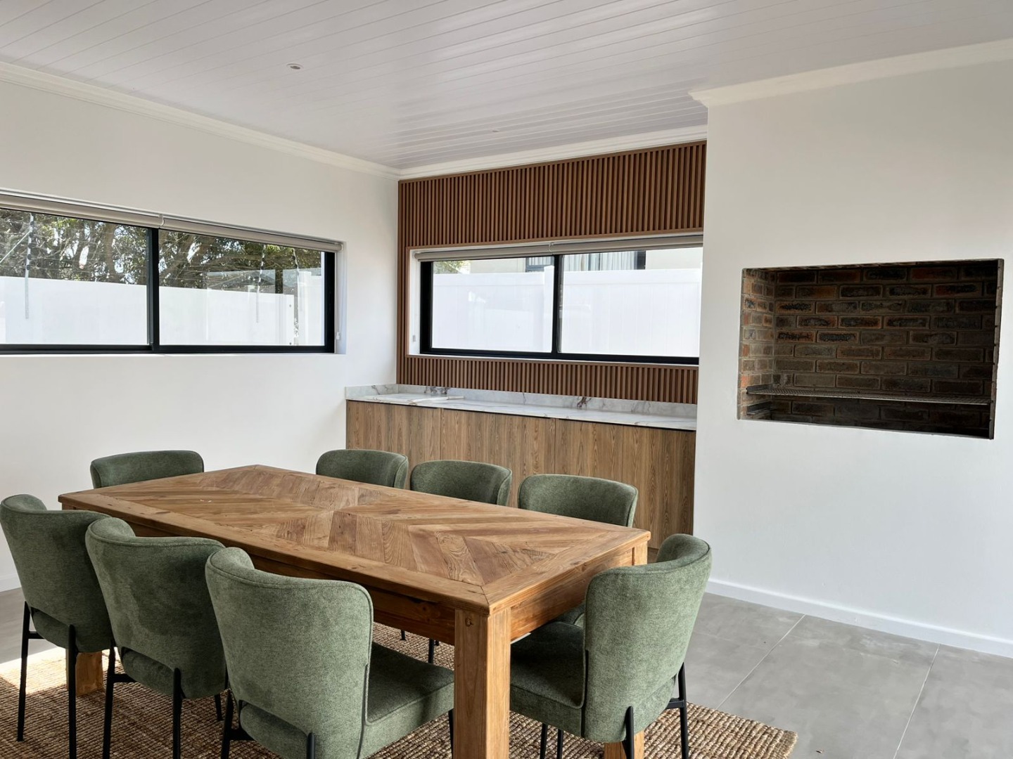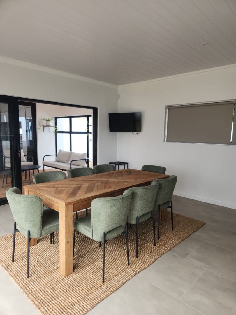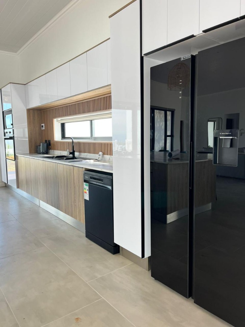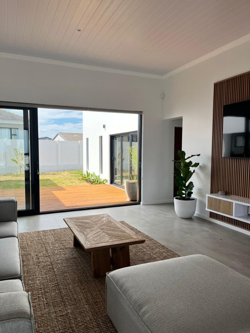 Discover modern living in this stylish, furnished rental property located within a secure gated community in Lovemore Park, Port Elizabeth. This contemporary home features three spacious bedrooms and three well-appointed bathrooms, including one en-suite, alongside a convenient guest toilet. The interior boasts an open-plan design, seamlessly connecting the living spaces, highlighted by elegant wood ceilings and a sophisticated slatted wood feature wall. The heart of the home is a gourmet kitchen, equipped with a large island, integrated gas hob, sleek two-tone cabinetry, and luxurious marble-look countertops, complemented by a dedicated pantry. Two comfortable lounges, one serving as a family TV room, and a distinct dining area provide ample space for relaxation and entertaining. Expansive sliding glass doors invite abundant natural light and create a seamless flow to the outdoor patio and deck, perfect for enjoying the built-in braai and private garden. Designed for a convenient lifestyle, this furnished residence is ideal for professionals or families seeking a lock-up-and-go option. Security is paramount, with features including an access gate, alarm system, electric fencing, security gate, and an intercom system, all within a secure gated community. Further enhancing its appeal are practical amenities such as a laundry area, double garage, additional parking, solar geyser, and water tanks, ensuring comfort and efficiency. Lovemore Park offers a tranquil suburban environment while maintaining easy access to Port Elizabeth's amenities. This location provides a balanced lifestyle, combining peace with proximity to urban conveniences. Key Features: * 3 Bedrooms, 3 Bathrooms (1 En-suite) * Fully Furnished * Modern Open-Plan Living * Gourmet Kitchen with Gas Hob & Island * Two Lounges & Dining Area * Patio, Deck & Built-in Braai * Double Garage & Additional Parking * Gated Community Security * Solar Geyser & Water Tanks