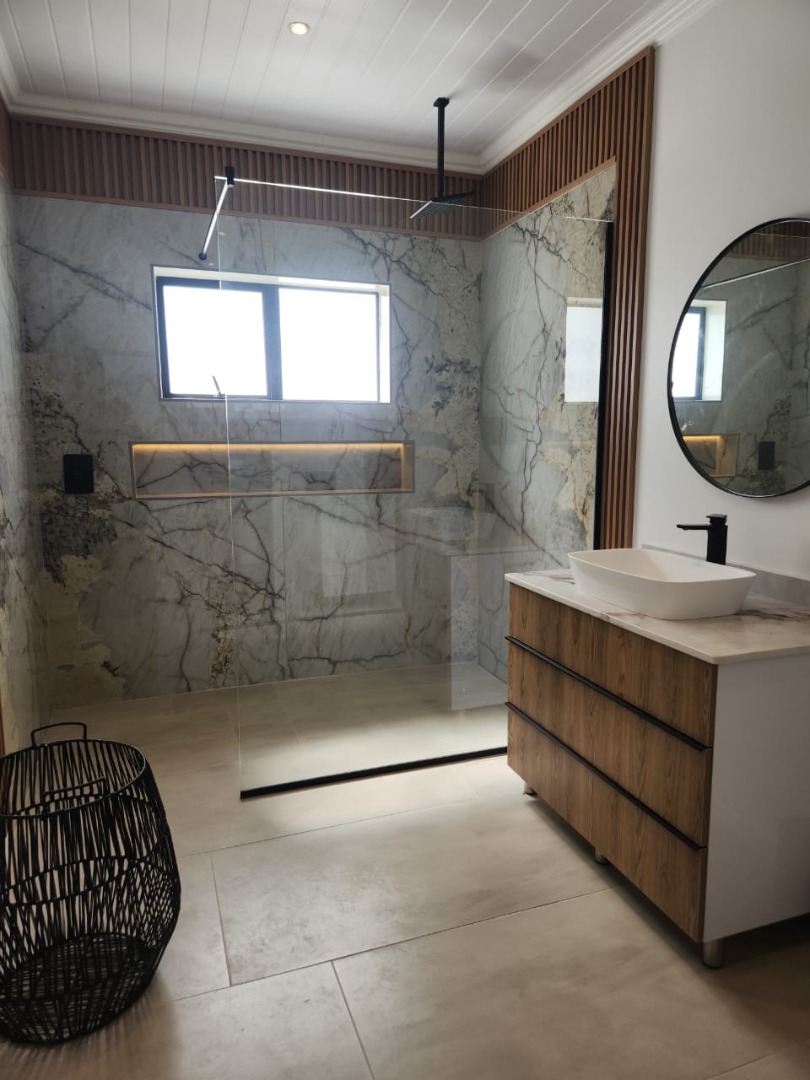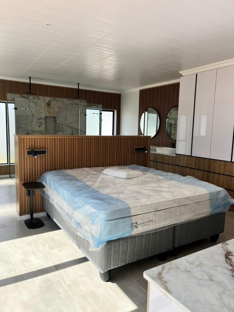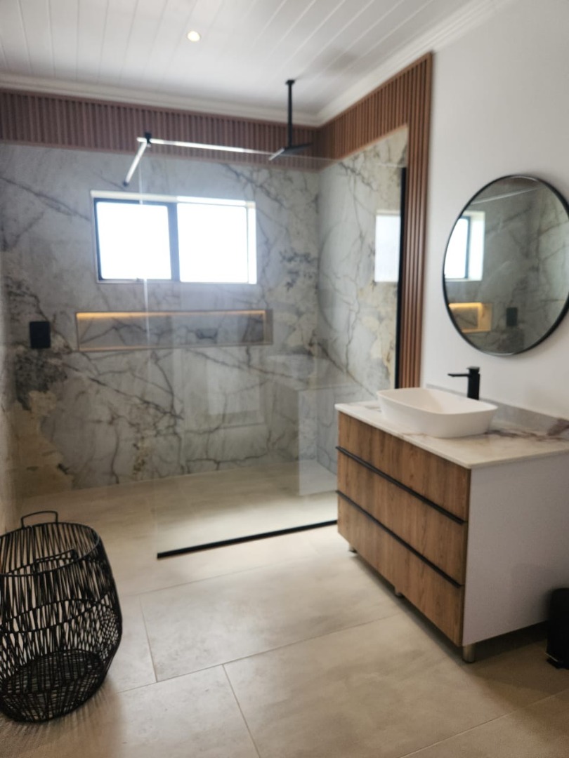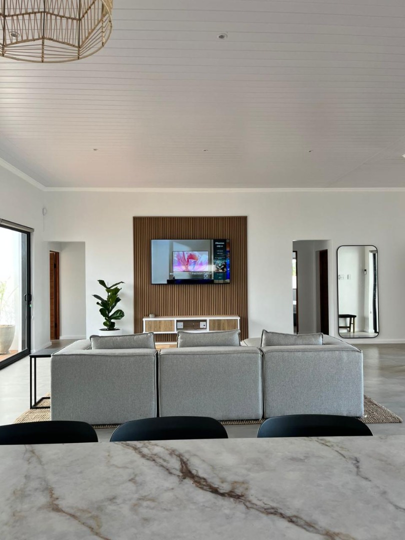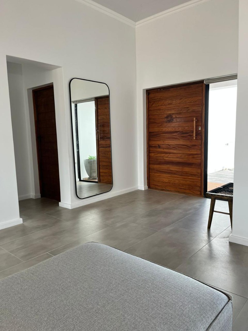 Discover modern living in this stylish, furnished rental property located within a secure gated community in Lovemore Park, Port Elizabeth. This contemporary home features three spacious bedrooms and three well-appointed bathrooms, including one en-suite, alongside a convenient guest toilet. The interior boasts an open-plan design, seamlessly connecting the living spaces, highlighted by elegant wood ceilings and a sophisticated slatted wood feature wall. The heart of the home is a gourmet kitchen, equipped with a large island, integrated gas hob, sleek two-tone cabinetry, and luxurious marble-look countertops, complemented by a dedicated pantry. Two comfortable lounges, one serving as a family TV room, and a distinct dining area provide ample space for relaxation and entertaining. Expansive sliding glass doors invite abundant natural light and create a seamless flow to the outdoor patio and deck, perfect for enjoying the built-in braai and private garden. Designed for a convenient lifestyle, this furnished residence is ideal for professionals or families seeking a lock-up-and-go option. Security is paramount, with features including an access gate, alarm system, electric fencing, security gate, and an intercom system, all within a secure gated community. Further enhancing its appeal are practical amenities such as a laundry area, double garage, additional parking, solar geyser, and water tanks, ensuring comfort and efficiency. Lovemore Park offers a tranquil suburban environment while maintaining easy access to Port Elizabeth's amenities. This location provides a balanced lifestyle, combining peace with proximity to urban conveniences. Key Features: * 3 Bedrooms, 3 Bathrooms (1 En-suite) * Fully Furnished * Modern Open-Plan Living * Gourmet Kitchen with Gas Hob & Island * Two Lounges & Dining Area * Patio, Deck & Built-in Braai * Double Garage & Additional Parking * Gated Community Security * Solar Geyser & Water Tanks