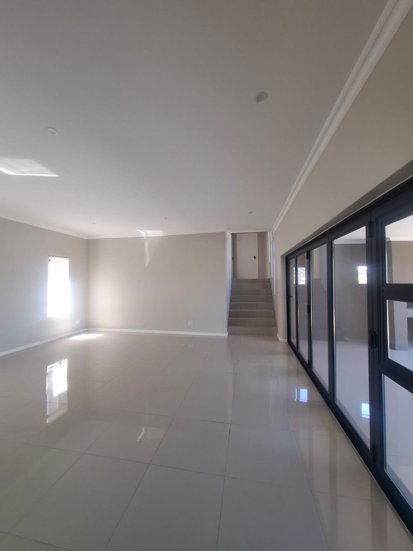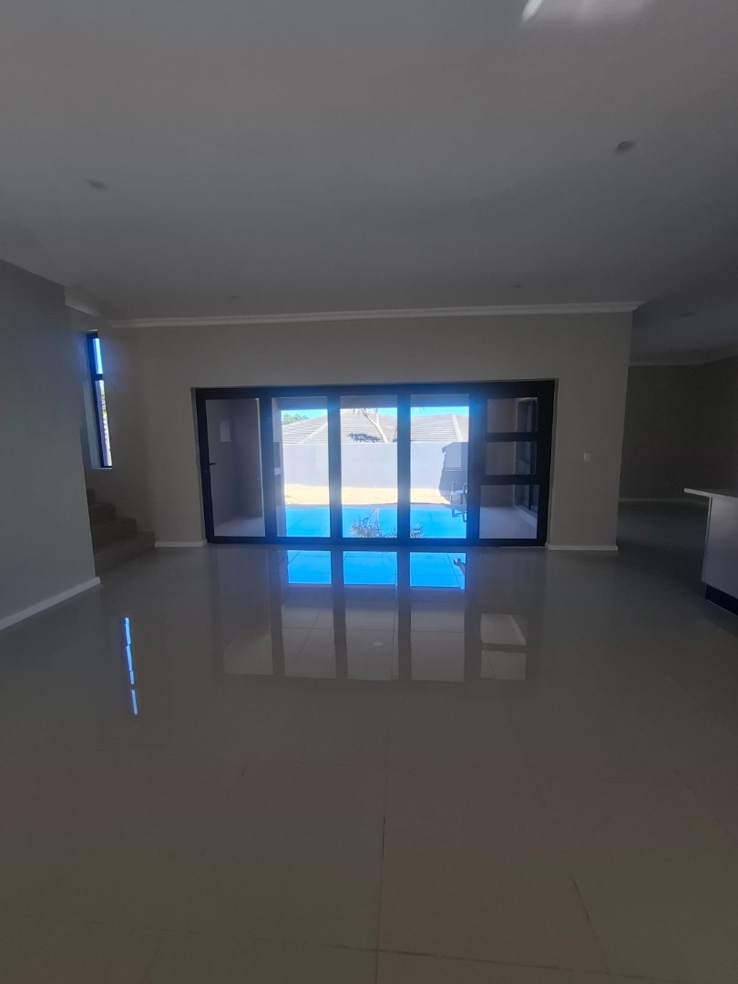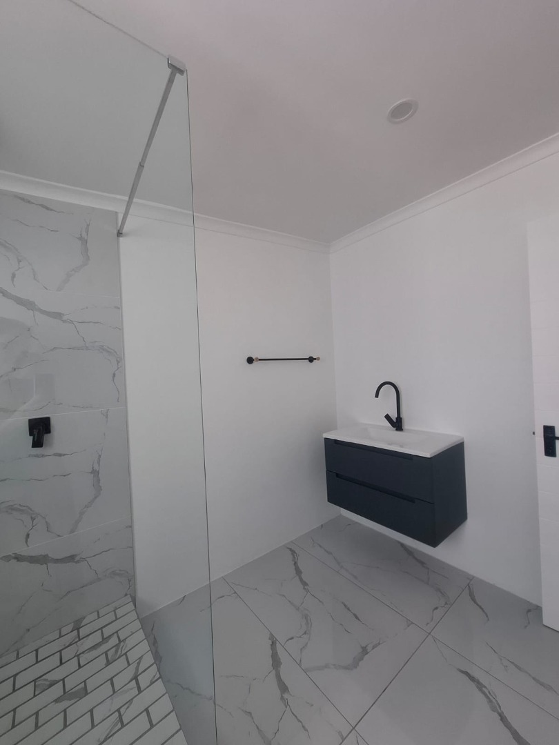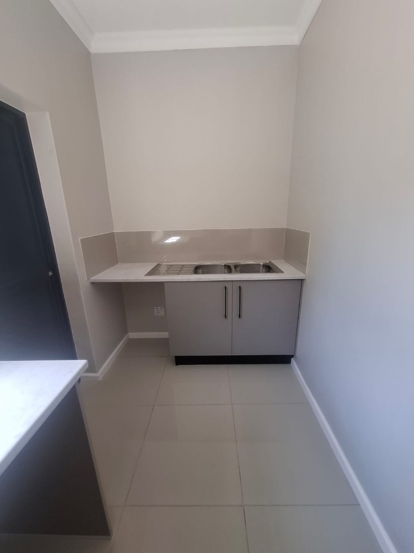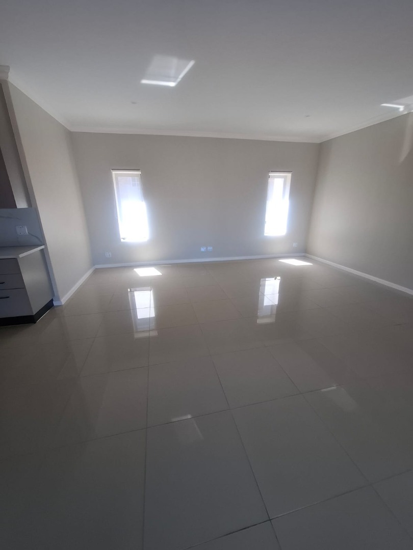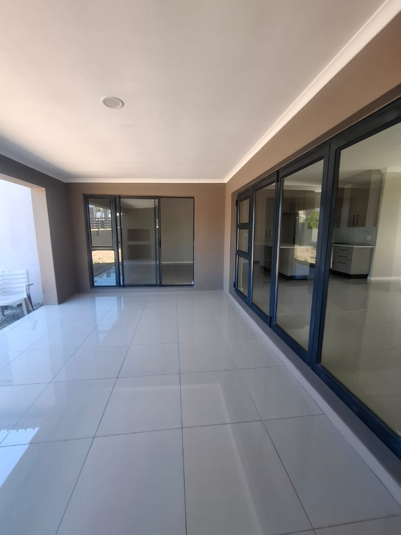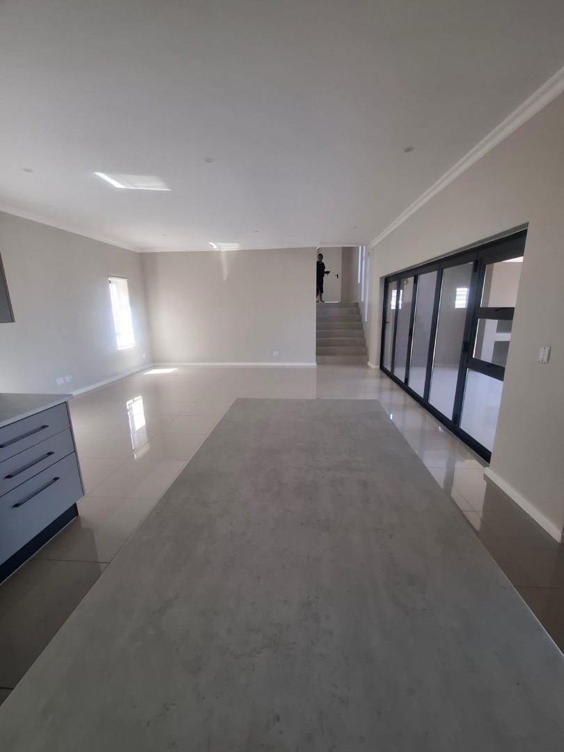 Experience unparalleled contemporary living in this newly constructed, sophisticated residence available for rent in Lovemore Park, Port Elizabeth. This exquisite home presents three opulent bedrooms and two pristine bathrooms, including a luxurious ensuite. The expansive open-plan design seamlessly integrates a refined lounge, an elegant dining area, and a state-of-the-art kitchen, adorned with sleek grey cabinetry, a substantial island, and a stylish marble-look backsplash. Reflective tiled flooring and abundant natural light from extensive sliding glass doors complete this gourmet space.
