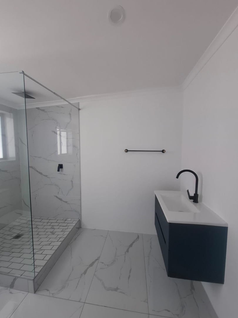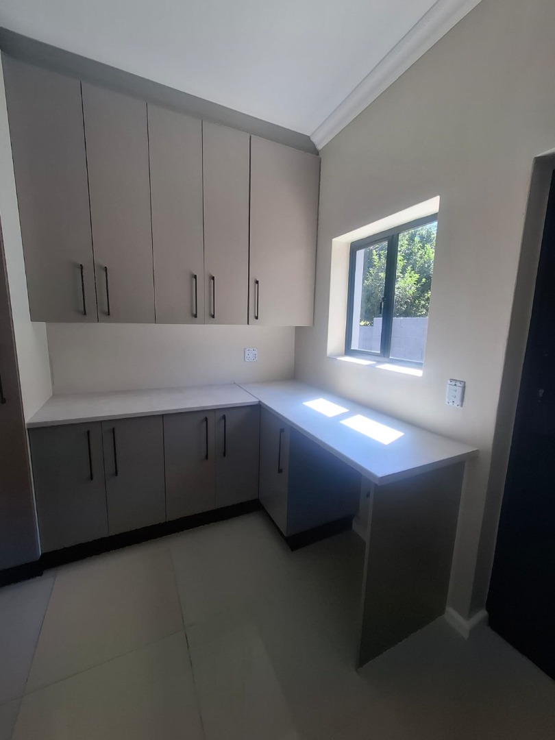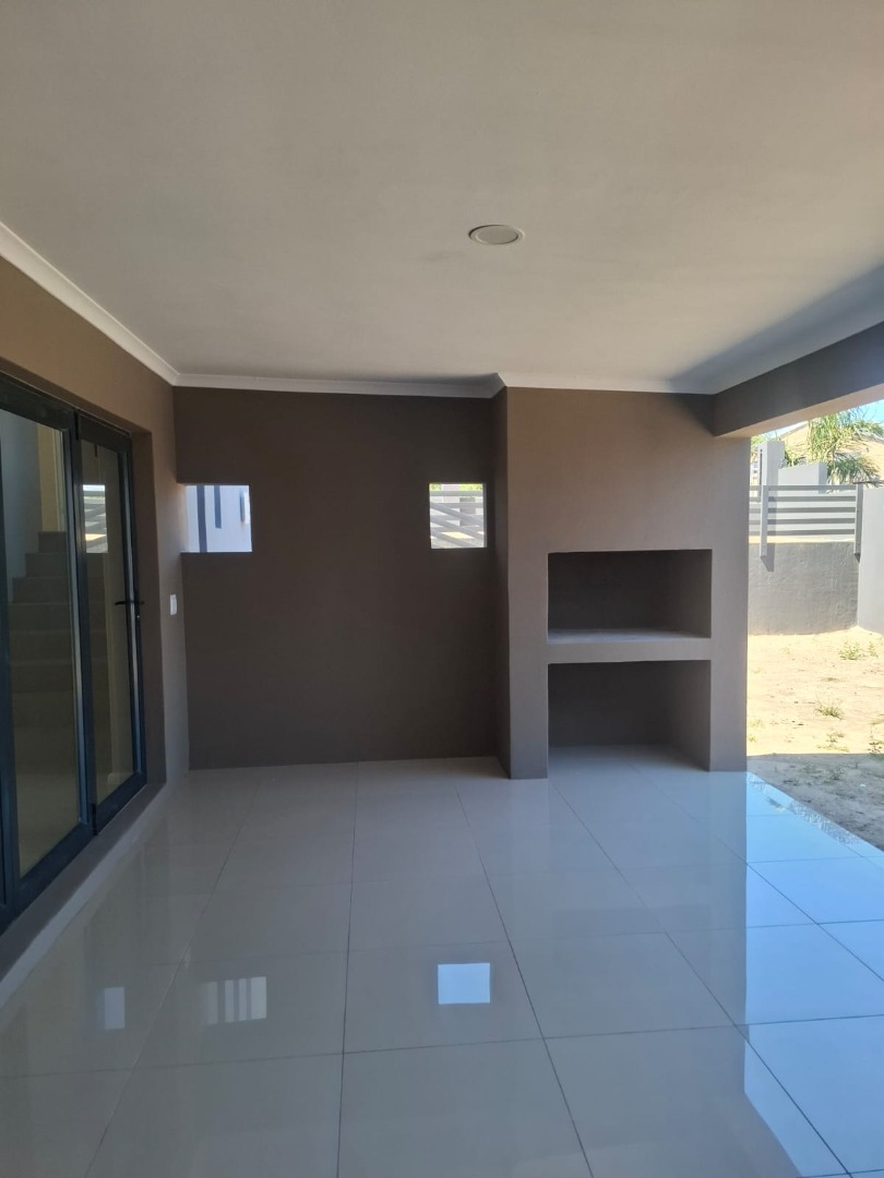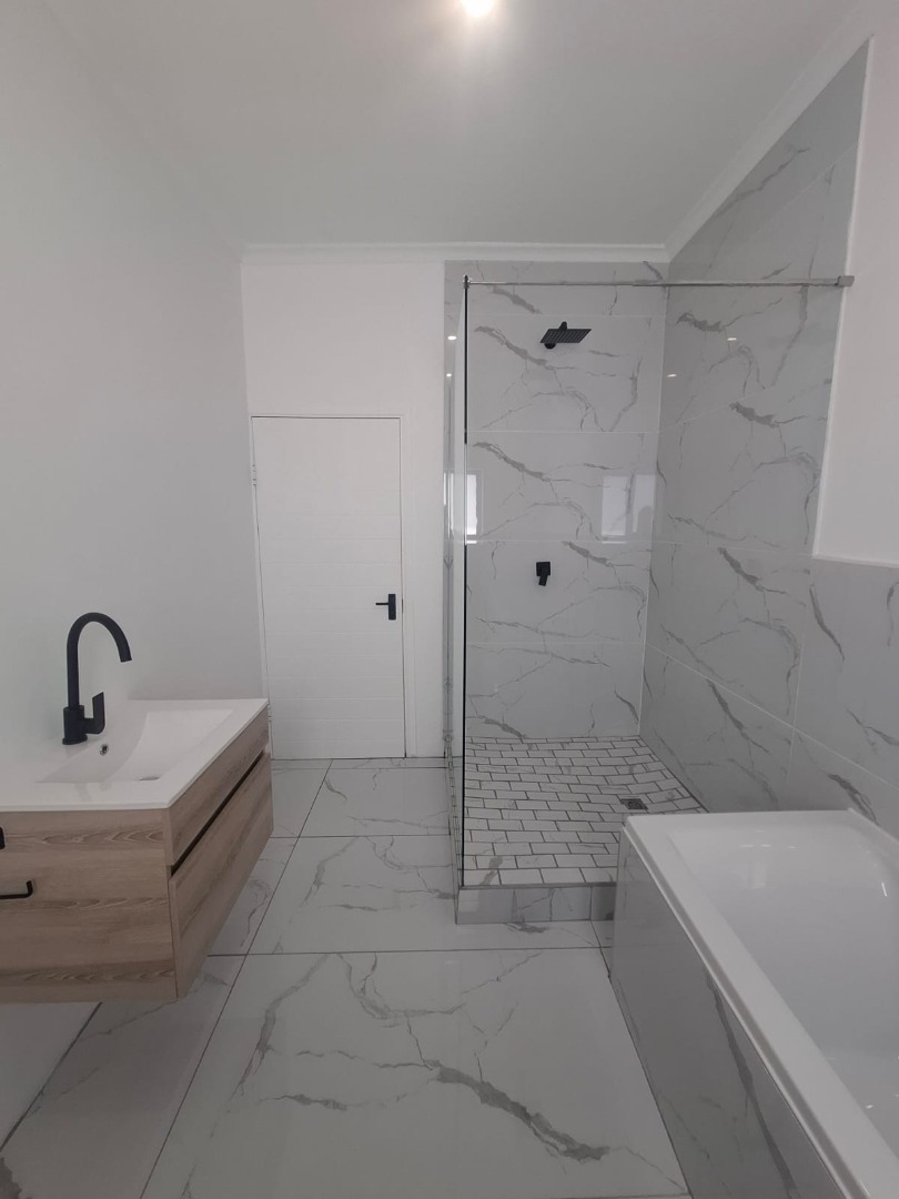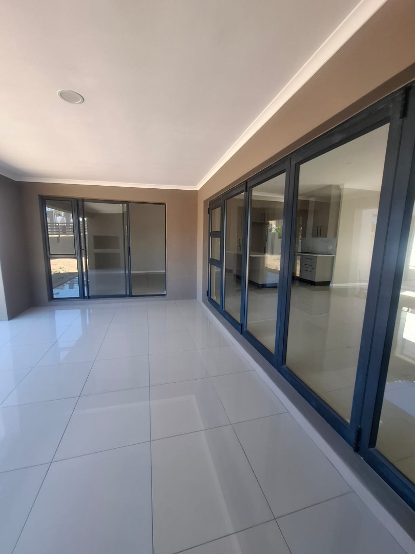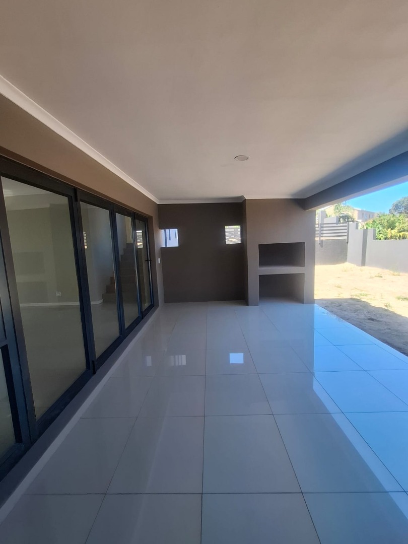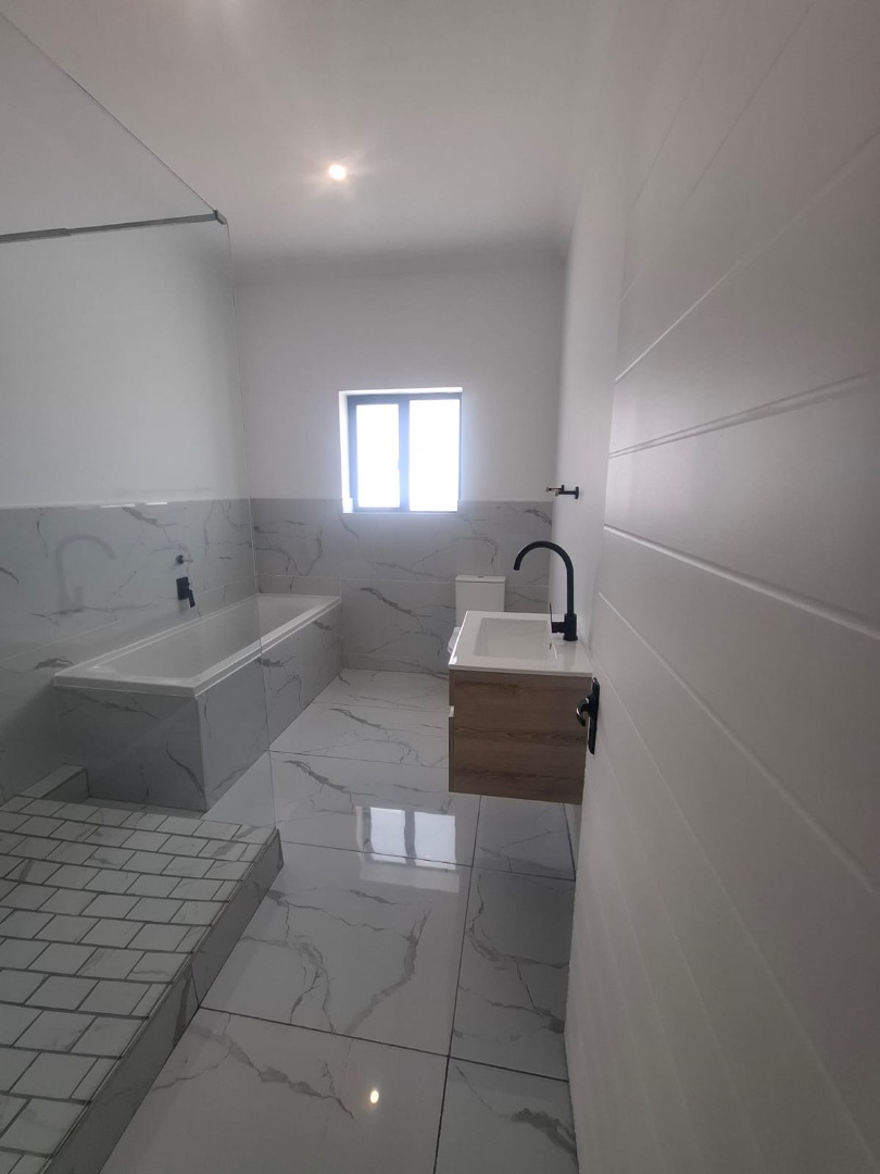 Experience unparalleled contemporary living in this newly constructed, sophisticated residence available for rent in Lovemore Park, Port Elizabeth. This exquisite home presents three opulent bedrooms and two pristine bathrooms, including a luxurious ensuite. The expansive open-plan design seamlessly integrates a refined lounge, an elegant dining area, and a state-of-the-art kitchen, adorned with sleek grey cabinetry, a substantial island, and a stylish marble-look backsplash. Reflective tiled flooring and abundant natural light from extensive sliding glass doors complete this gourmet space.