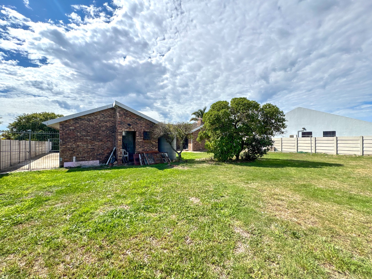The property is well-suited for entertaining, featuring a built-in braai and a dedicated braai room, perfect for social occasions. Additional conveniences include water tanks and outside toilets. Security is well-addressed with an alarm system, providing peace of mind. Pets are permitted, adding to its family-friendly appeal.