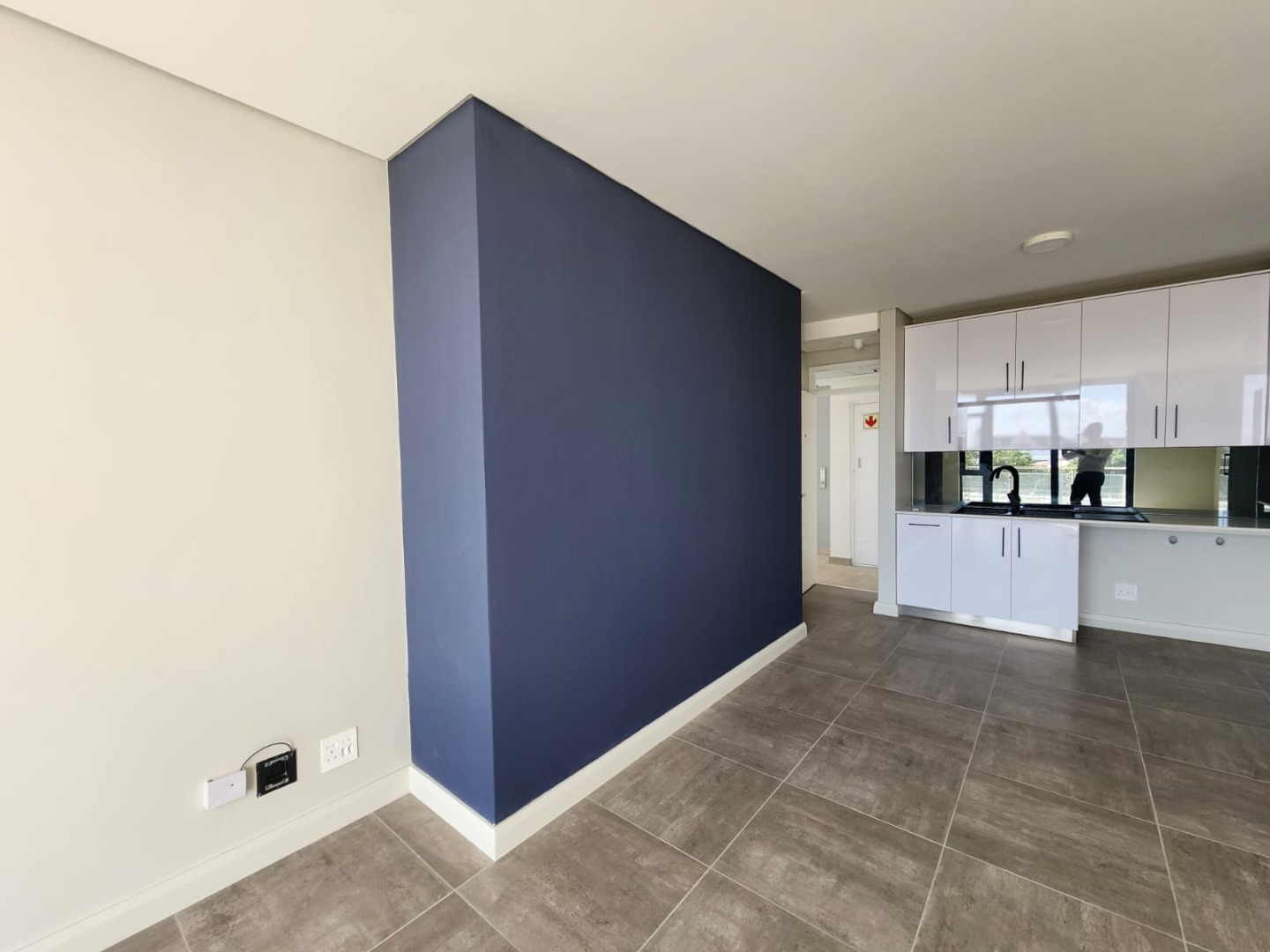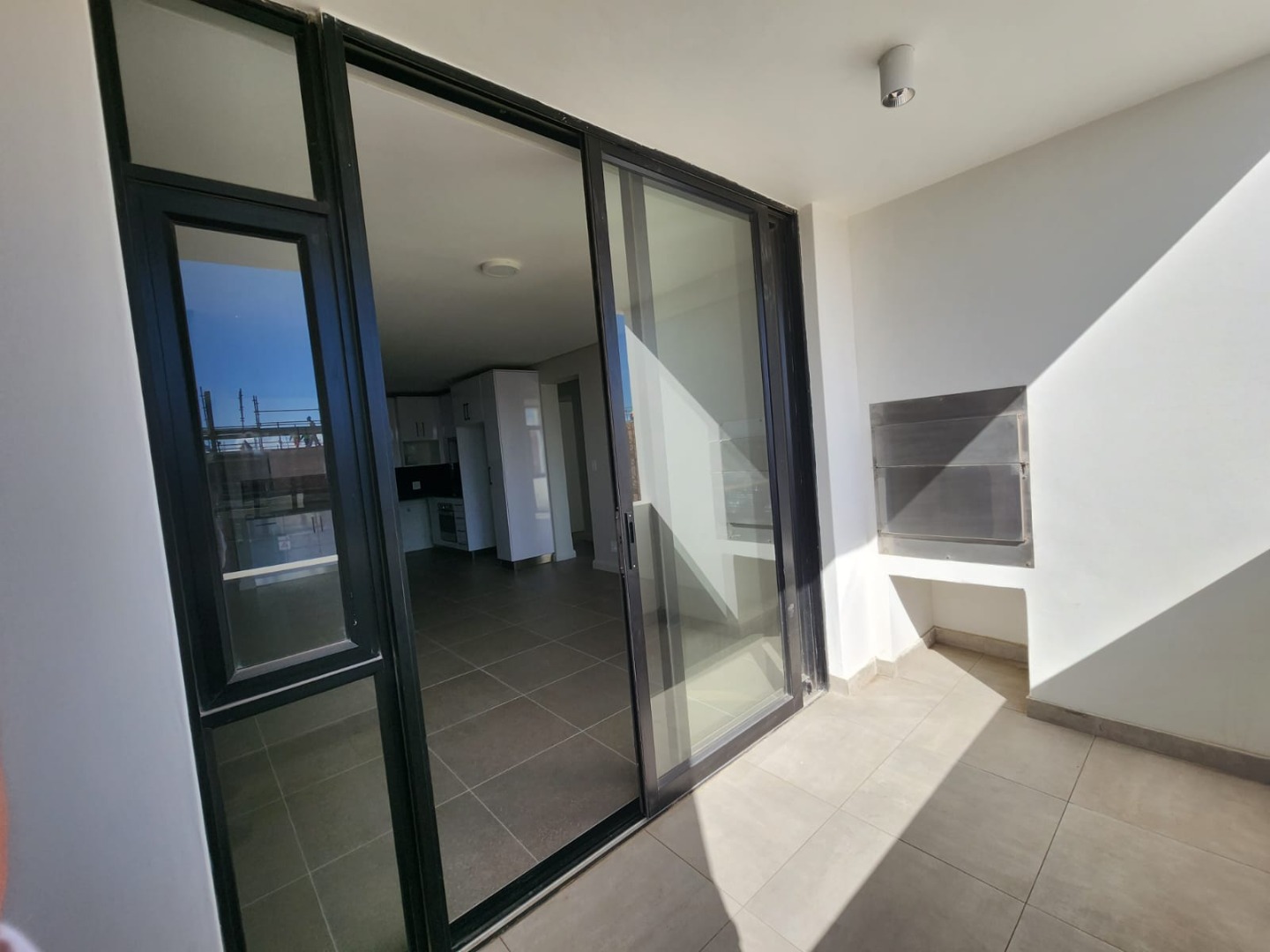 Discover modern living in this unfurnished 3-bedroom, 2-bathroom apartment located in the desirable Summerstrand area of Port Elizabeth. This contemporary residence features an open-plan layout, seamlessly connecting the lounge with a sleek, high-gloss white kitchen. The kitchen is equipped with integrated appliances, dark countertops, and ample storage, complemented by durable tiled flooring throughout the main living spaces. Large glass sliding doors invite abundant natural light and lead to a private balcony, offering scenic views of the surrounding residential landscape.