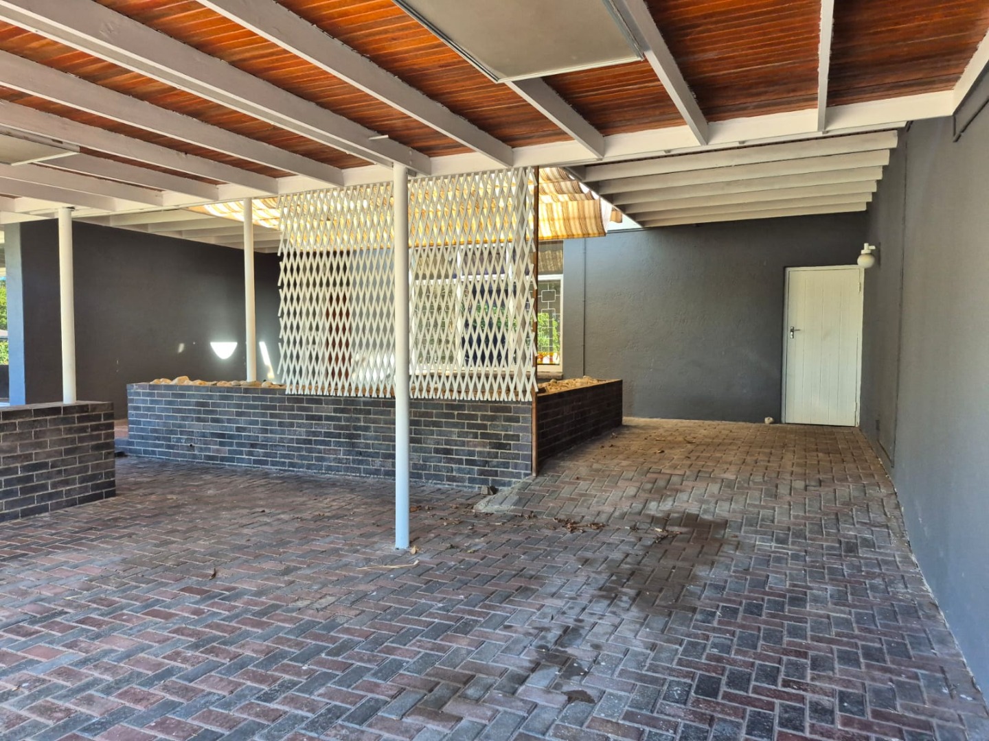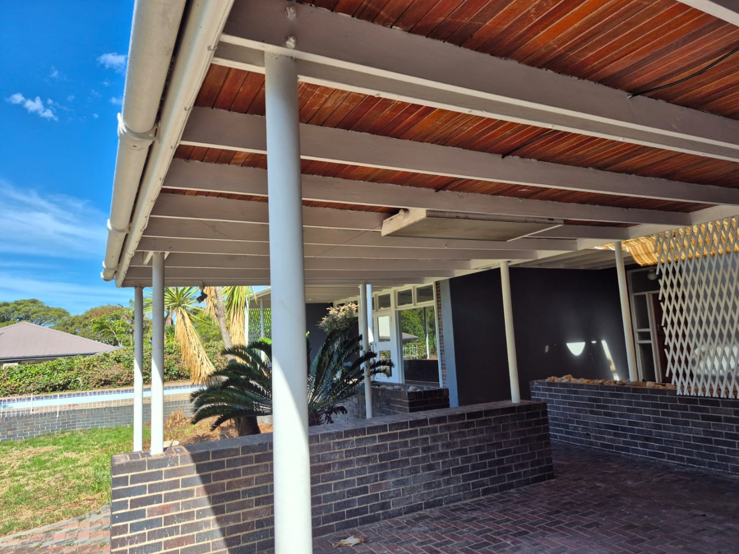 The large living area leads to a spacious dining room and out to the entertainment/ braai area and an extensive established garden –