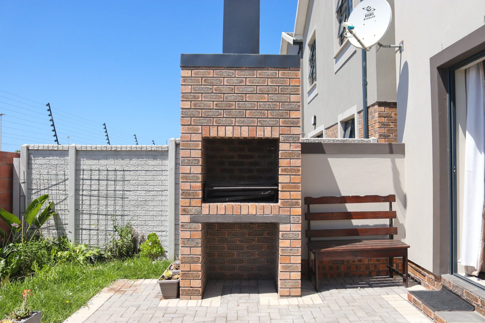 Enclosed back garden with patio and built-in braai – perfect for entertaining