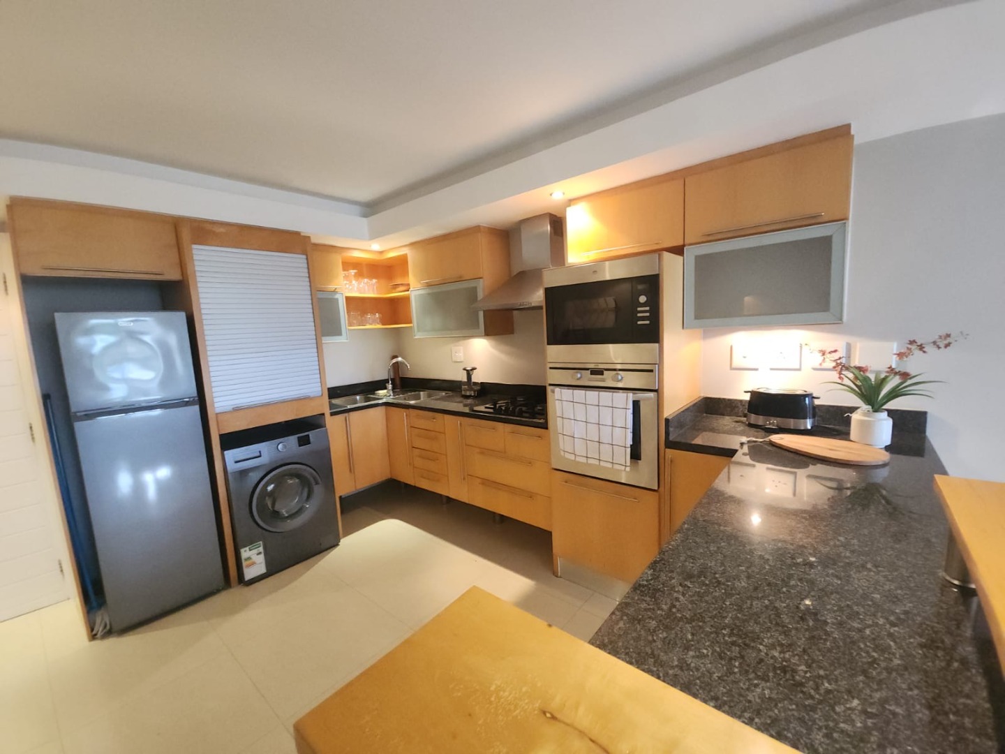 The kitchen is modern, spacious, and fully equipped with top-quality appliances, ample counter space, and stylish cabinetry—perfect for home cooking or casual entertaining.