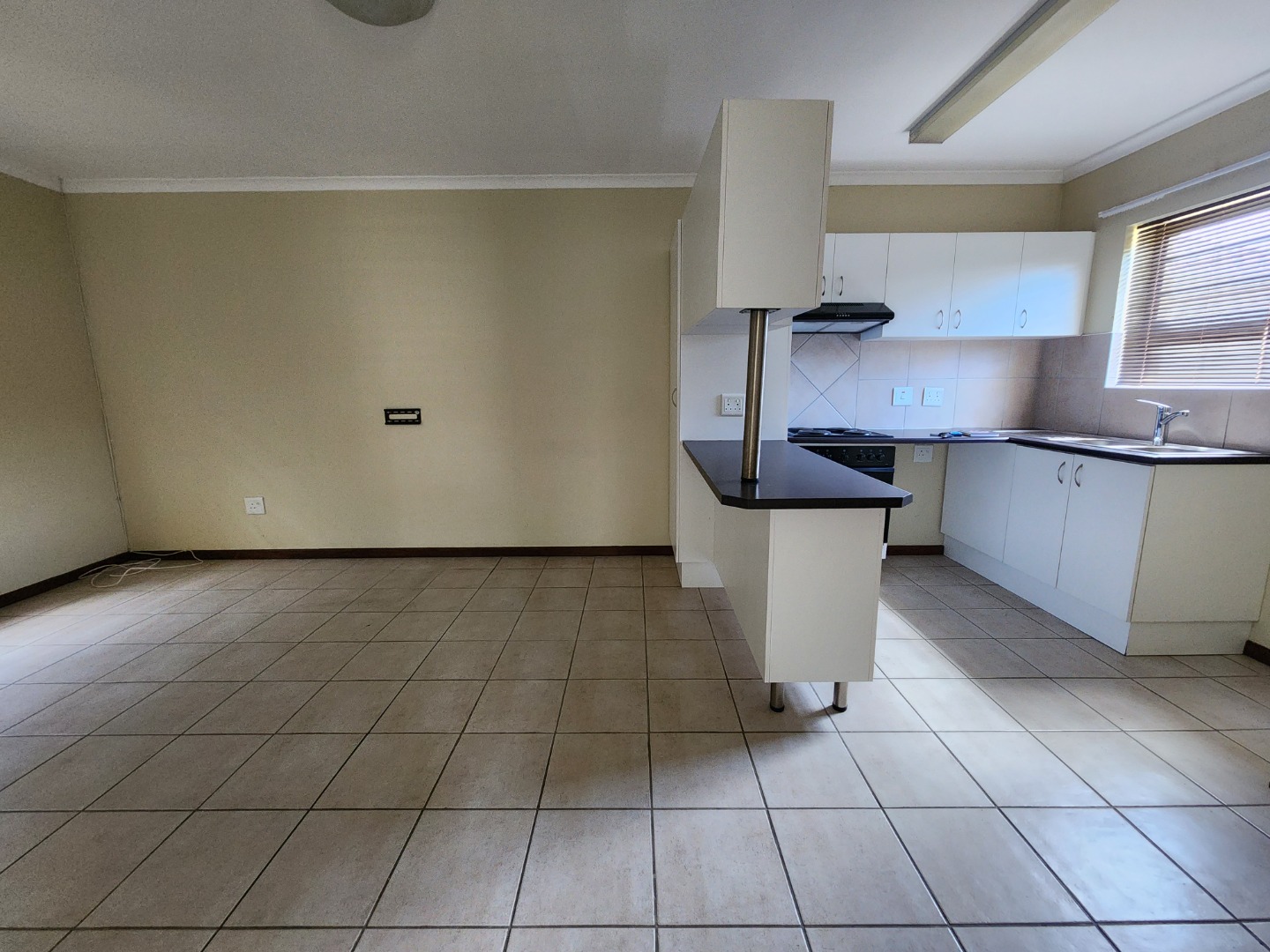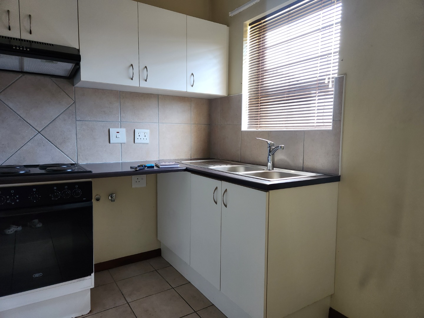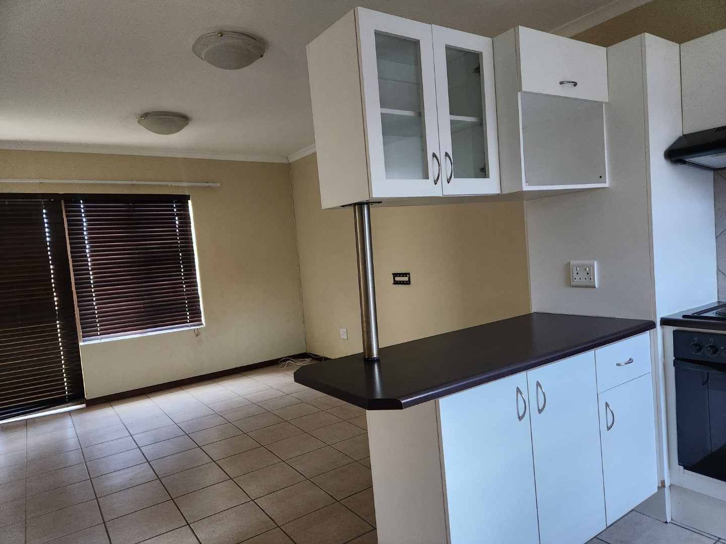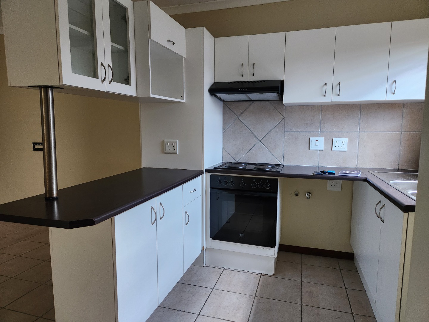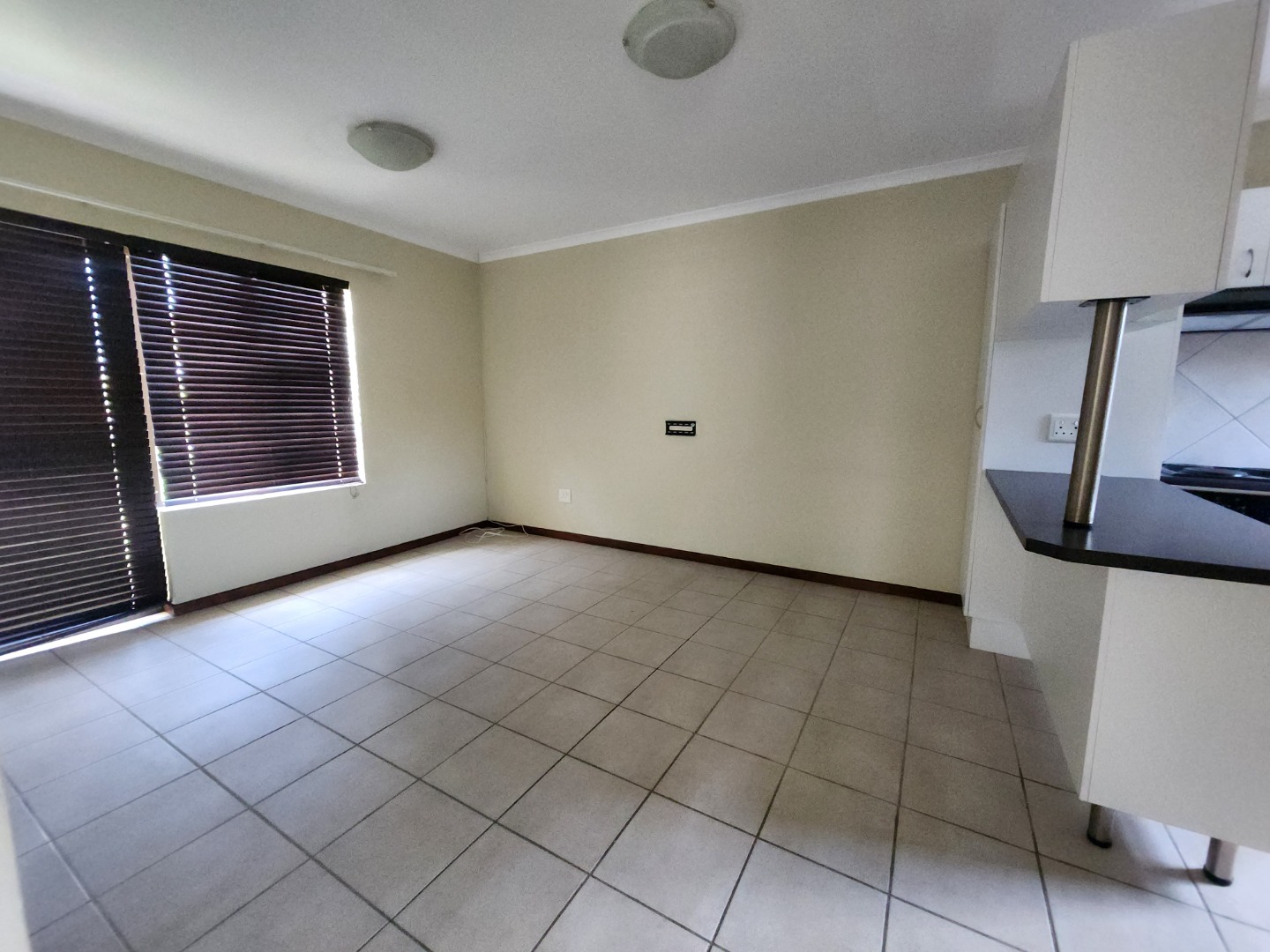 Discover this inviting 2-bedroom, 1-bathroom rental property located in a well-maintained complex in Sherwood, Port Elizabeth. Designed for comfortable living, the home features an open-plan lounge seamlessly flowing into a modern kitchen. The kitchen is equipped with sleek white cabinetry, contrasting black countertops, an integrated oven and hob, an extractor fan, and a convenient breakfast bar, perfect for casual dining or entertaining. Durable tiled flooring extends throughout the entire residence, complemented by neutral-toned walls and venetian blinds, offering a clean and versatile aesthetic.