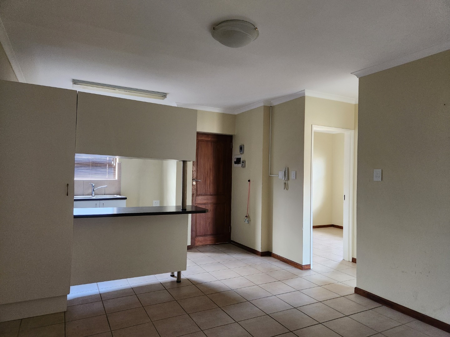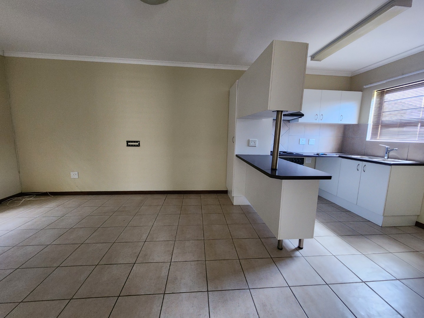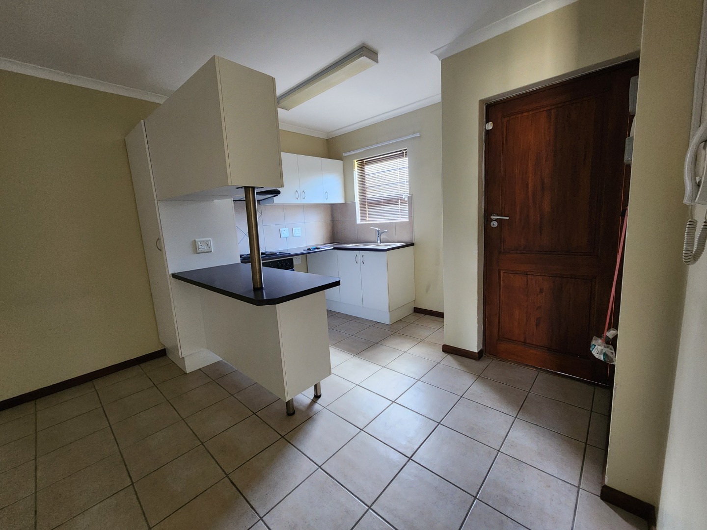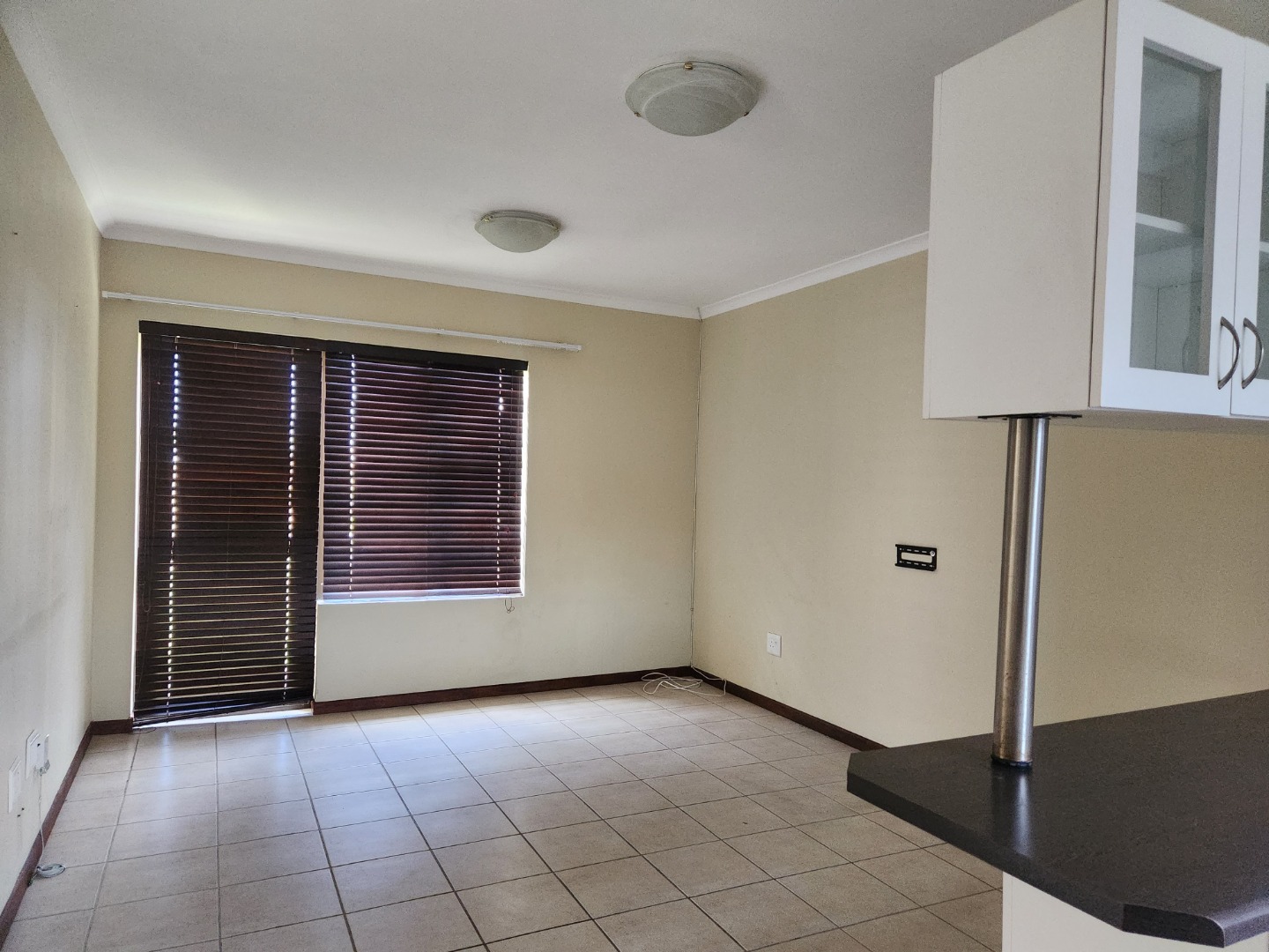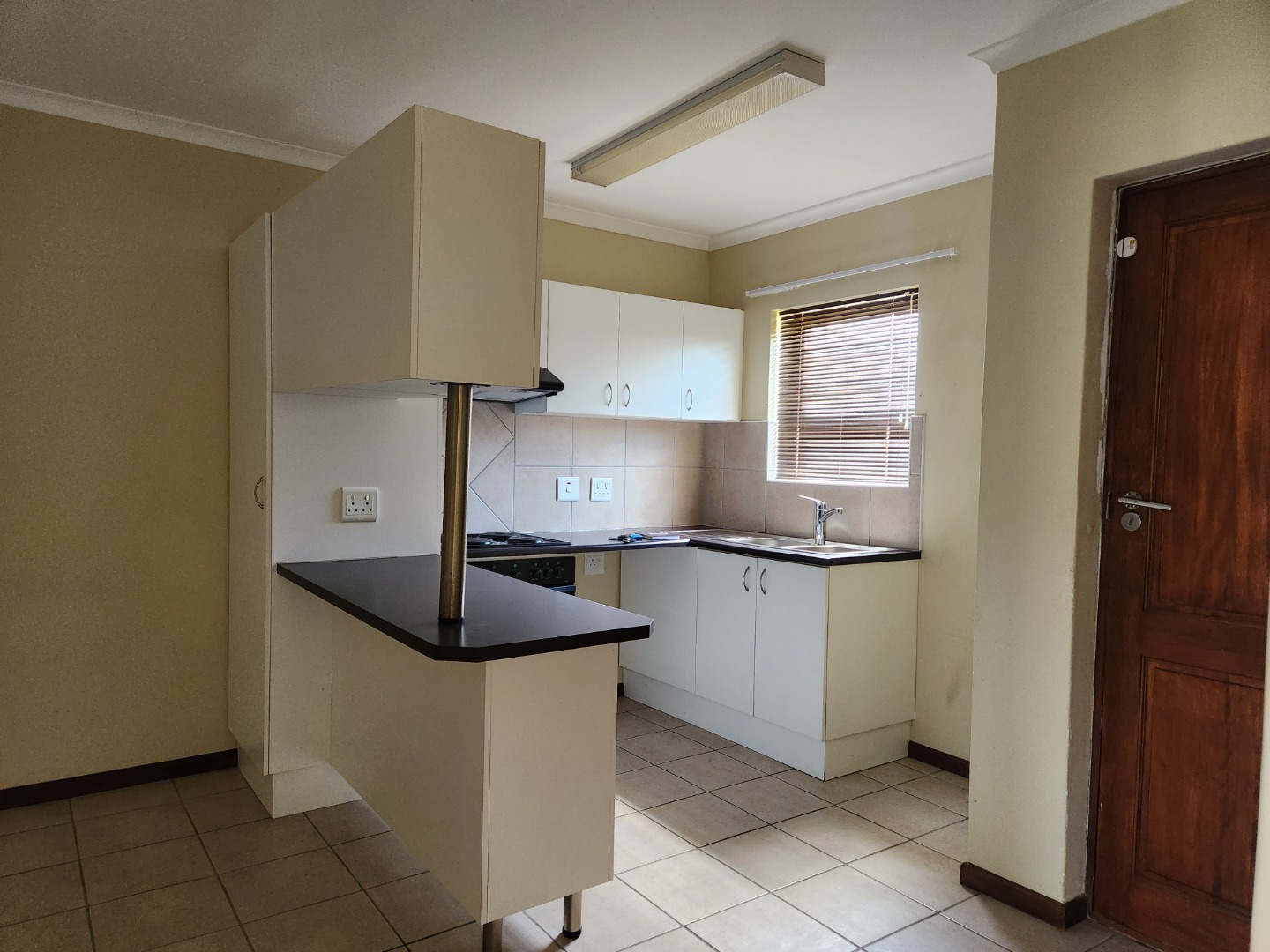 Discover this inviting 2-bedroom, 1-bathroom rental property located in a well-maintained complex in Sherwood, Port Elizabeth. Designed for comfortable living, the home features an open-plan lounge seamlessly flowing into a modern kitchen. The kitchen is equipped with sleek white cabinetry, contrasting black countertops, an integrated oven and hob, an extractor fan, and a convenient breakfast bar, perfect for casual dining or entertaining. Durable tiled flooring extends throughout the entire residence, complemented by neutral-toned walls and venetian blinds, offering a clean and versatile aesthetic.
