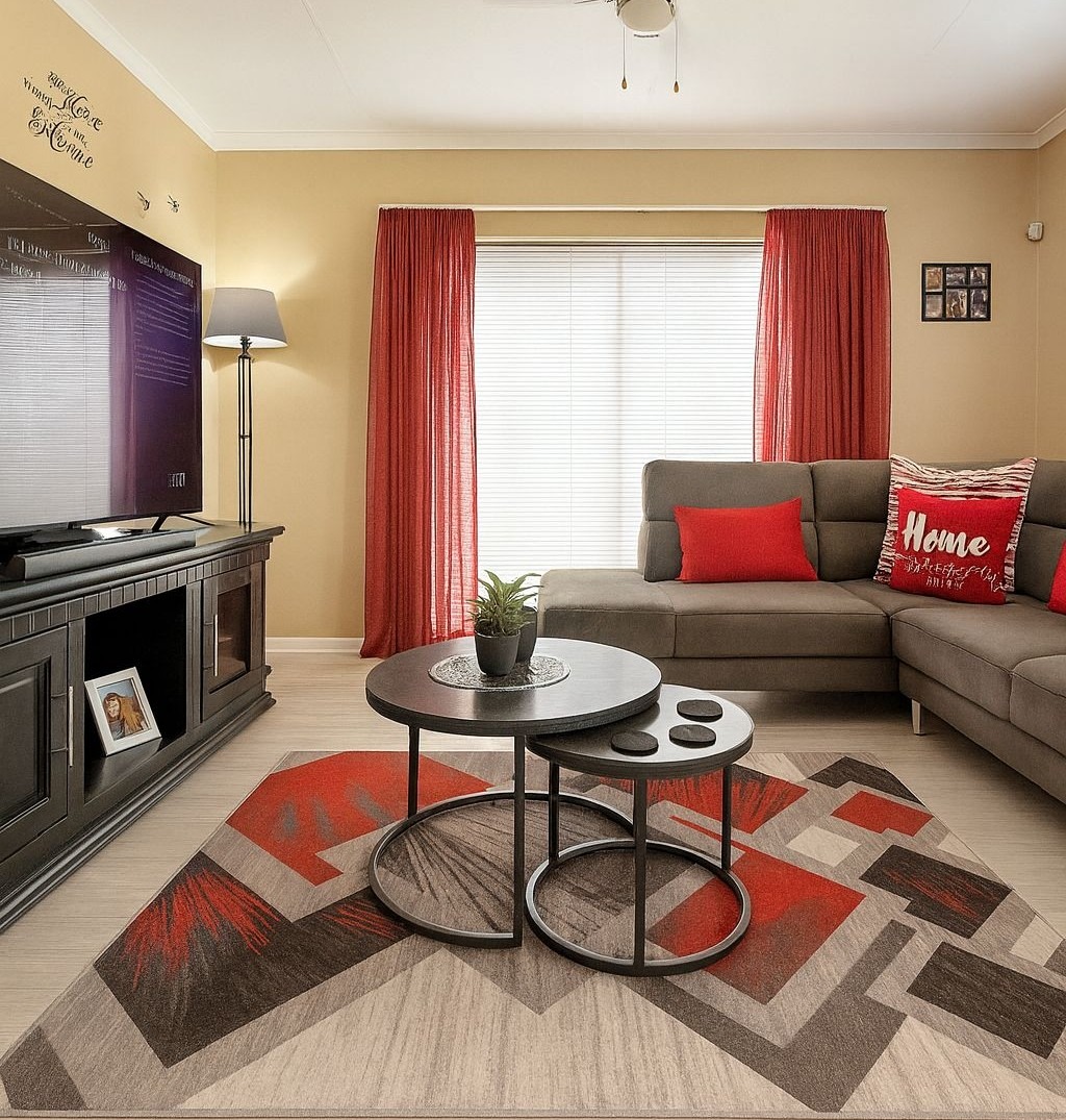 The open-plan lounge area is warm and inviting, fitted with laminated flooring and a ceiling fan, creating the ideal space for relaxation or entertaining.