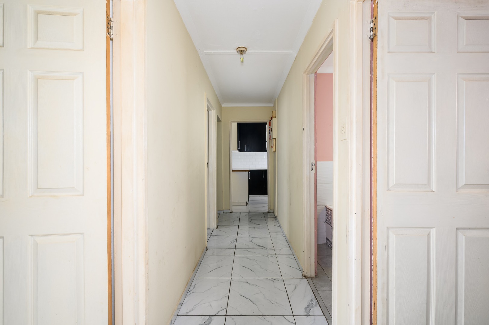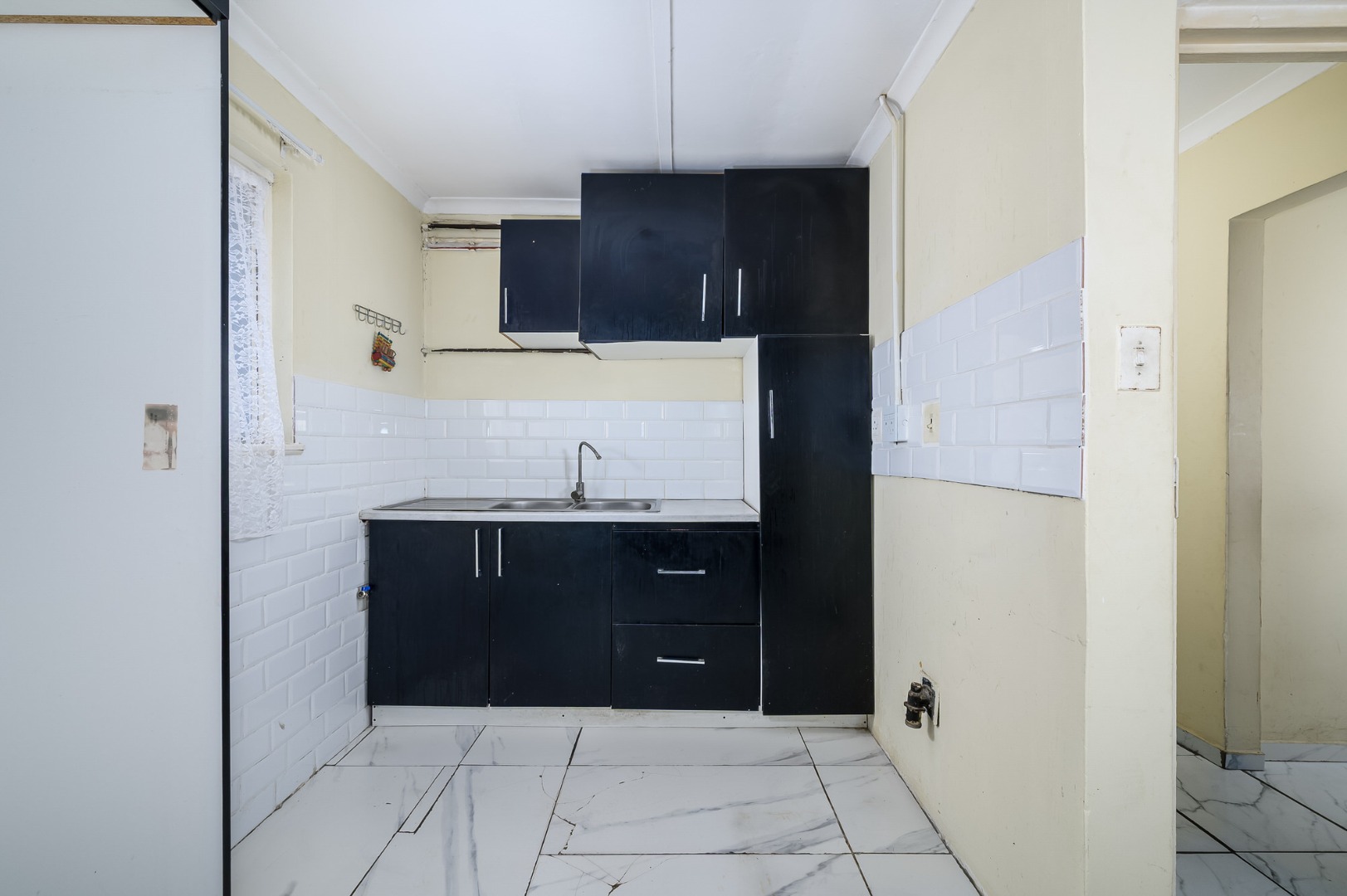 Three spacious and sunny bedrooms provide comfortable accommodation plus feature built-in cupboards, while the bathroom is neatly laid out with a separate toilet for added convenience. The kitchen is positioned to one side of the living area and offers ample built-in cupboards, along with water connections for a washing machine. Fully tiled throughout, the apartment is low maintenance and practical - ideal for both homeowners and investors.