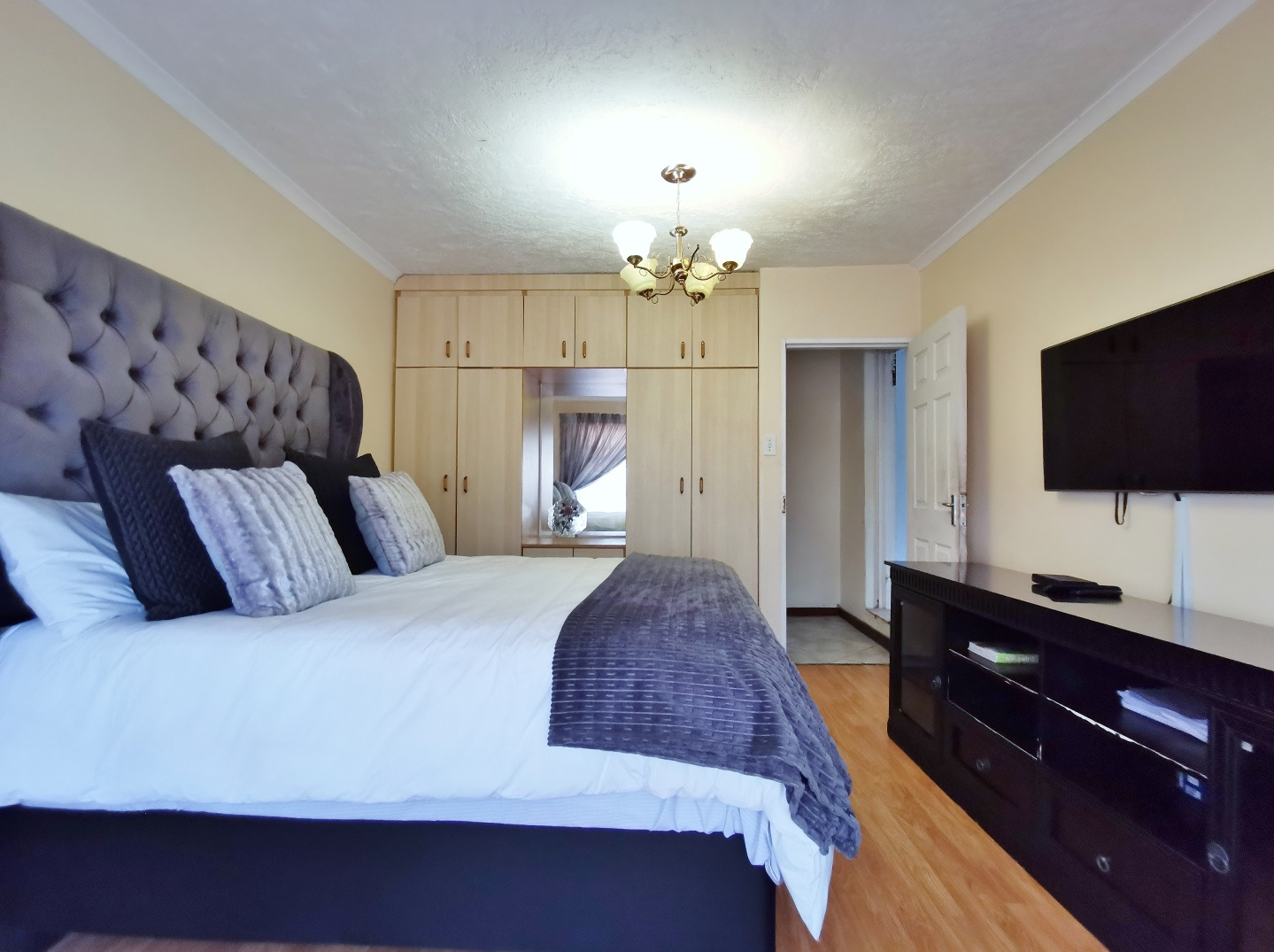 In addition to the main home, the property includes two separate flatlets. One is a spacious two-bedroom unit with a full kitchen and built-in cupboards, while the other is a one-bedroom flat, also fully equipped with its own kitchen and storage. These units are ideal for extended family or can serve as reliable rental income streams. With a total building size of 540sqm on an 816sqm plot, this property is larger than most in the area. It includes three garages in good condition and offers ample off-street parking. While the home is well-maintained overall, minor ceiling and tile updates may be considered to enhance the already solid structure.