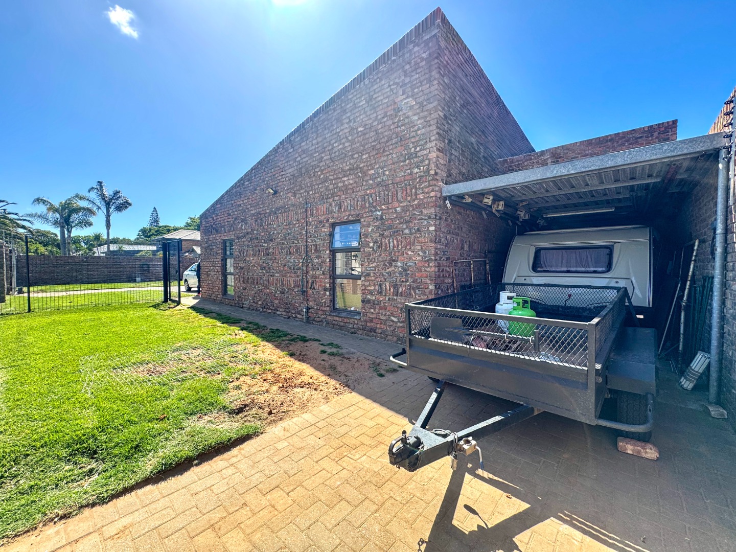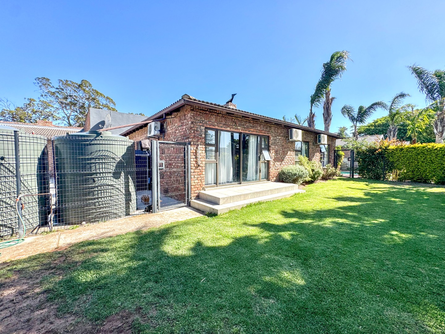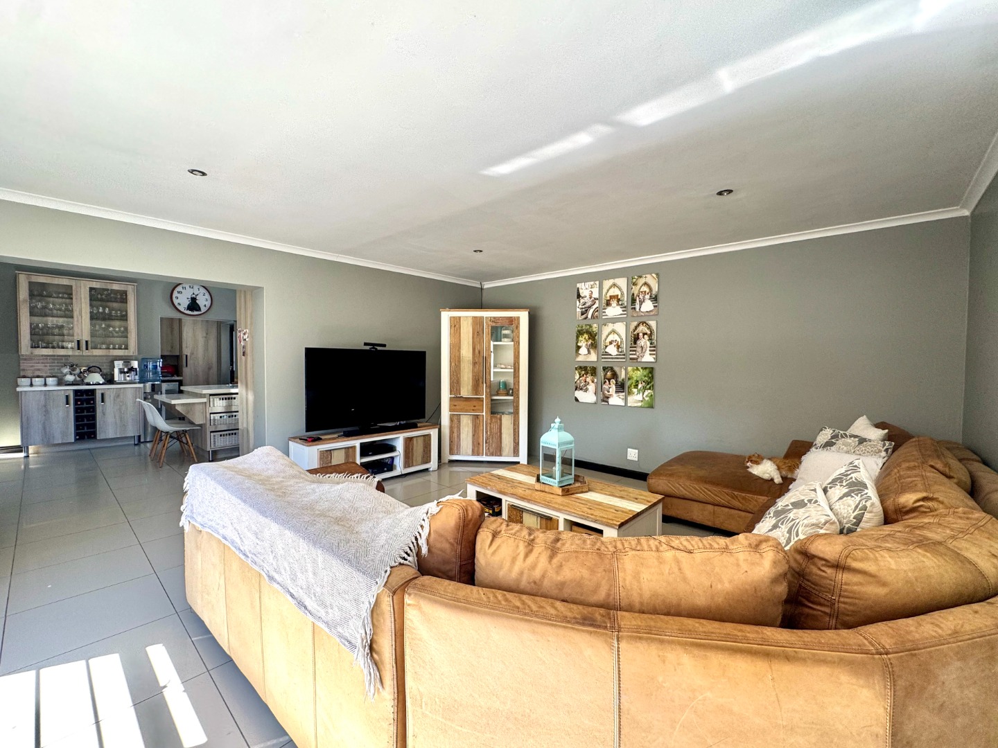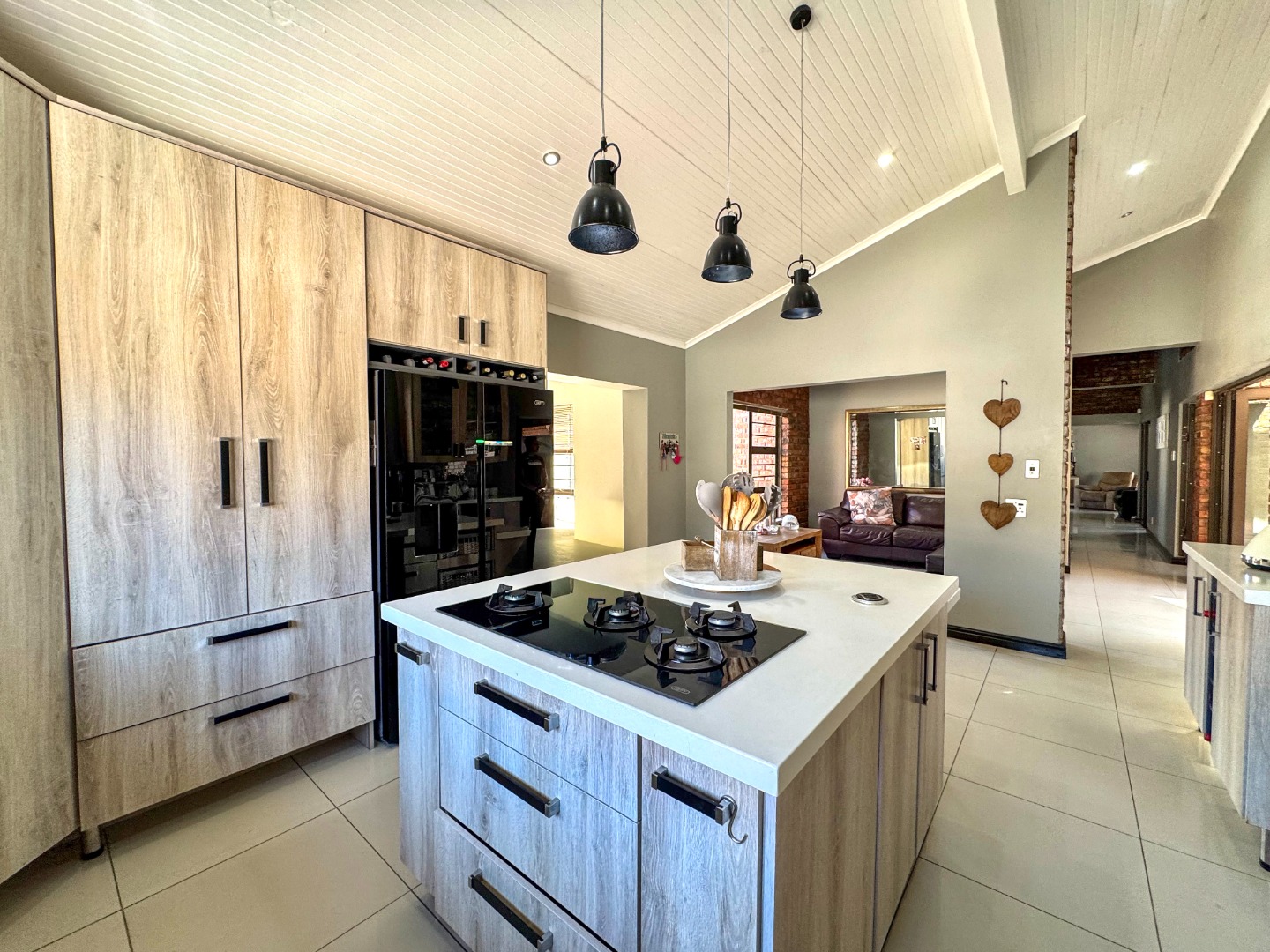 The outdoor spaces are equally appealing, designed for leisure and practicality. Enjoy sunny days by the private swimming pool or entertain guests on the patio with a built-in braai. The established garden, complete with a wendy house and water tanks, provides a serene backdrop. Practicality is further enhanced by three garages, offering secure parking and additional storage, alongside a covered carport suitable for a caravan or trailer.