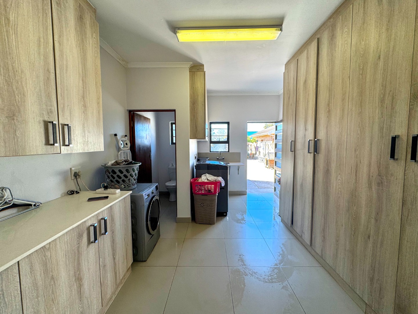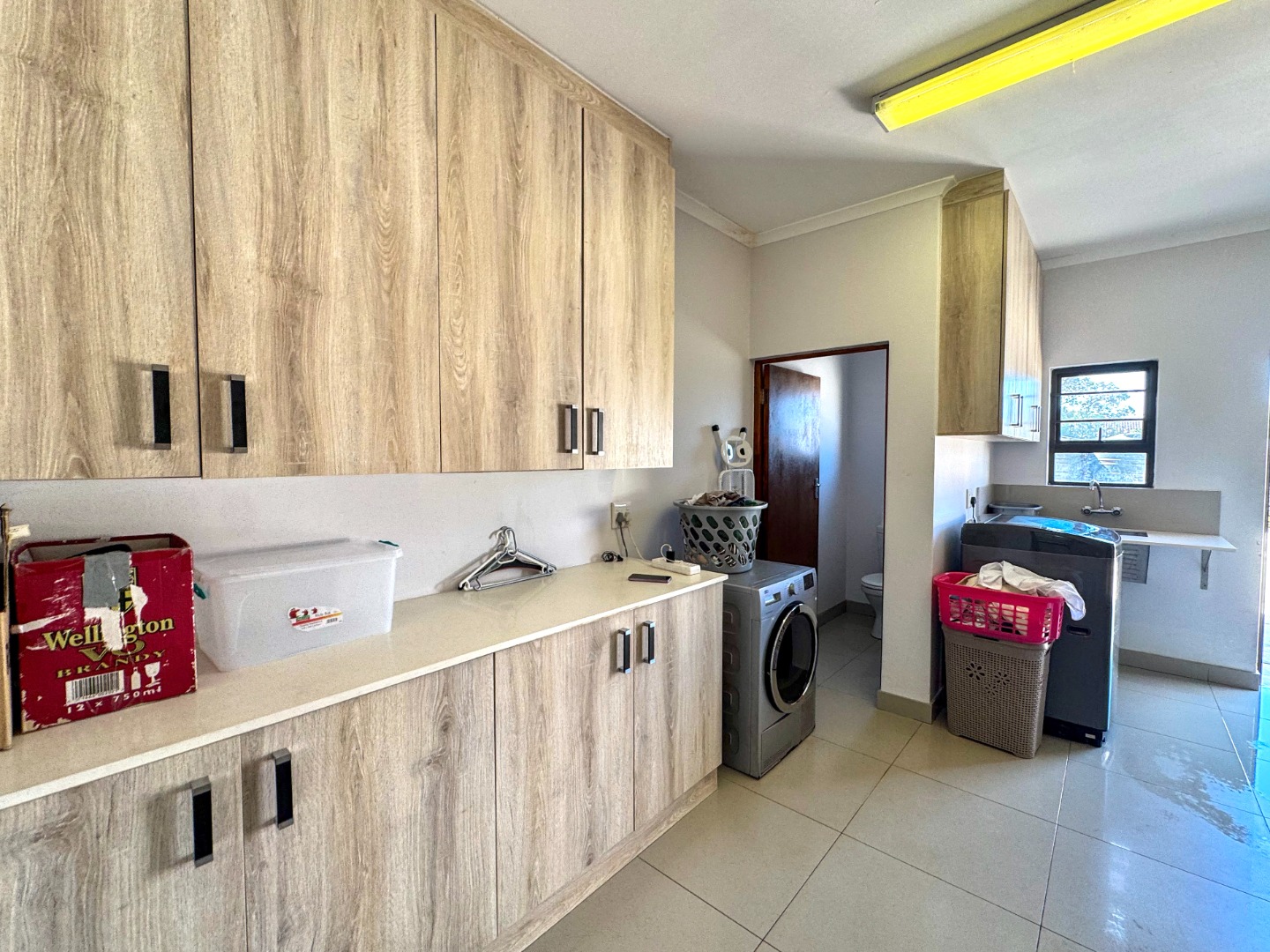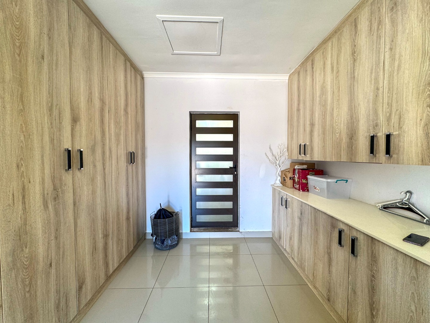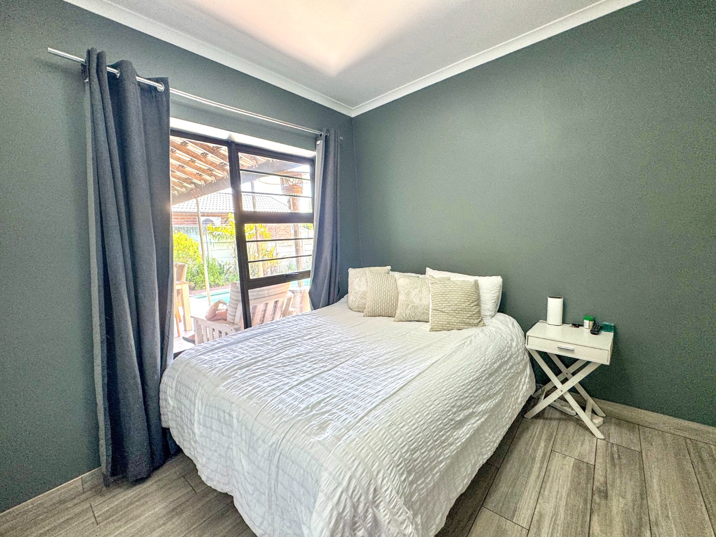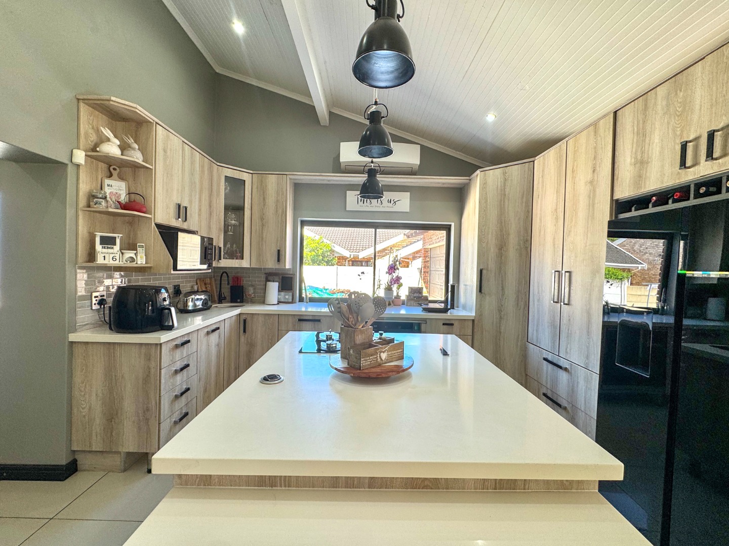 Nestled in a tranquil cul-de-sac within the desirable suburban area of Beverley Grove, Port Elizabeth, this impressive 359 sqm family home on a generous 1200 sqm erf offers both space and security. The property boasts strong kerb appeal with a well-maintained lawn, modern perimeter walls, and a secure access gate featuring electric fencing, ensuring peace of mind from the moment you arrive. A paved driveway leads to ample parking and garaging.