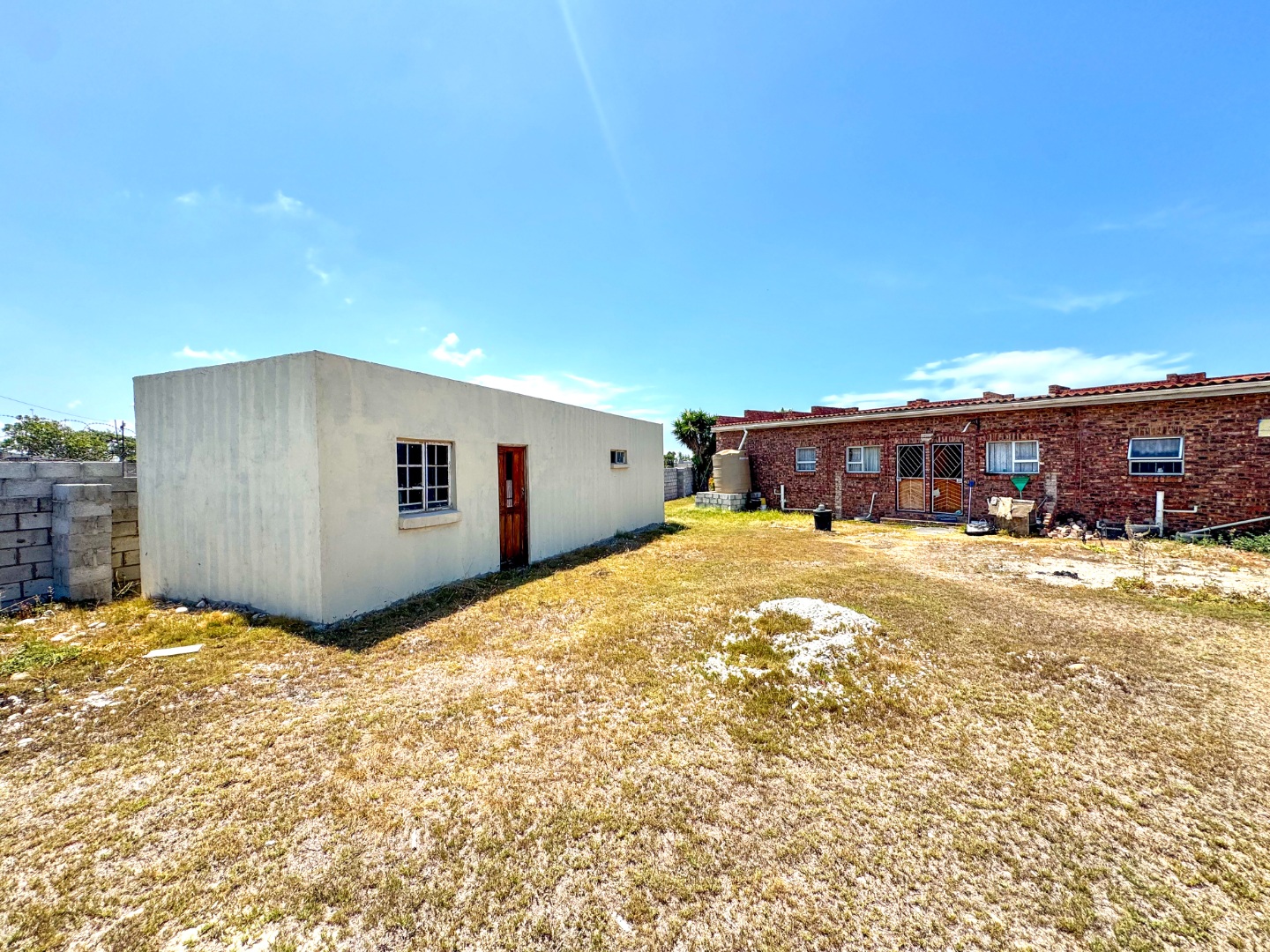 This substantial four-bedroom, two-bathroom residence in Bluewater Bay, Port Elizabeth, offers a robust and secure living environment on a generous 815 sqm erf. The home is built as 2 semi-detached homes, each with an open-plan lounge and kitchen, 2 bedrooms, and a bathroom, offering flexibility for large families or potential dual-living arrangements. The expansive front yard provides significant potential for creating a vibrant garden or outdoor entertainment space, complementing the home's durable exterior.