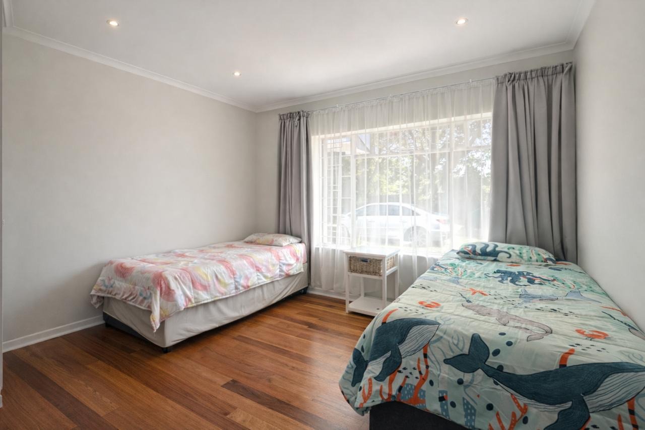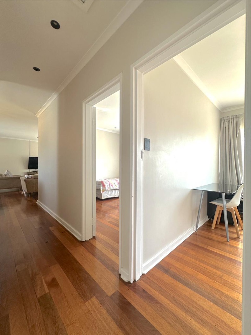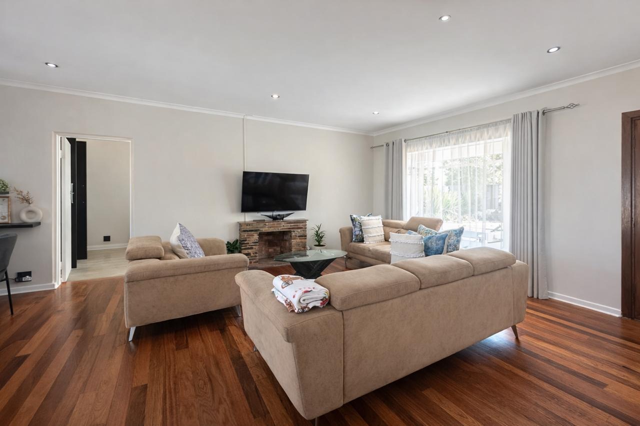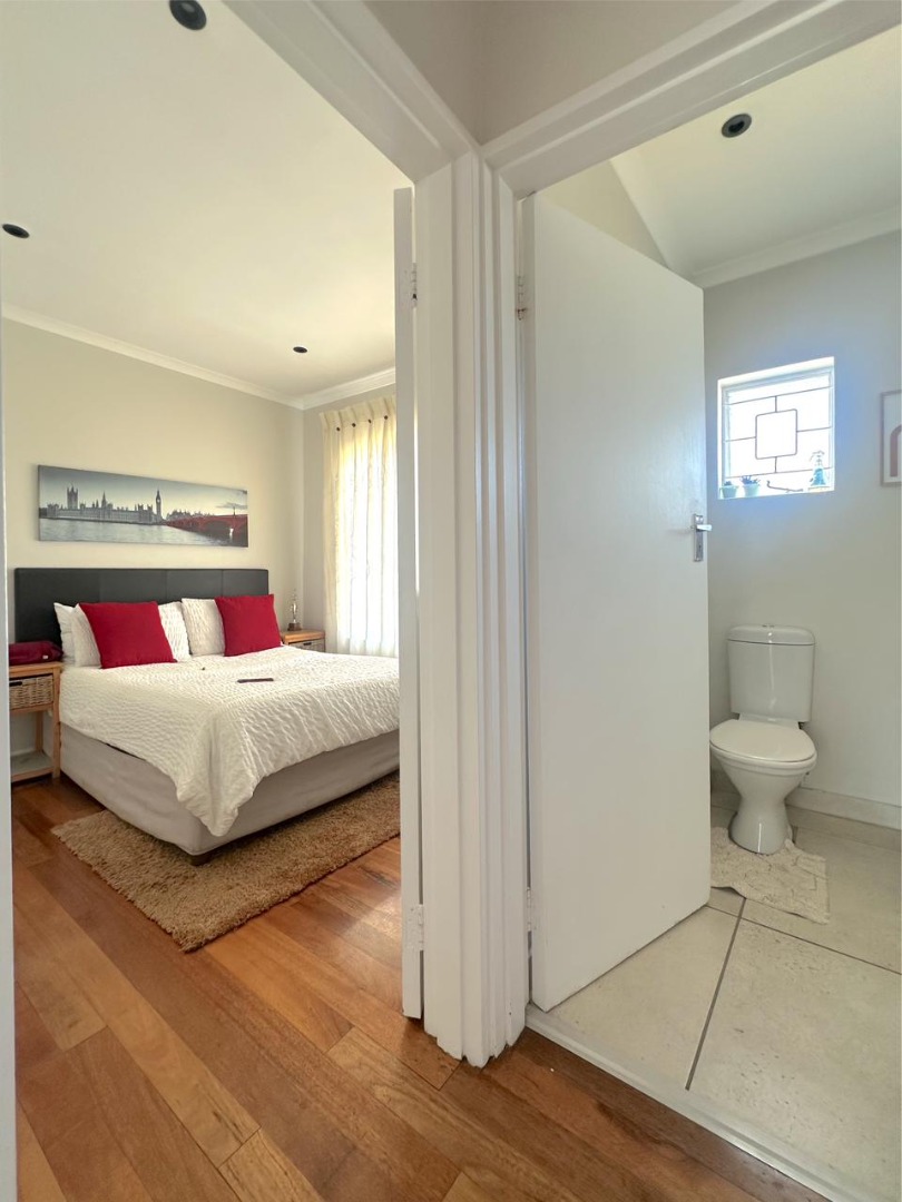 The home offers four bedrooms. The spacious main bedroom features an en-suite bathroom and is positioned privately within the living area wing of the home. The remaining three bedrooms, all with built-in cupboards, are located on the opposite side of the house and are serviced by a full family bathroom and a separate guest toilet.