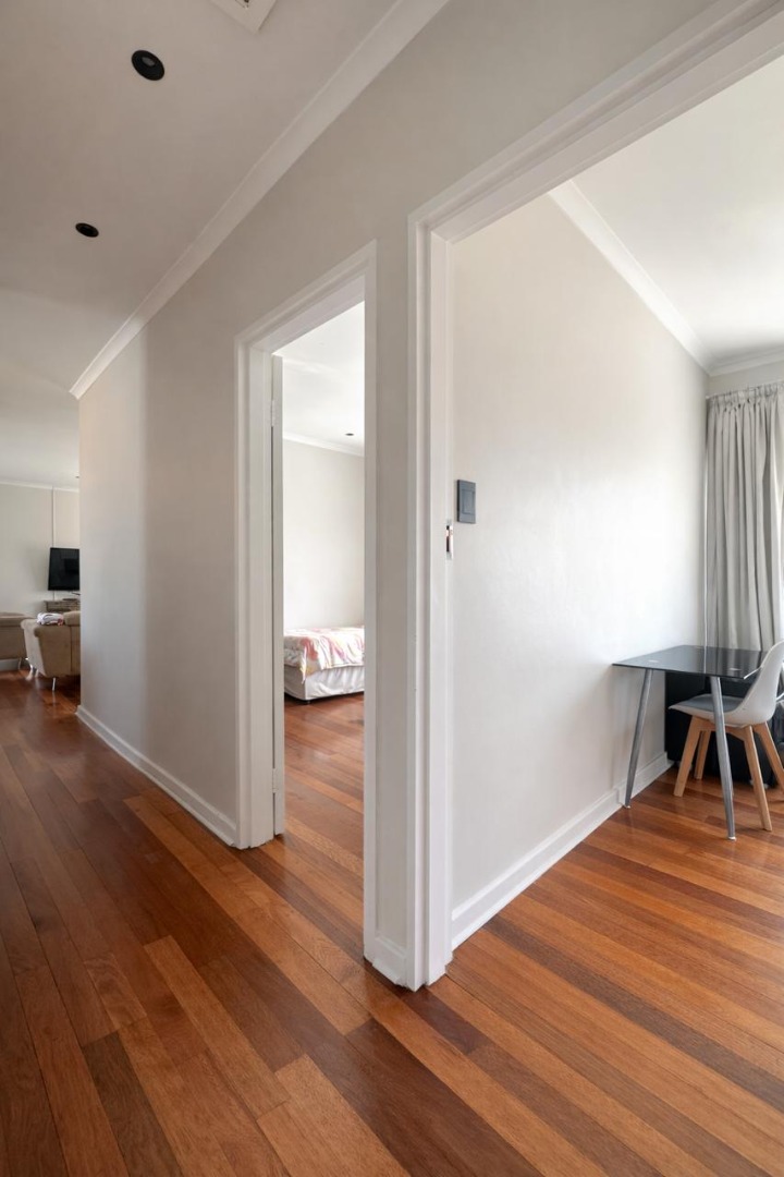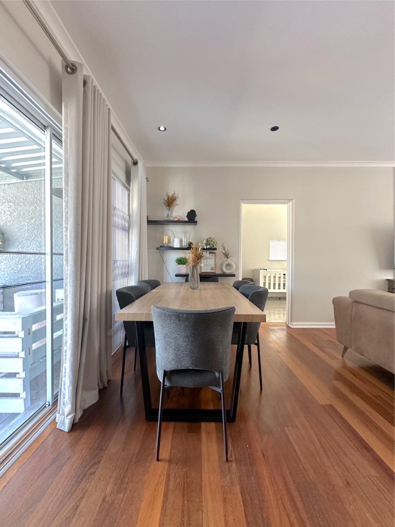 From the front porch, you enter into a welcoming entrance hall, where you are immediately greeted by gleaming, restored wooden floors that flow throughout the home. The living areas comprise a lounge, dining area, and open-plan kitchen, all complemented by a trendy, modern interior that creates a warm yet contemporary atmosphere.