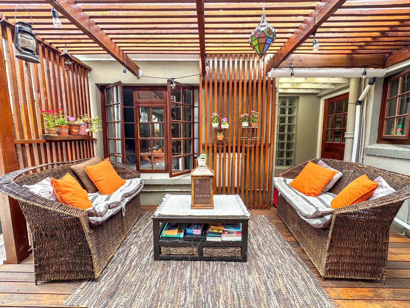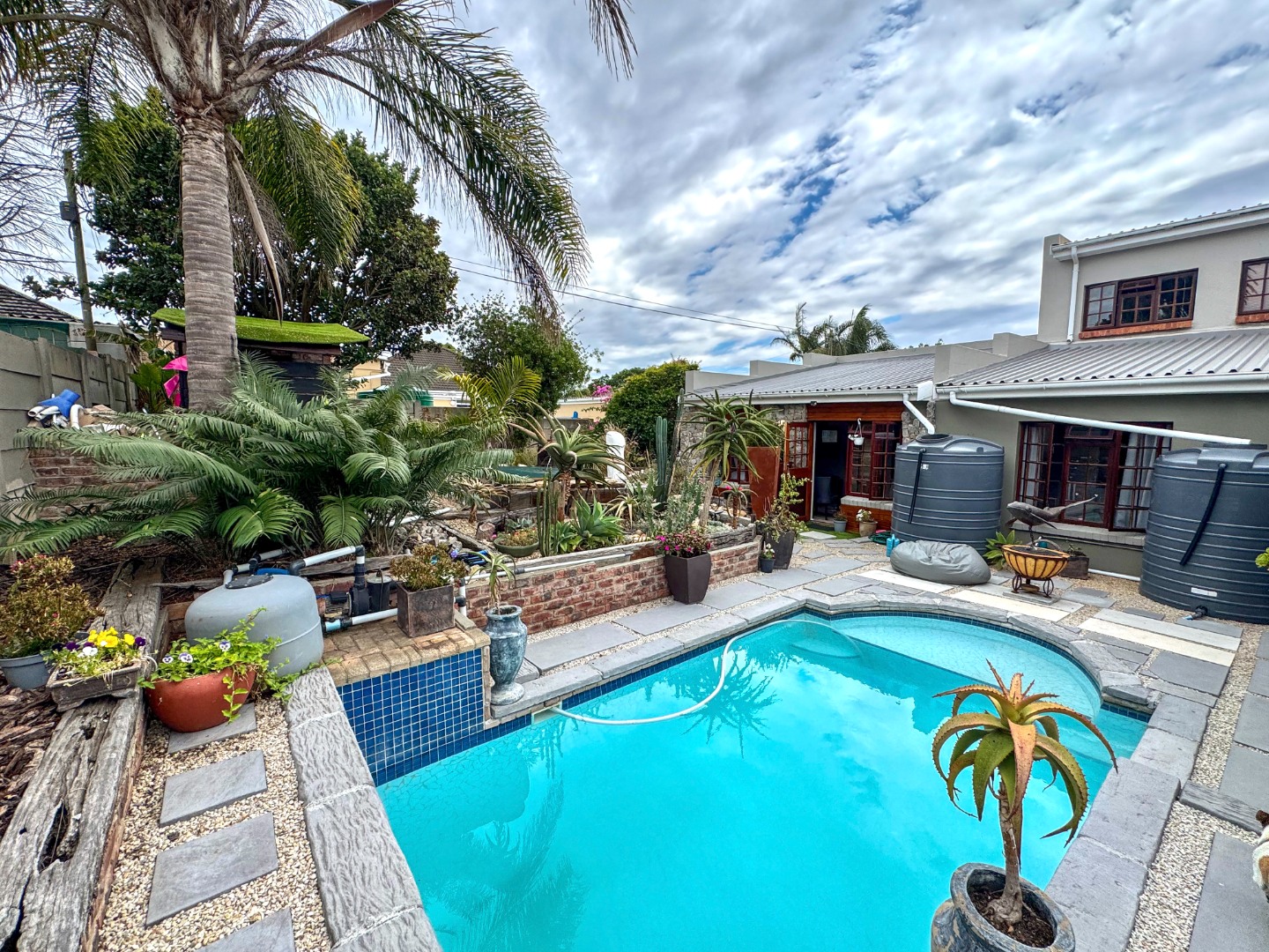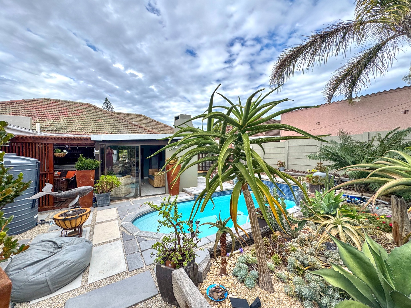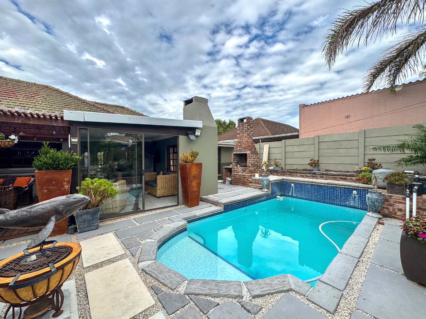 Step outside to discover a private outdoor oasis centered around an inviting swimming pool, perfect for cooling off on warm South African days. The covered patio and sunroom provide versatile spaces for relaxation and year-round entertainment, complemented by a built-in braai and a charming fire pit for social gatherings. The mature, drought-tolerant succulent garden and paved areas offer a low-maintenance yet vibrant landscape.