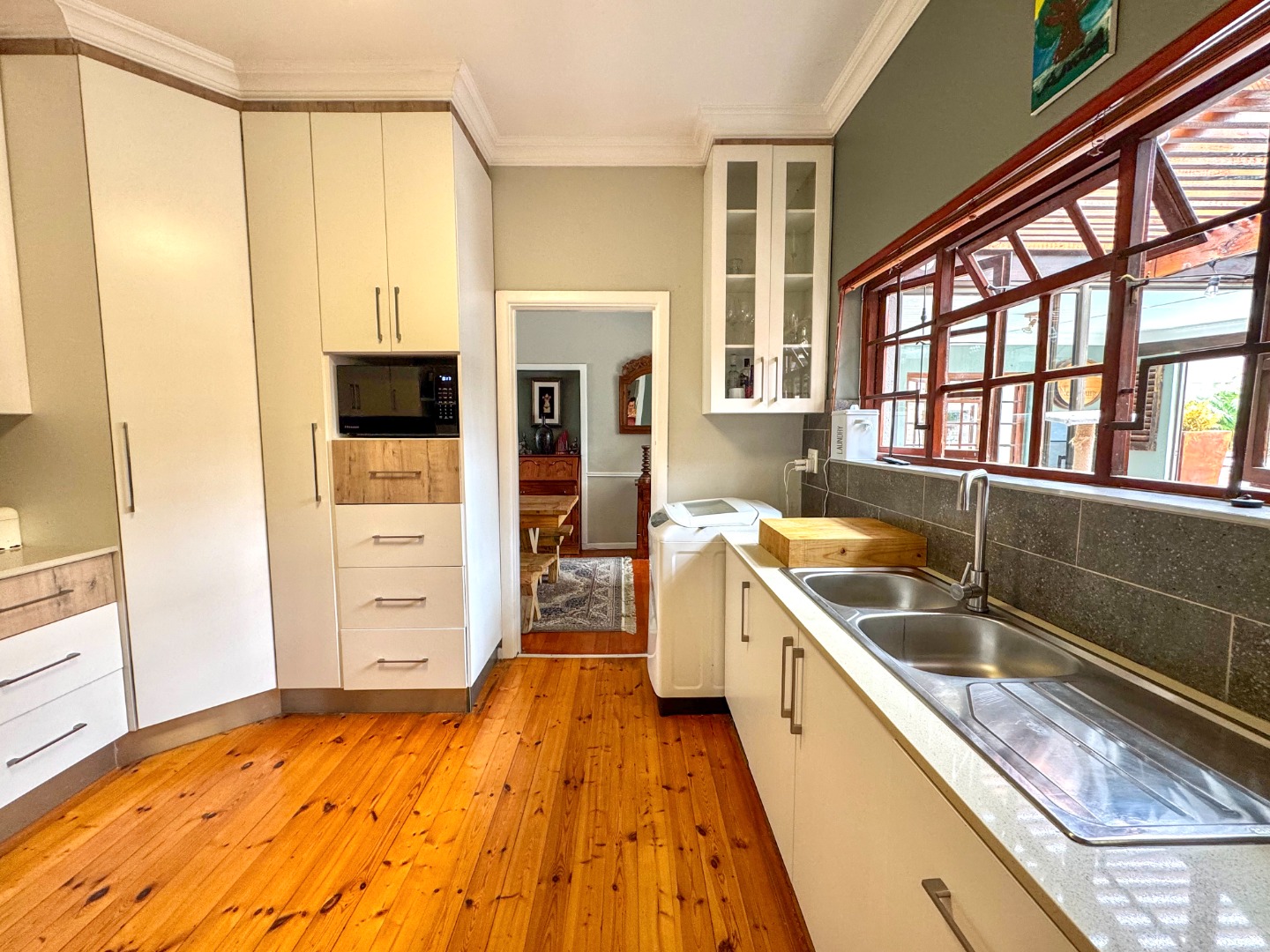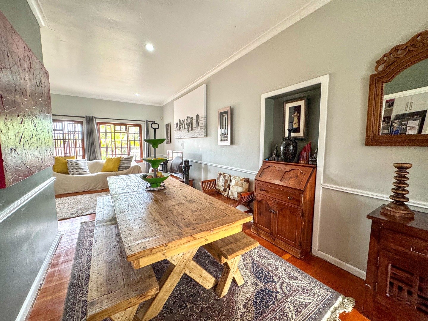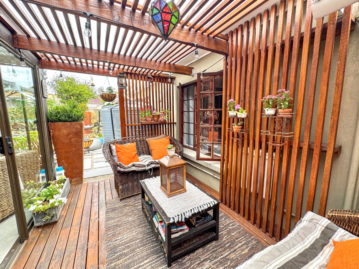 Step outside to discover a private outdoor oasis centered around an inviting swimming pool, perfect for cooling off on warm South African days. The covered patio and sunroom provide versatile spaces for relaxation and year-round entertainment, complemented by a built-in braai and a charming fire pit for social gatherings. The mature, drought-tolerant succulent garden and paved areas offer a low-maintenance yet vibrant landscape.