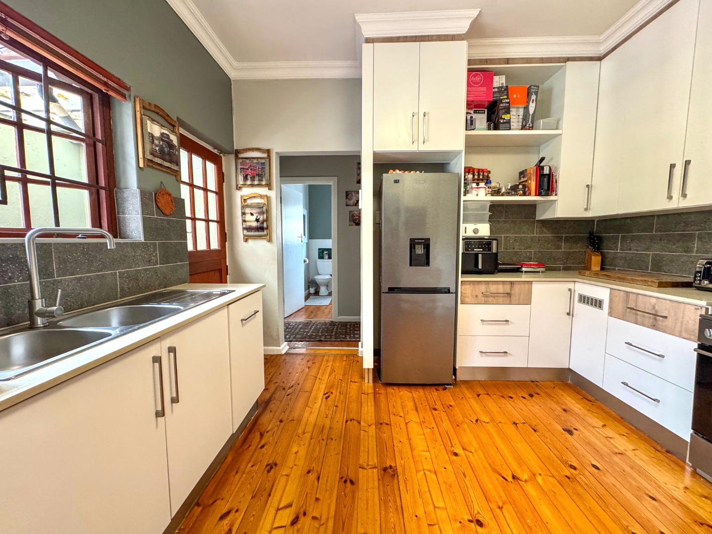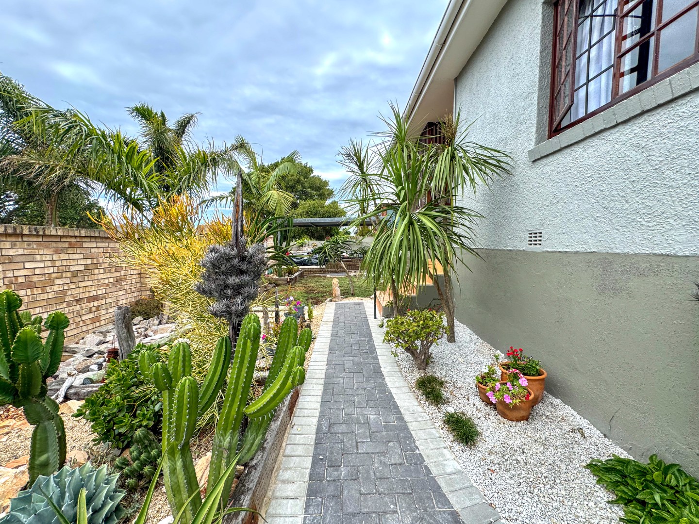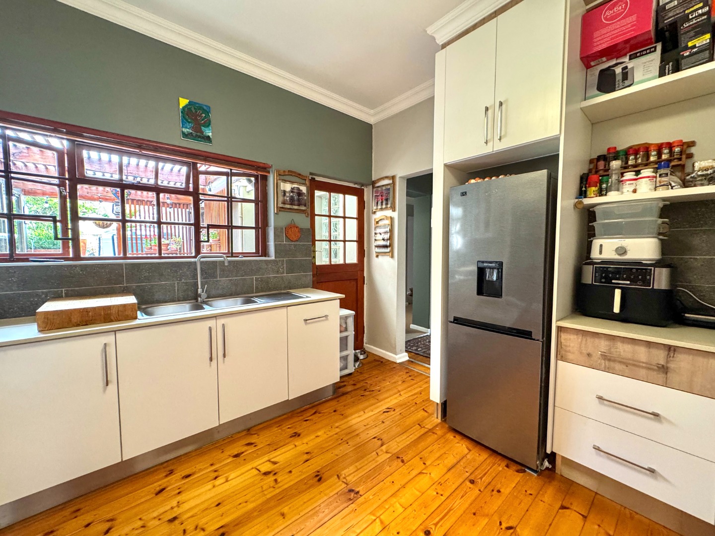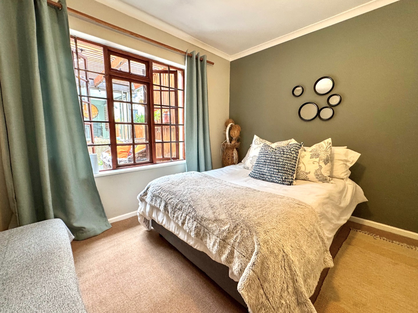 Step outside to discover a private outdoor oasis centered around an inviting swimming pool, perfect for cooling off on warm South African days. The covered patio and sunroom provide versatile spaces for relaxation and year-round entertainment, complemented by a built-in braai and a charming fire pit for social gatherings. The mature, drought-tolerant succulent garden and paved areas offer a low-maintenance yet vibrant landscape.