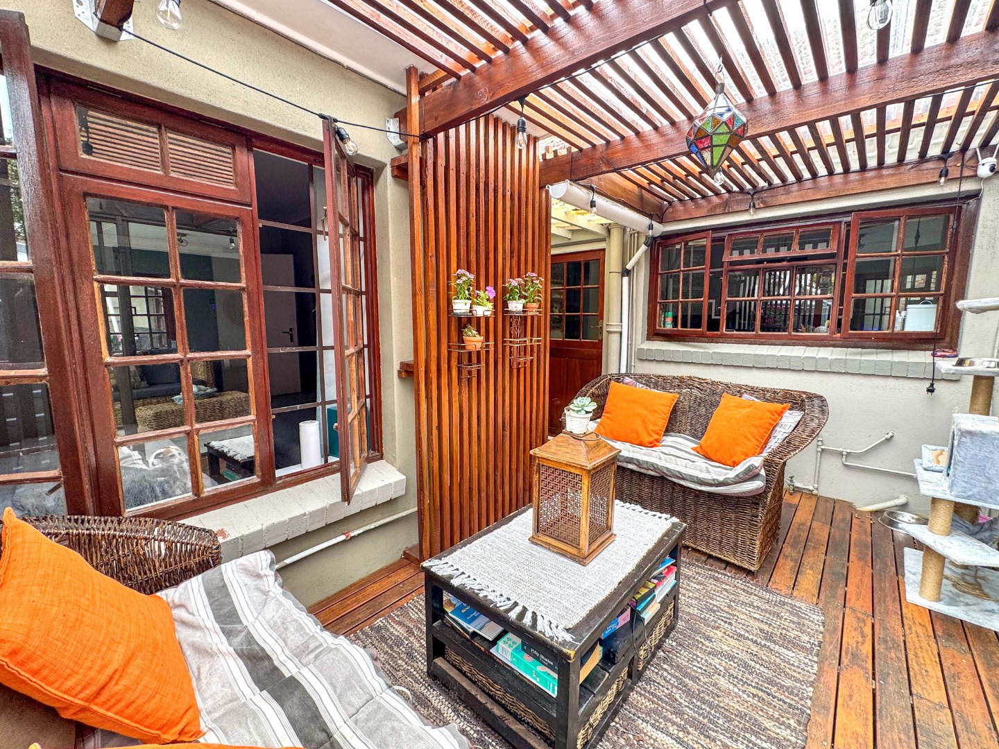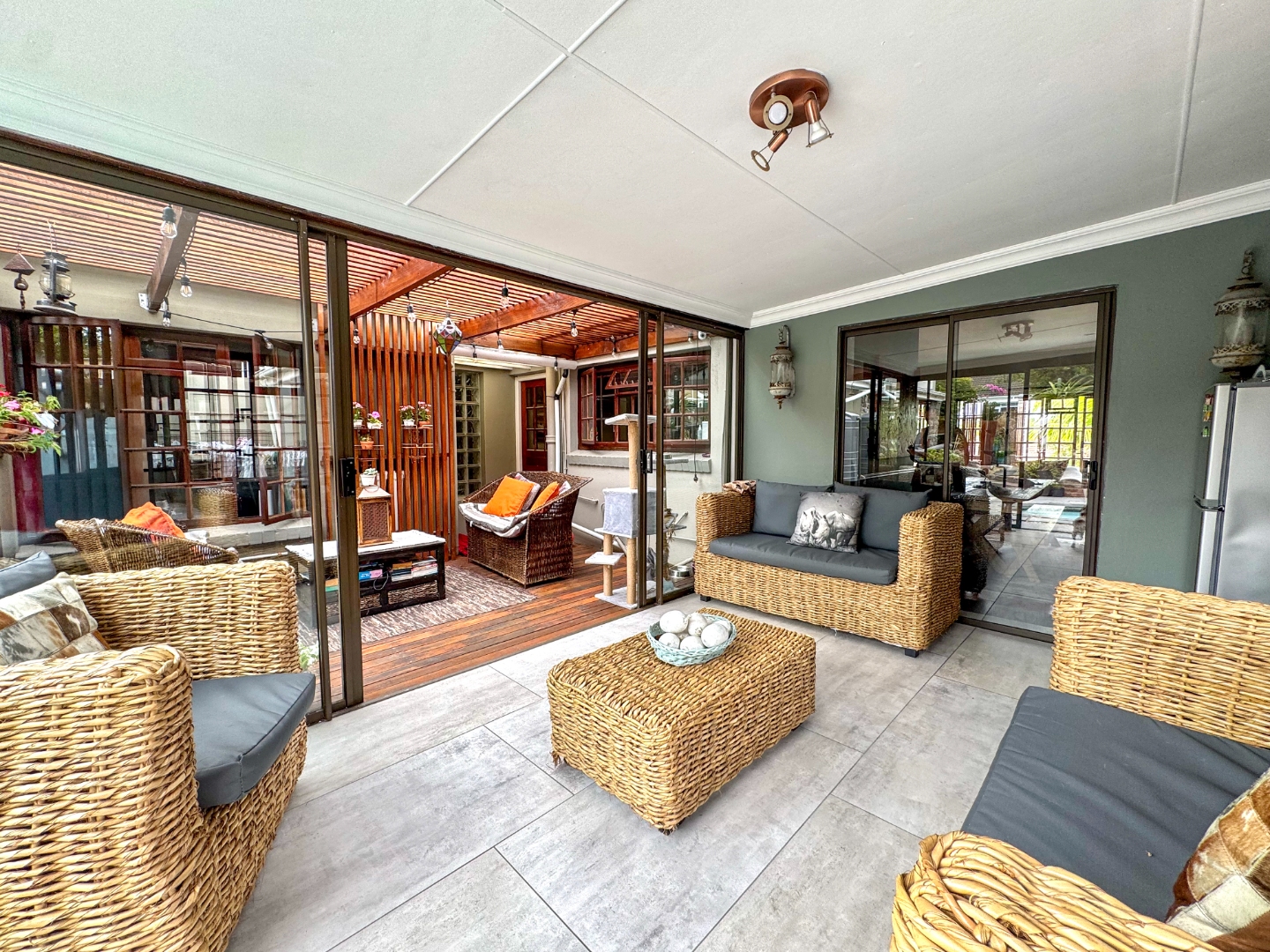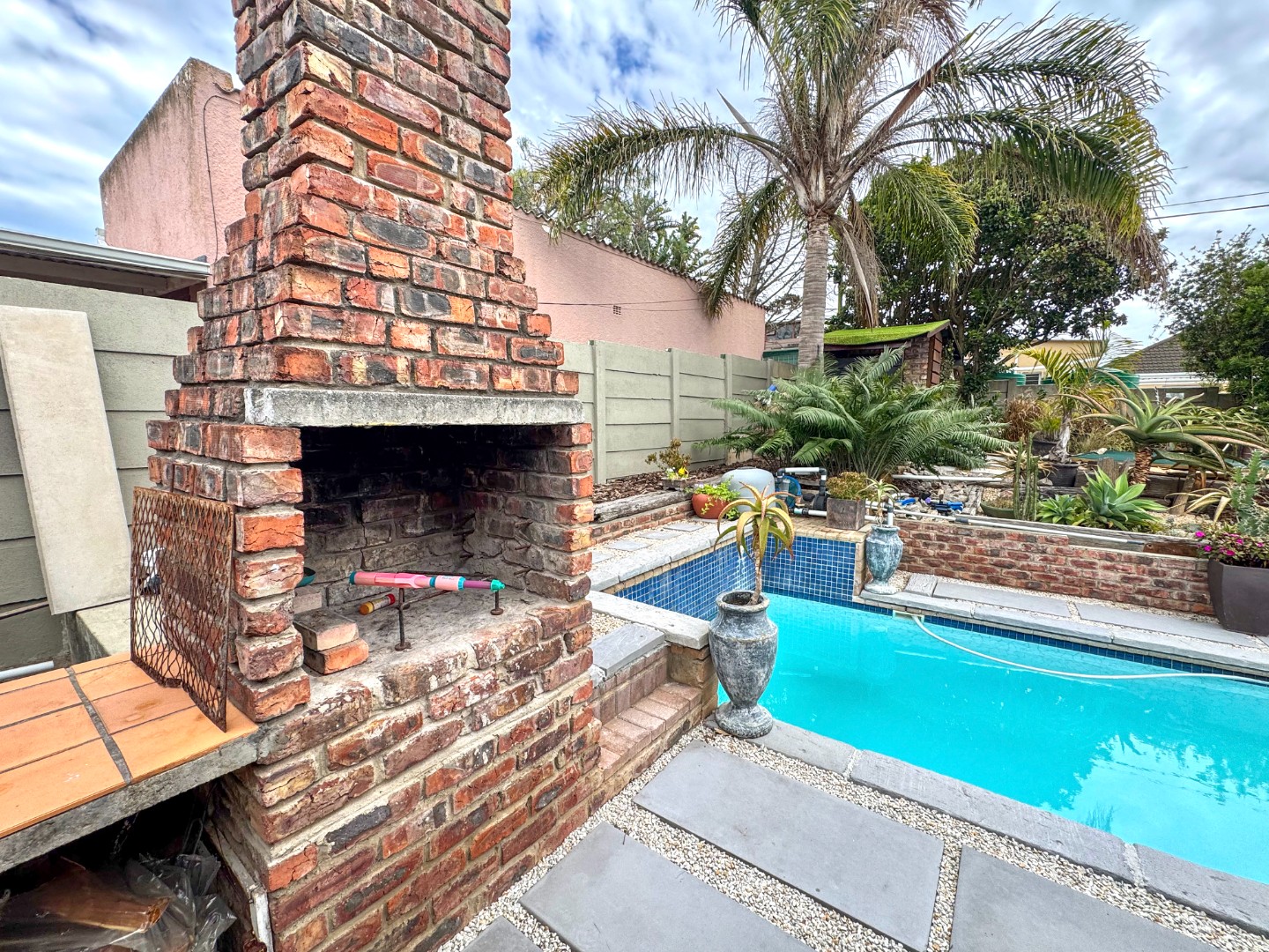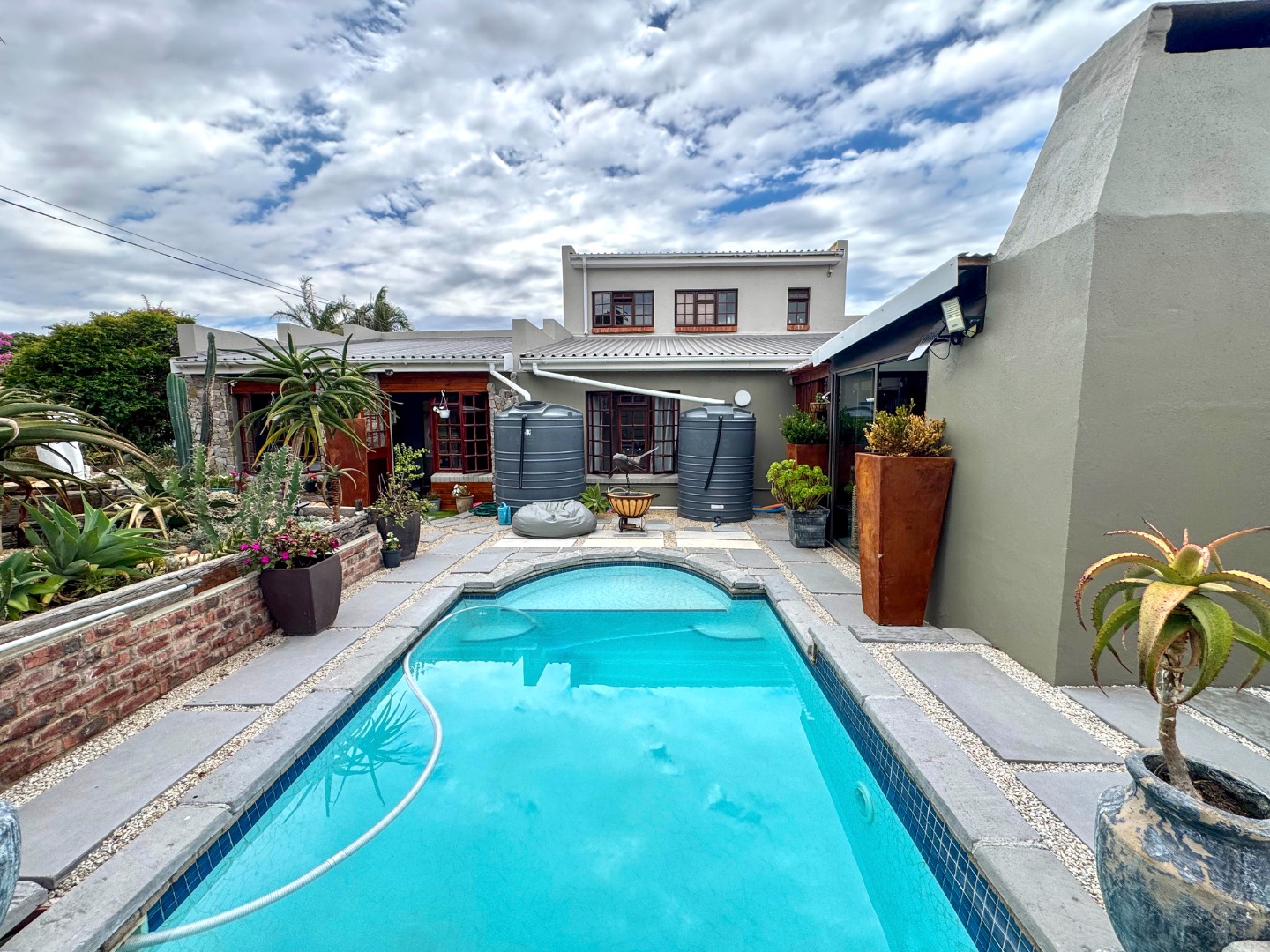 Step outside to discover a private outdoor oasis centered around an inviting swimming pool, perfect for cooling off on warm South African days. The covered patio and sunroom provide versatile spaces for relaxation and year-round entertainment, complemented by a built-in braai and a charming fire pit for social gatherings. The mature, drought-tolerant succulent garden and paved areas offer a low-maintenance yet vibrant landscape.