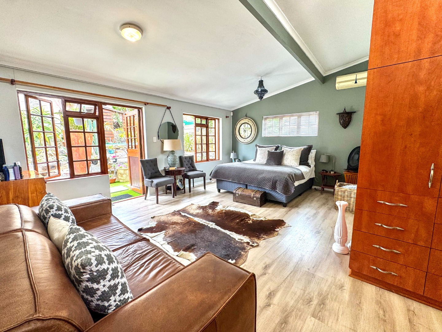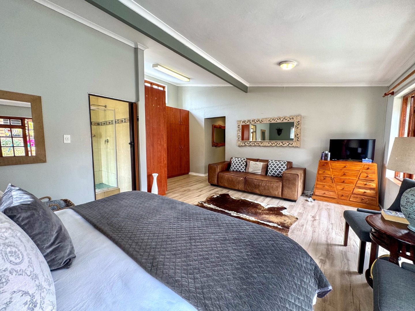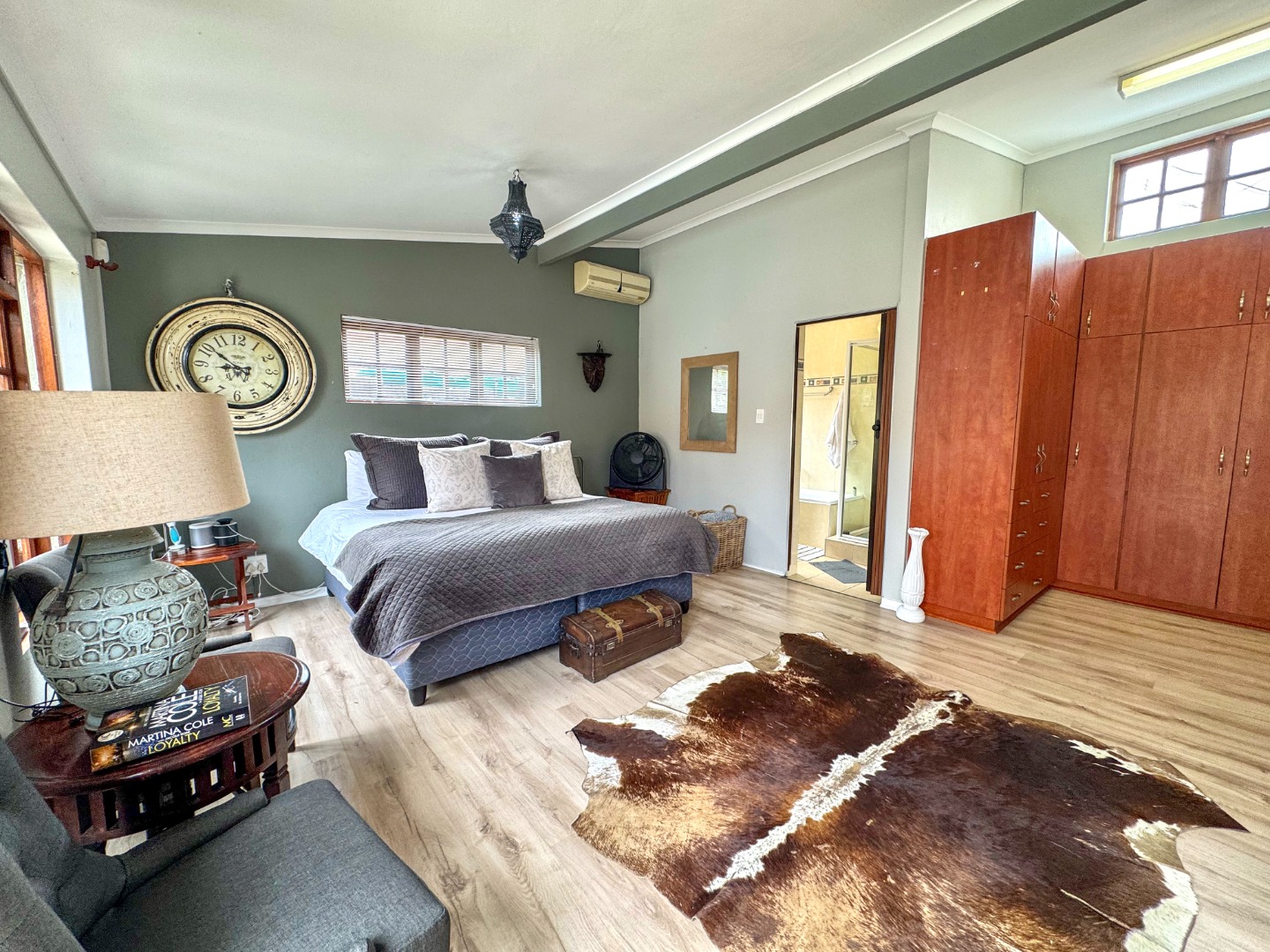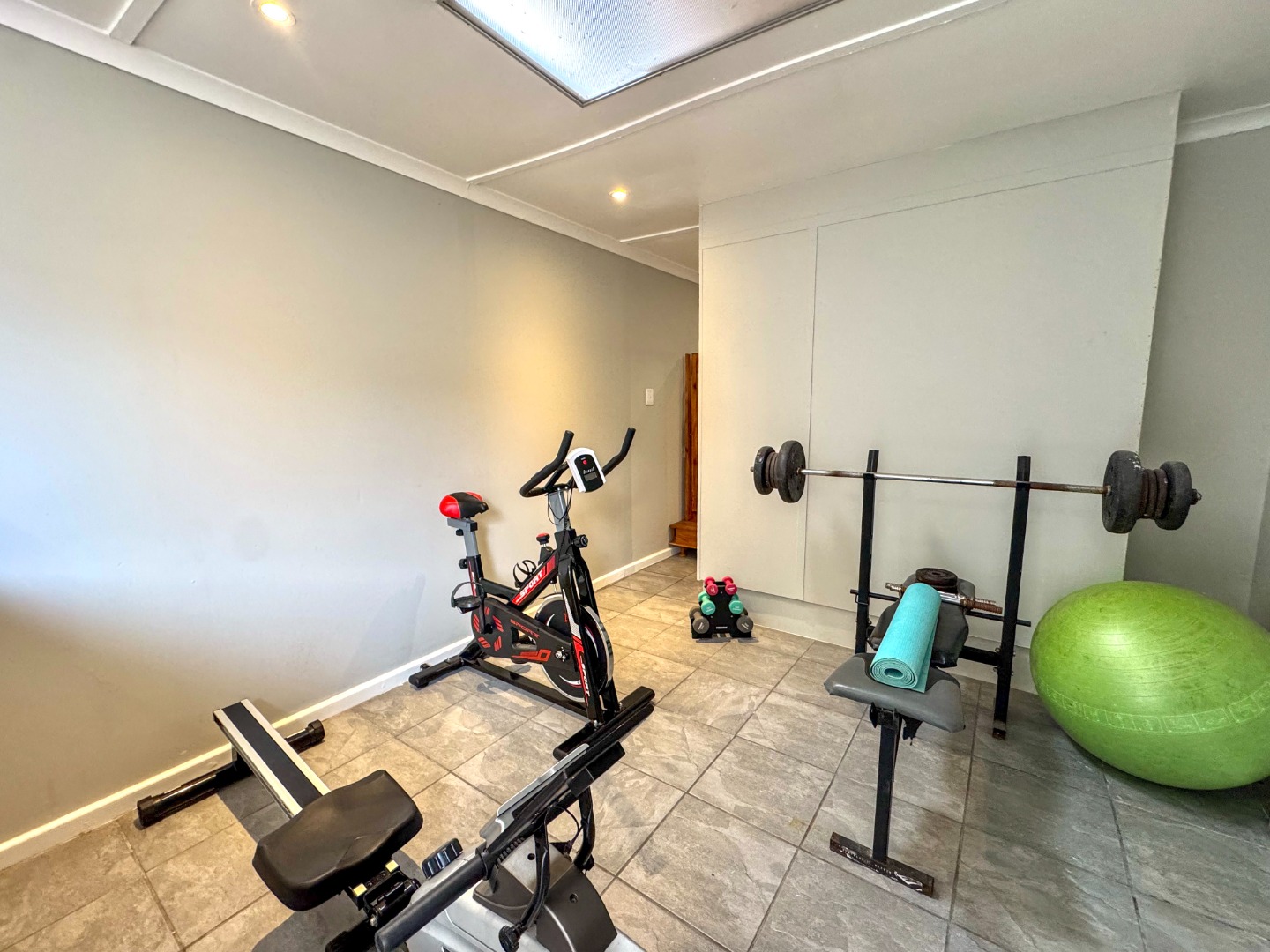 Step outside to discover a private outdoor oasis centered around an inviting swimming pool, perfect for cooling off on warm South African days. The covered patio and sunroom provide versatile spaces for relaxation and year-round entertainment, complemented by a built-in braai and a charming fire pit for social gatherings. The mature, drought-tolerant succulent garden and paved areas offer a low-maintenance yet vibrant landscape.