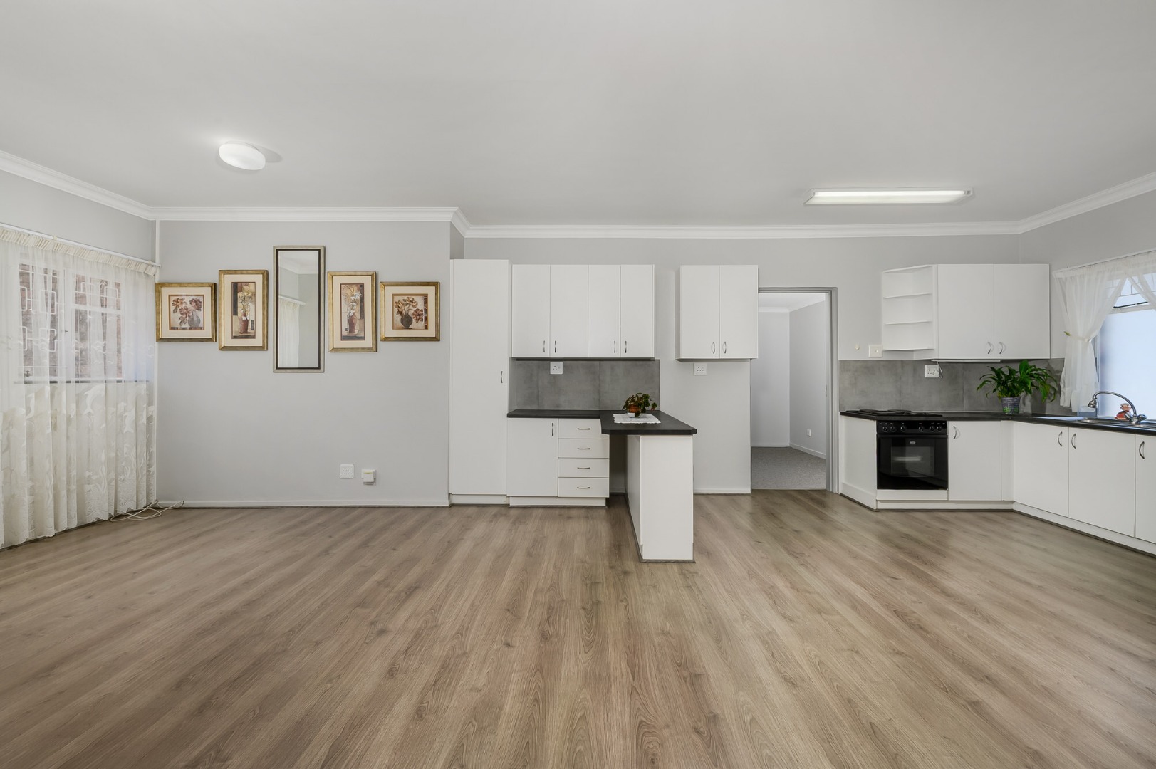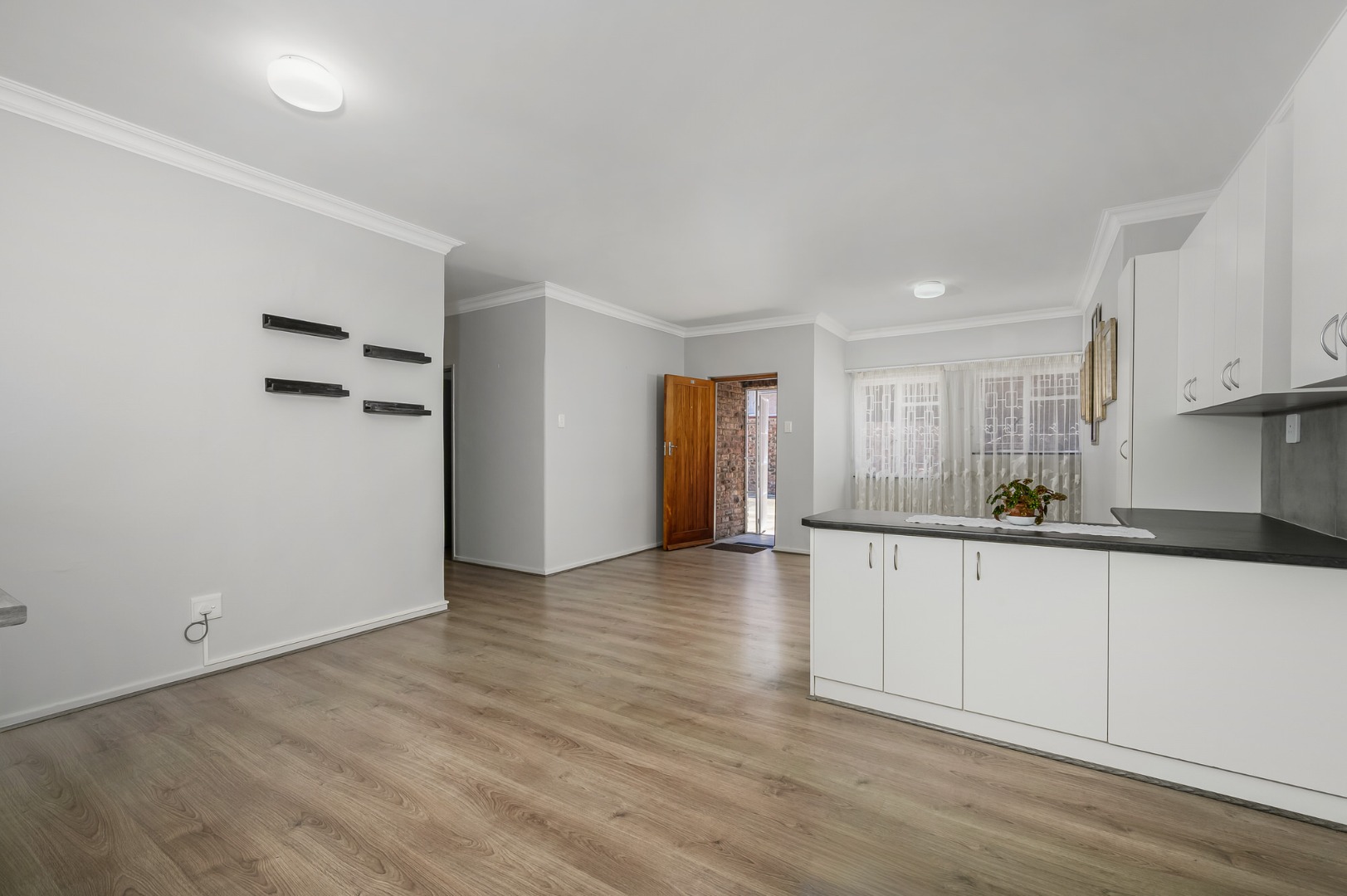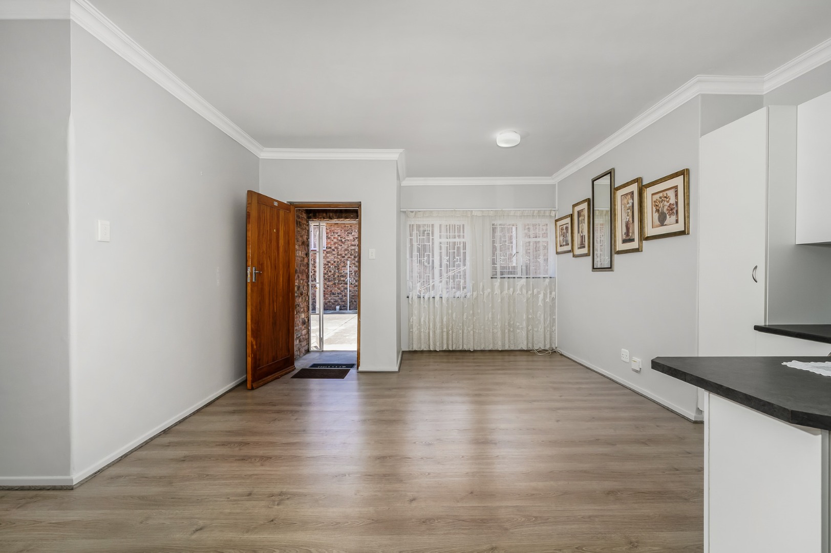 The open-plan living area is well-proportioned and easily accommodates a lounge and dining area. The neatly fitted kitchen, positioned conveniently to one side, offers ample built-in cupboards as well as an under-counter oven with hob, making it ideal for everyday living. Additional features include secure parking, good internal security, a remote-controlled access gate, and an intercom system for added peace of mind. Residents also have access to a communal hall, ideal for social gatherings or shared activities within the complex. This well-managed complex offers a safe and welcoming lifestyle, making it an excellent choice for first-time buyers, those looking to downscale, or investors.