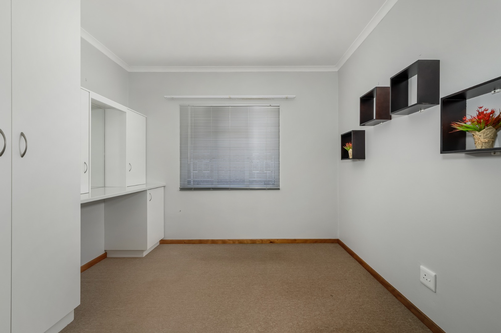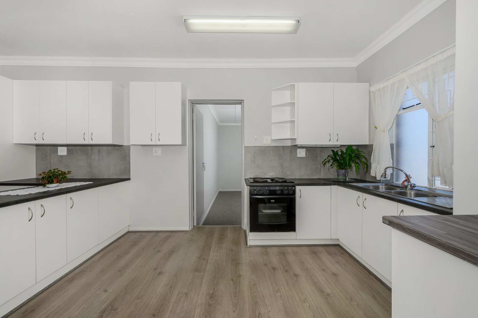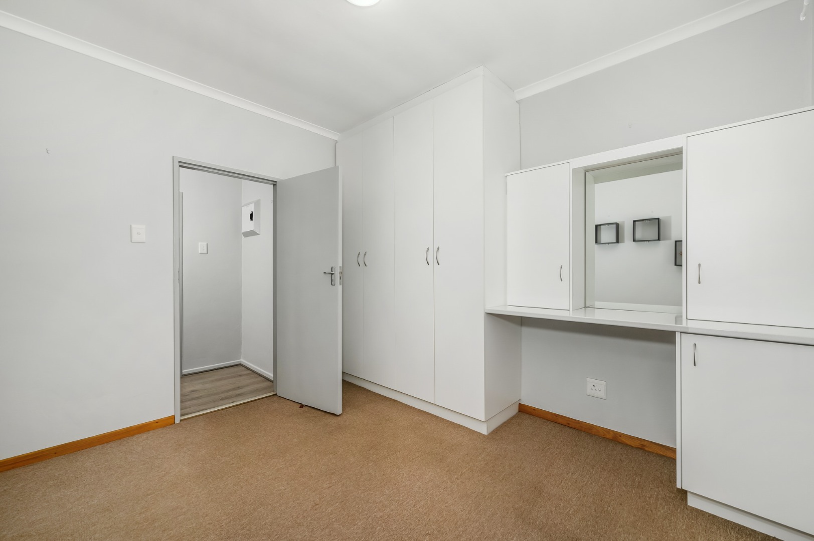 The open-plan living area is well-proportioned and easily accommodates a lounge and dining area. The neatly fitted kitchen, positioned conveniently to one side, offers ample built-in cupboards as well as an under-counter oven with hob, making it ideal for everyday living. Additional features include secure parking, good internal security, a remote-controlled access gate, and an intercom system for added peace of mind. Residents also have access to a communal hall, ideal for social gatherings or shared activities within the complex. This well-managed complex offers a safe and welcoming lifestyle, making it an excellent choice for first-time buyers, those looking to downscale, or investors.