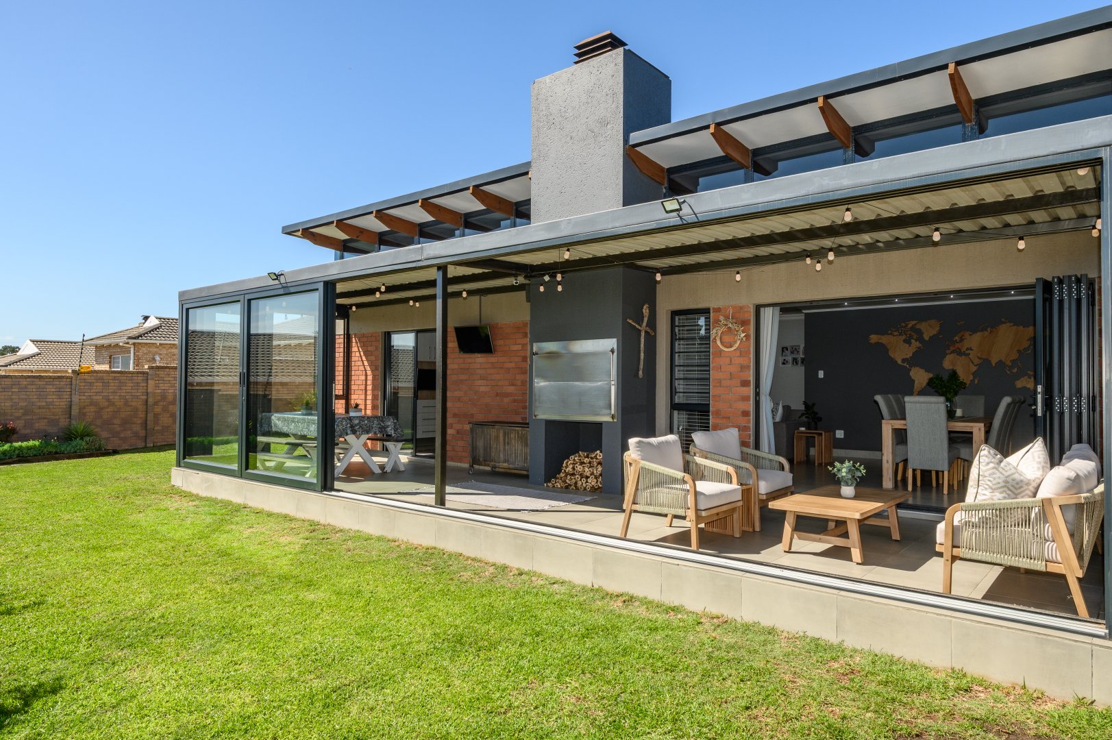 - Built-in Braai & Enclosed Entertainment Area Offering Additional Lounge/Dining Space