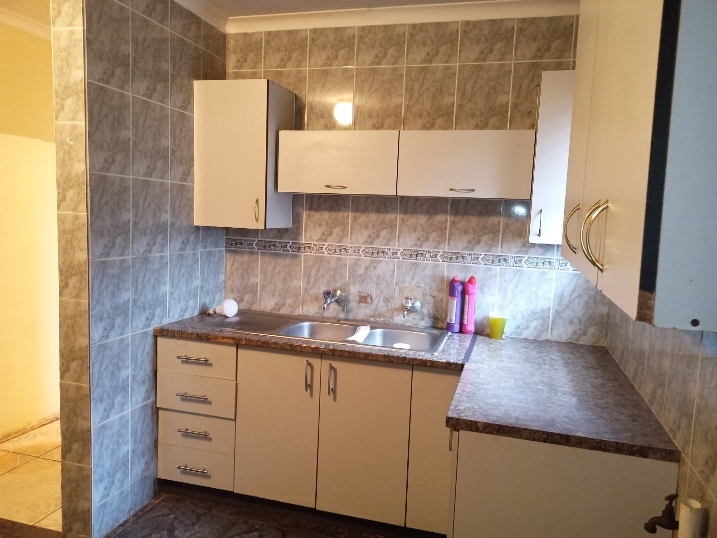 House for sale at Kwa-dwesi . It consist of 3 Bedroom( All with built in cupboards), Spacious Lounge, Big Kitchen with lots of cupboards, Bathroom & Single Garage. The house is fully walled and it has space for cars inside the premises.