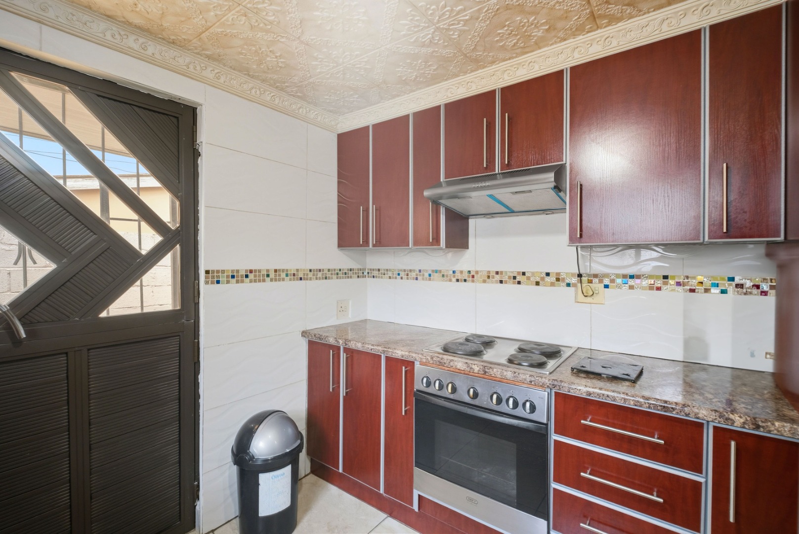 Outside offers a single Garage plus additional yard space to accommodate two more vehicles. There is also a flatlet at the back and an outside toilet, perfect for extended family or rental potential. The property is fully walled and secured with burglar gates and trellidors, providing peace of mind.