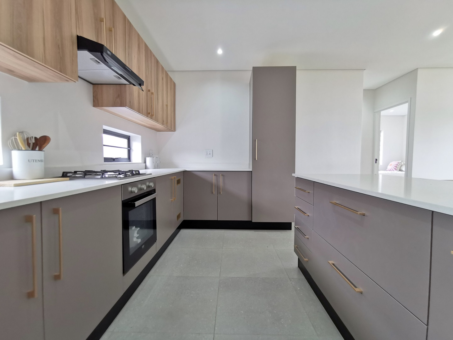 Each residence features a seamless open-plan layout, stylish interiors with soft sheen finishes, Rustenburg granite countertops, and a fully fitted kitchen equipped with a gas hob, under-counter oven, and extractor. Bedrooms include built-in cupboards, and bathrooms are fitted with high-quality fixtures and finishes for everyday comfort and luxury.