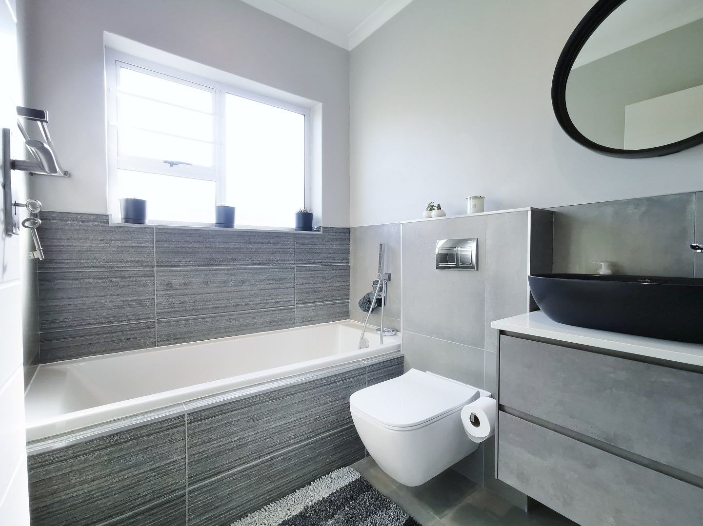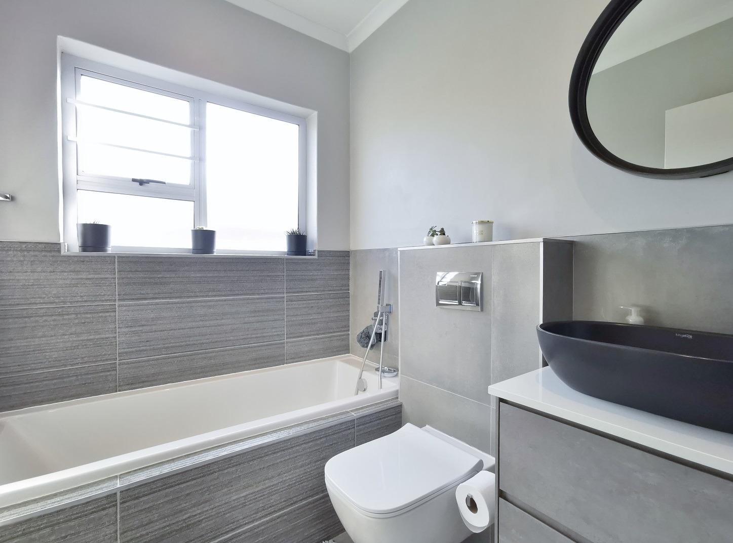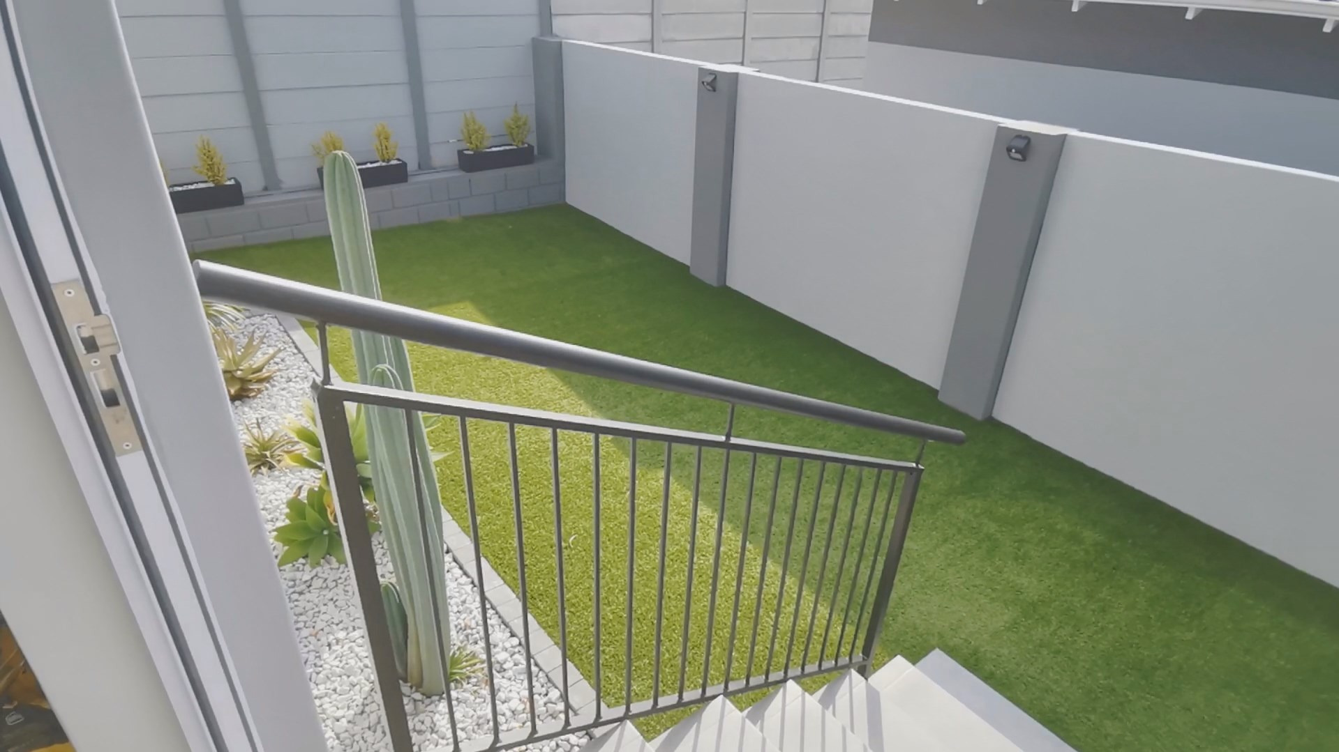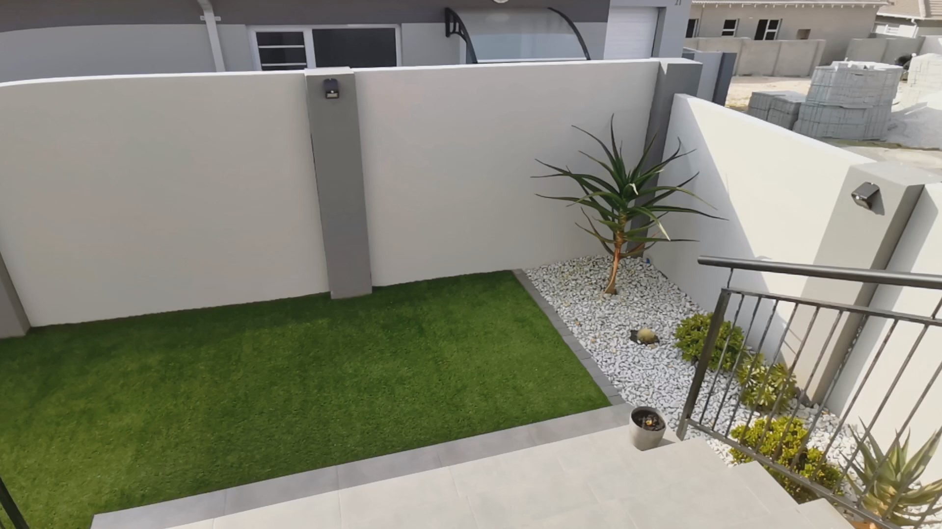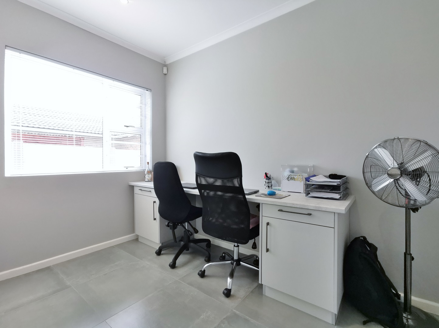 At its heart, the home boasts a sleek open-plan kitchen with a central island, quartz countertops, gas hob, stainless steel extractor and a separate scullery. The living and dining areas flow into a sunlit indoor braai room, ideal for year-round entertaining, while stack-away doors open onto a lush, low-maintenance garden with artificial lawn and designer landscaping.