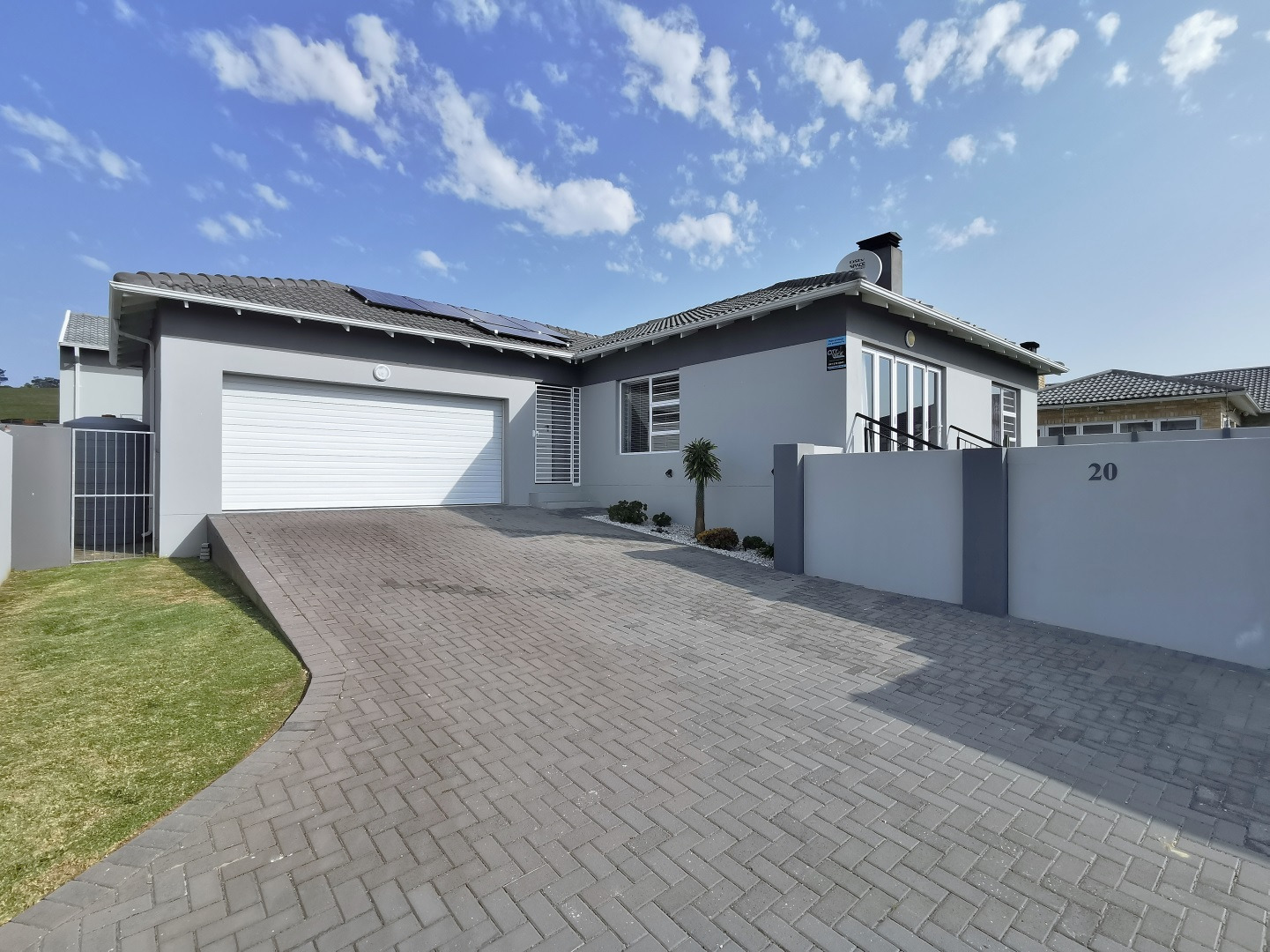 Energy efficiency is top-notch, with a solar geyser, three rainwater tanks and a 5kVA inverter system with a 5kW battery installed in the inter-leading double garage. The estate also offers a communal borehole backup water system.