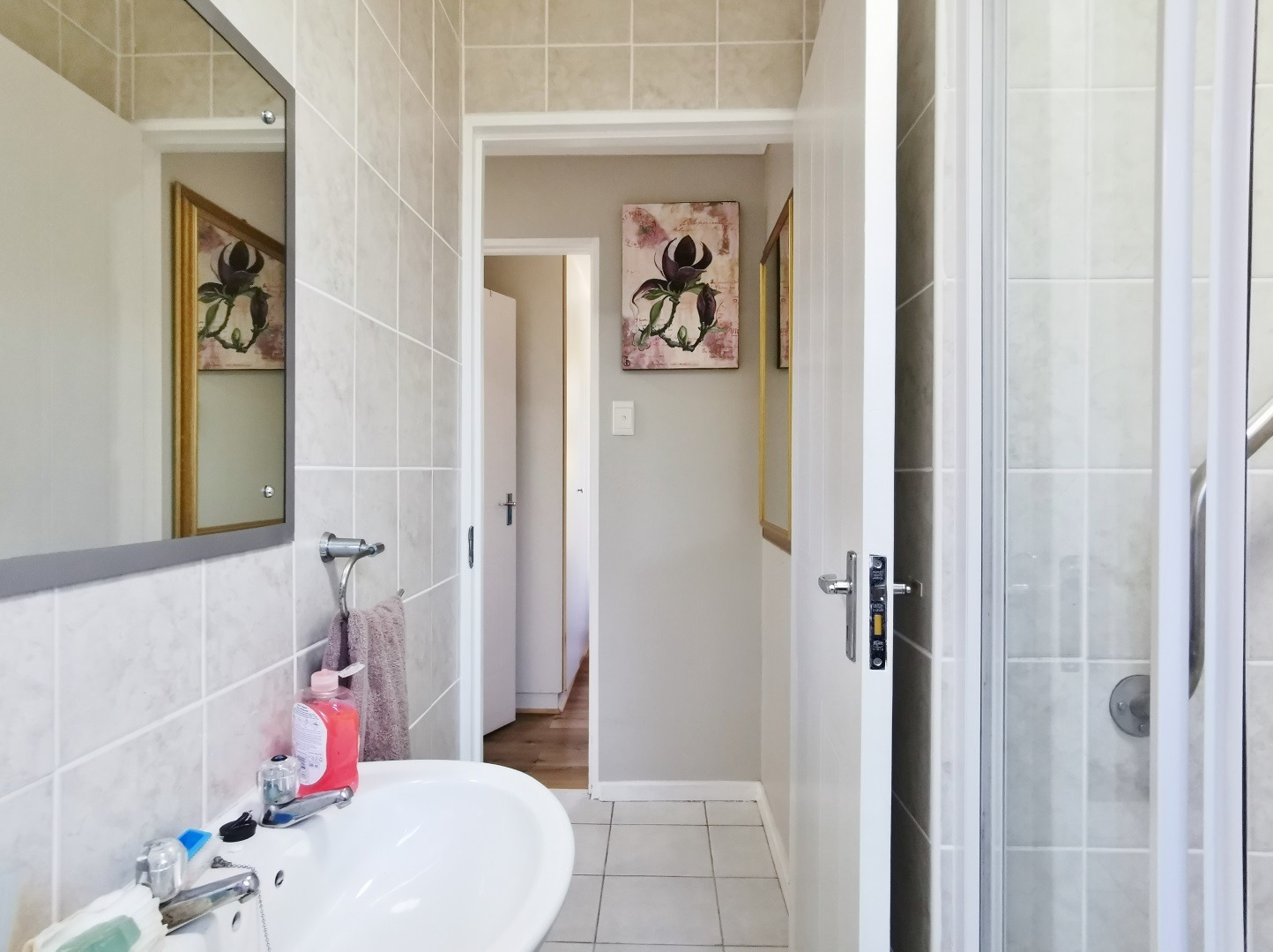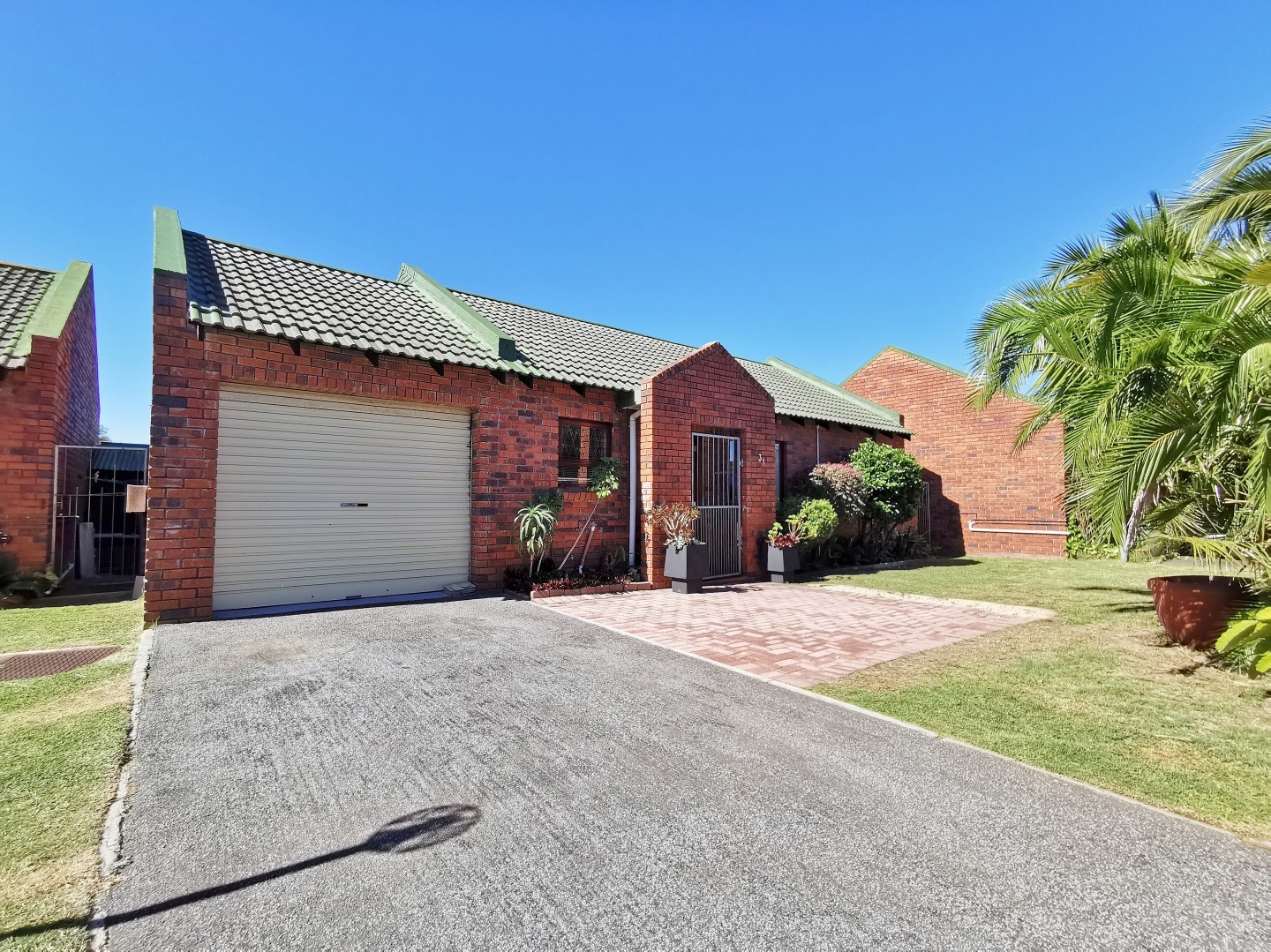 The residence comprises three comfortable bedrooms, two fitted with practical built-in cupboards. There are two well-appointed bathrooms, each featuring a shower, basin, and toilet, with the main bedroom benefiting from an en-suite for added privacy. Further enhancing the property is a single interleading garage, operated by remote control and including a washing machine point, complemented by additional paved parking in front of the unit.
