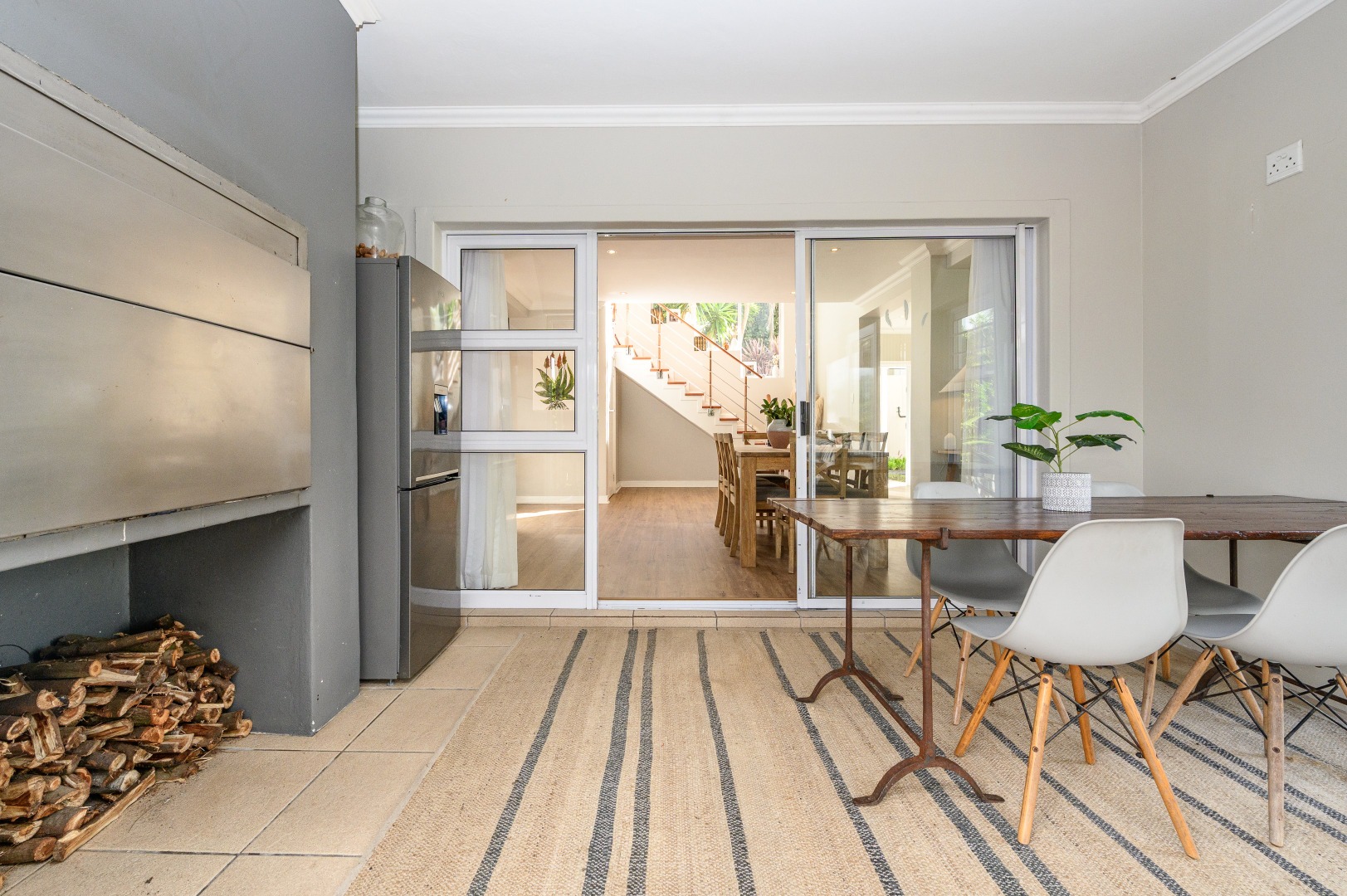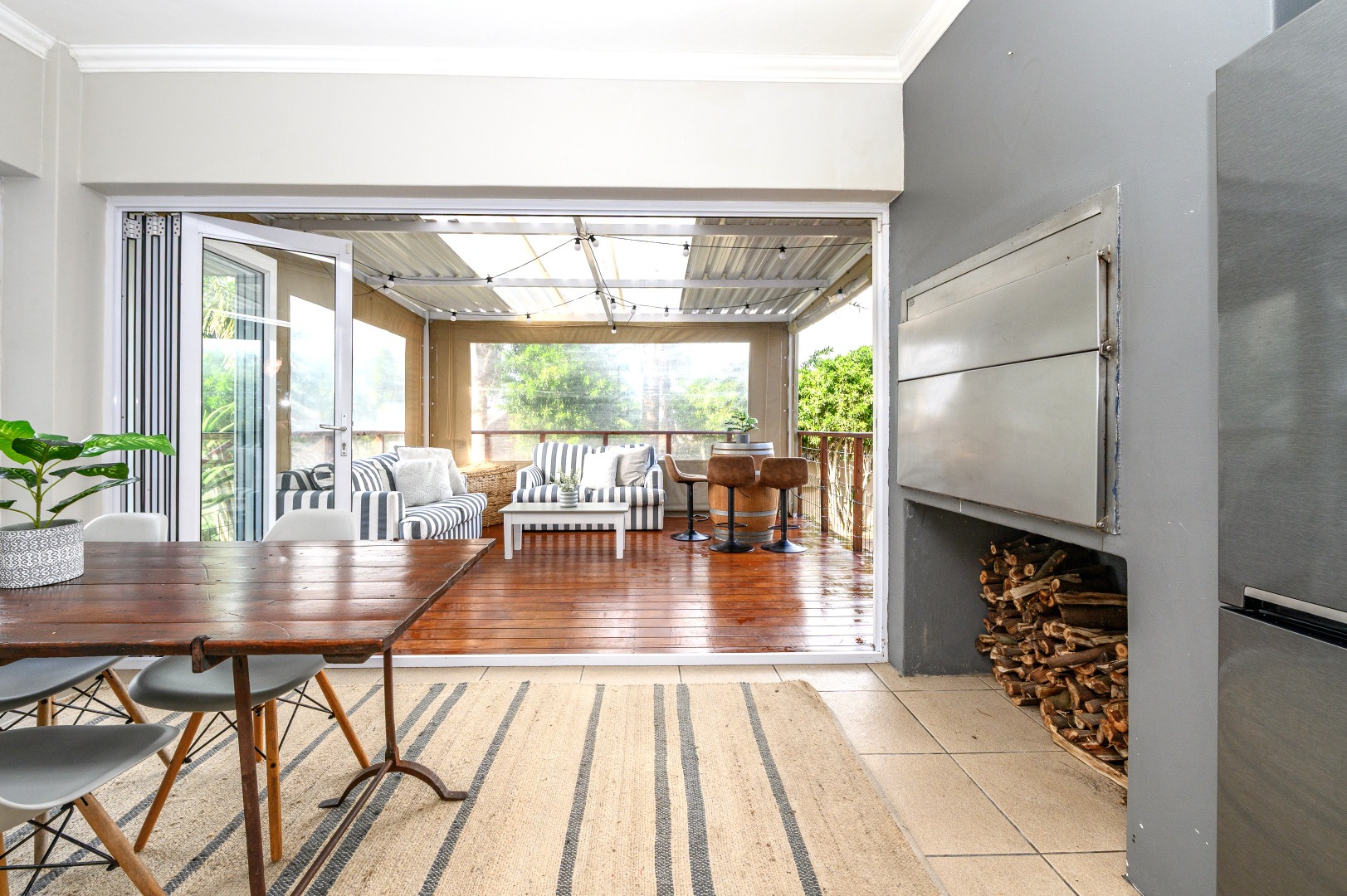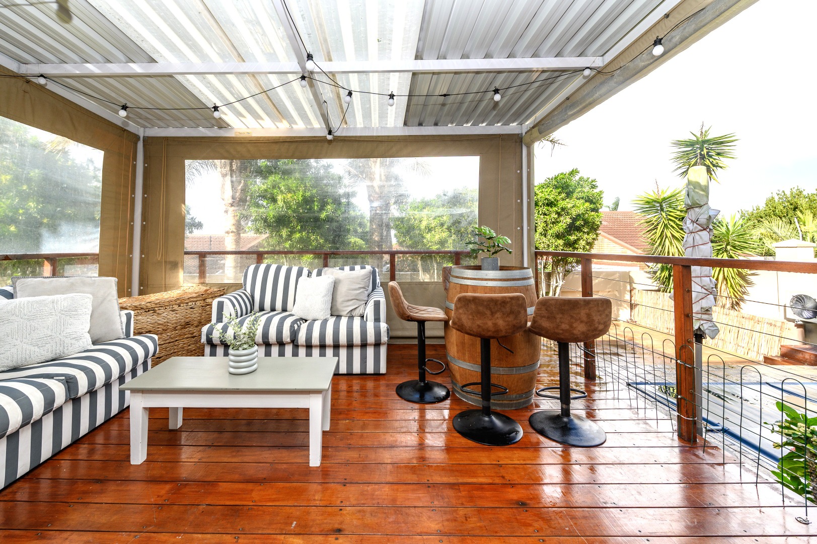 Designed with entertaining in mind, the indoor braai area extends seamlessly to an undercover patio fitted with blinds, overlooking the swimming pool - a perfect setting for year-round gatherings.
