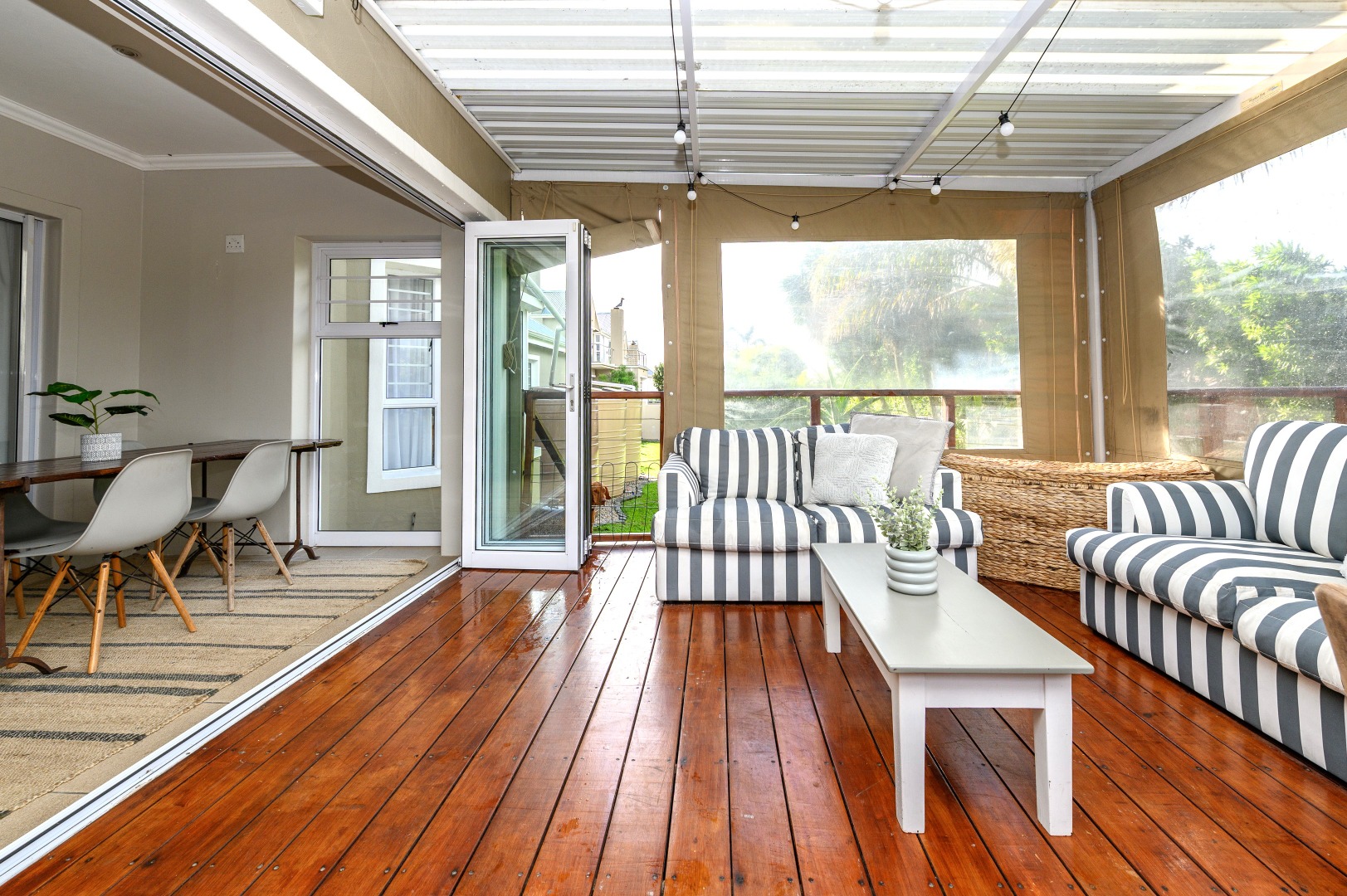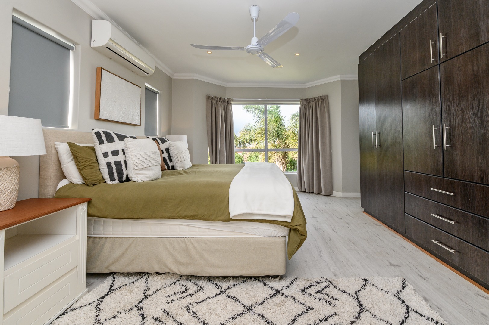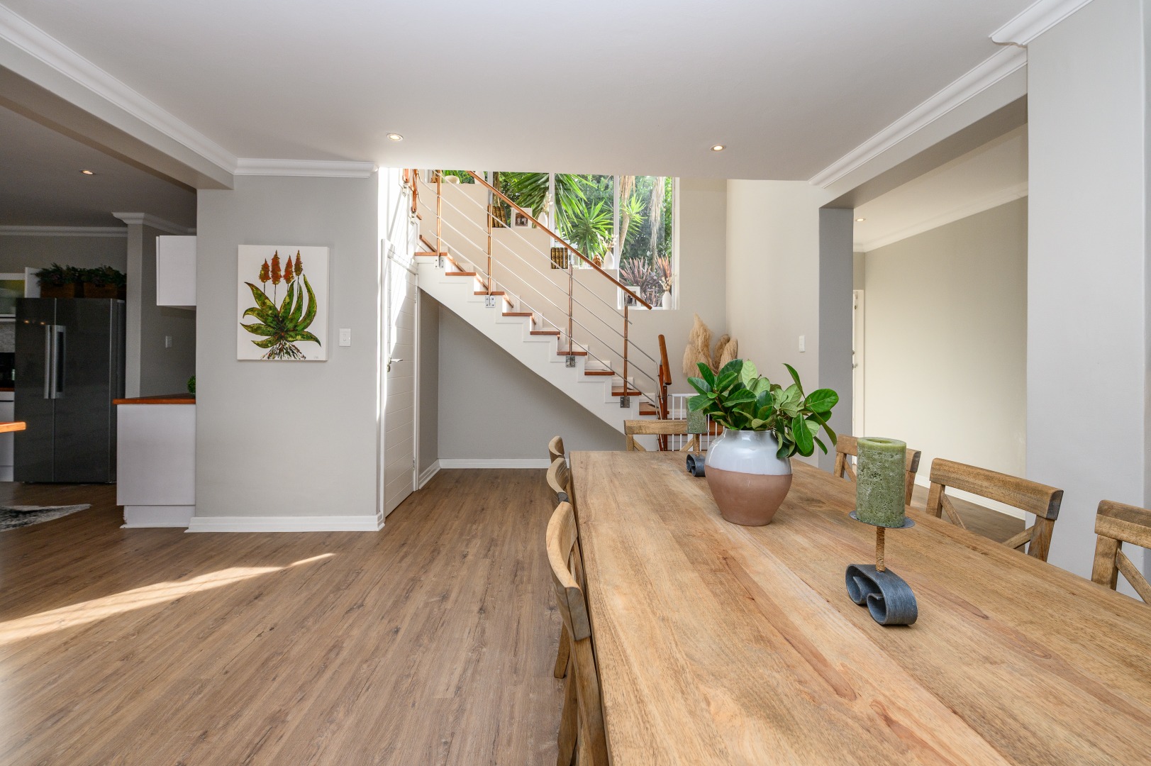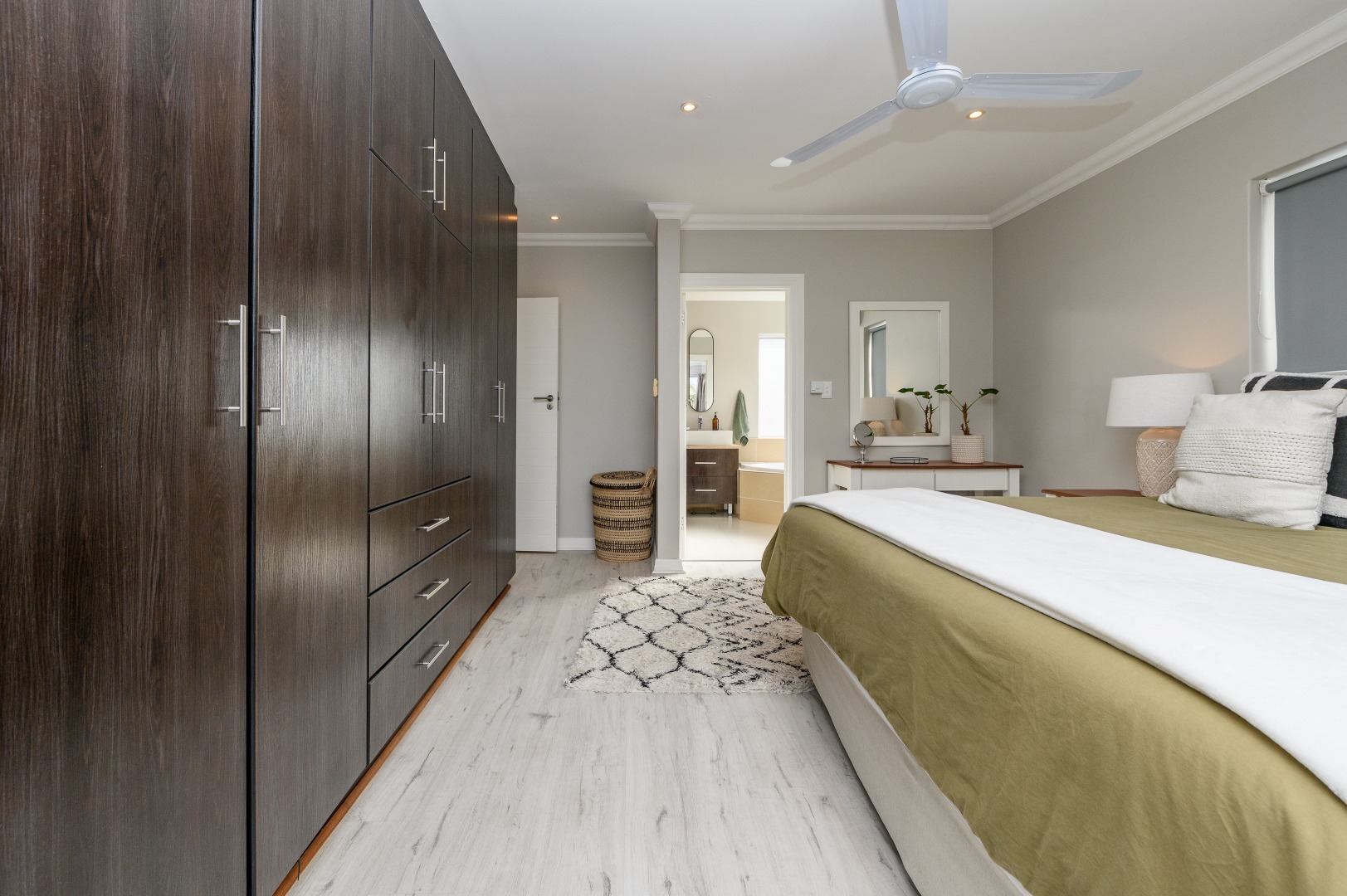 Designed with entertaining in mind, the indoor braai area extends seamlessly to an undercover patio fitted with blinds, overlooking the swimming pool - a perfect setting for year-round gatherings.