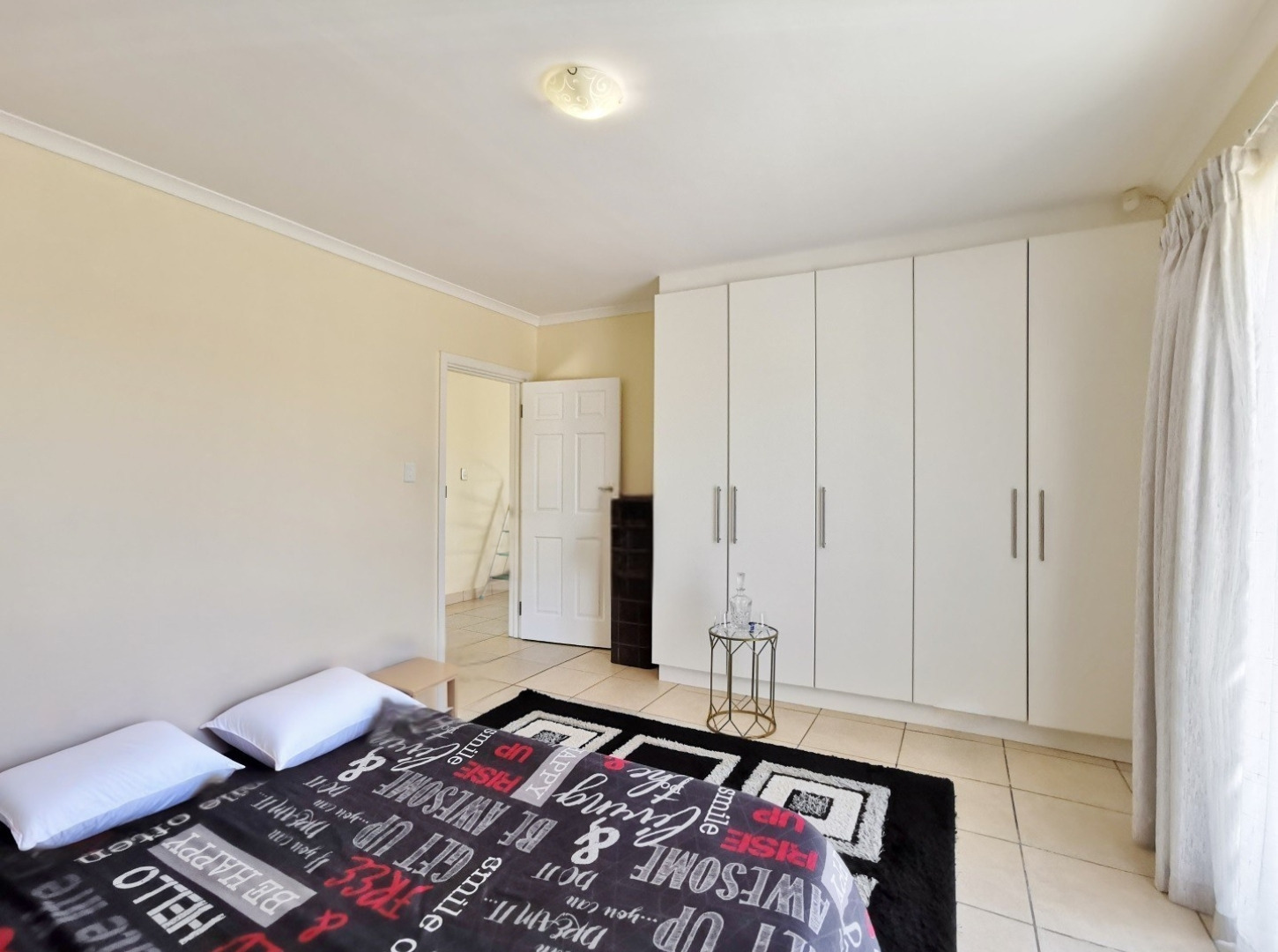 Tiered steps lead down to a spacious kitchen with scullery and an informal lounge area, perfect for casual living and easy entertaining. This level opens out to a open patio with a built-in braai, set on the upper garden terrace, ideal for enjoying summer evenings. The tiered, enclosed garden offers a rear access gate to the street behind, enhancing privacy and functionality.