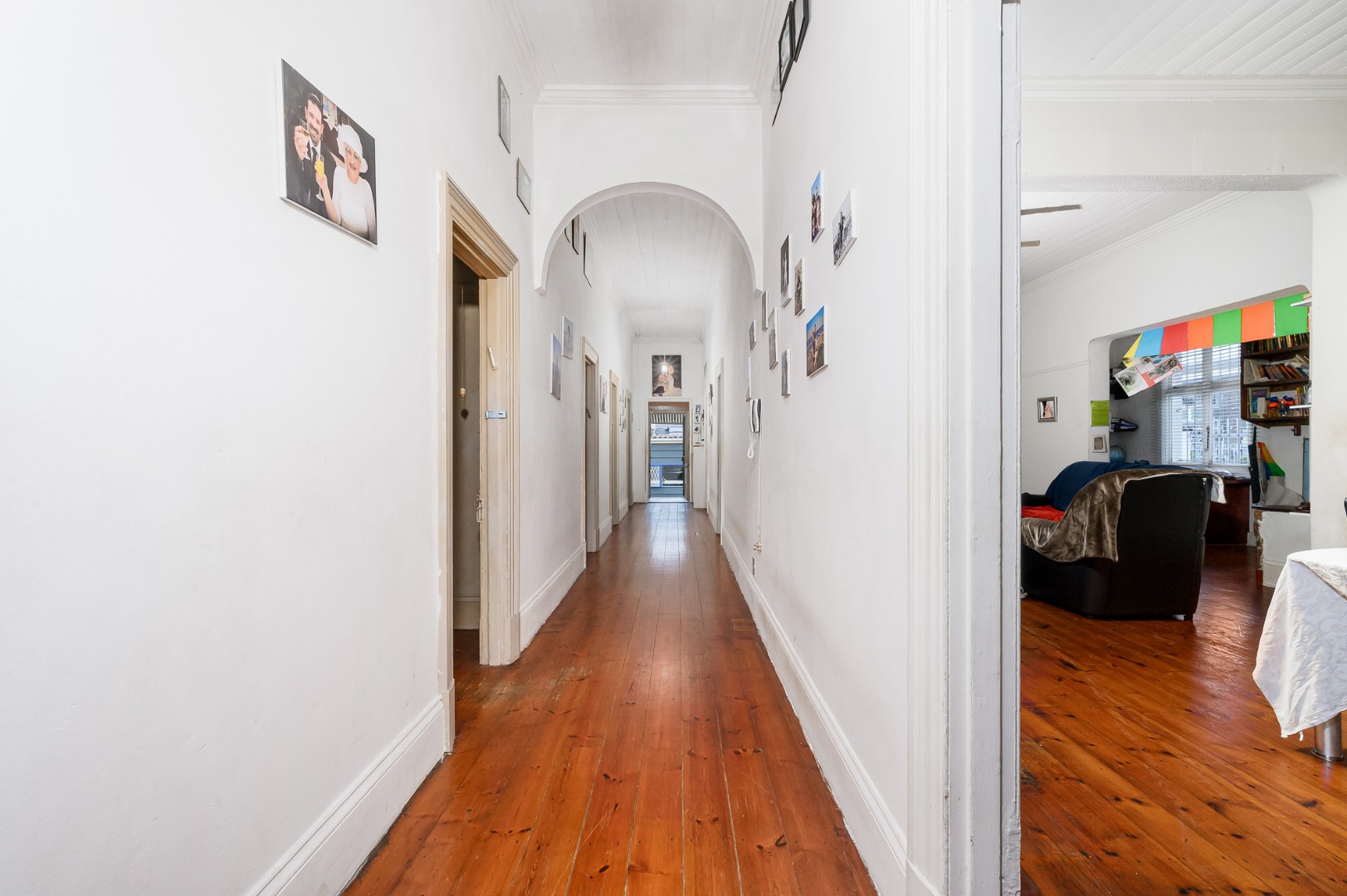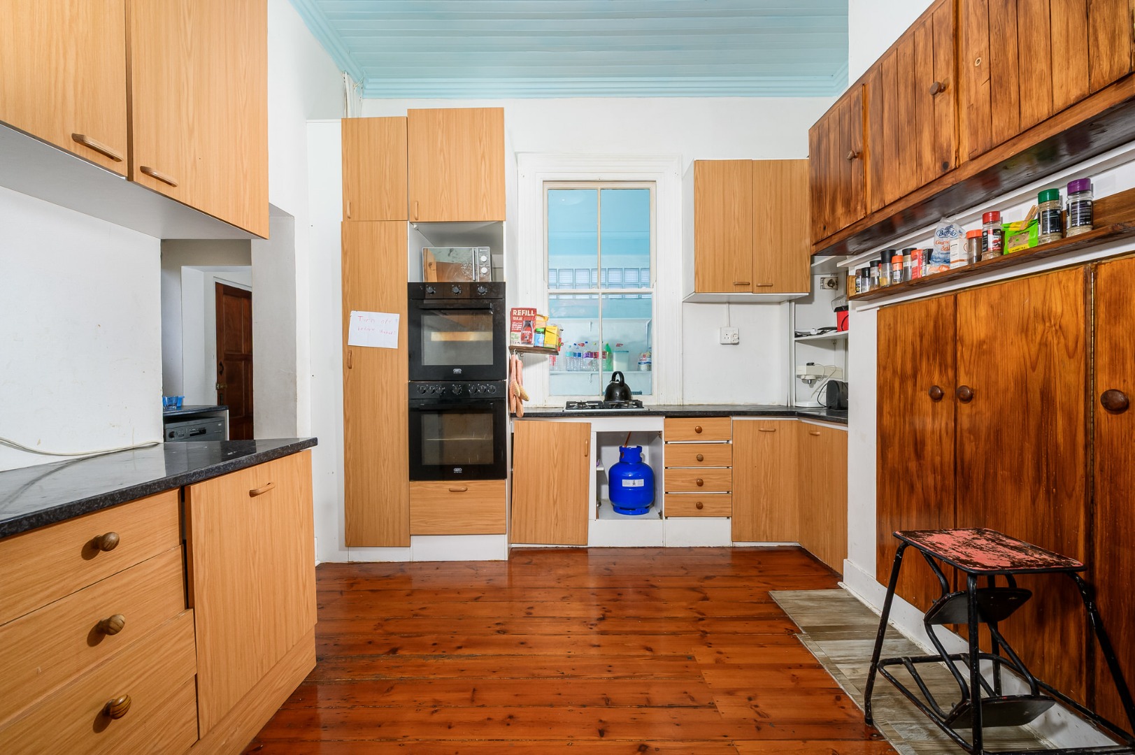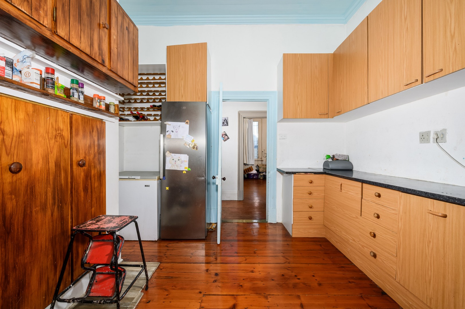 The kitchen is well appointed, complete with a scullery and a walk-in pantry, while the beautifully wooden flooring adds timeless warmth and charm throughout.