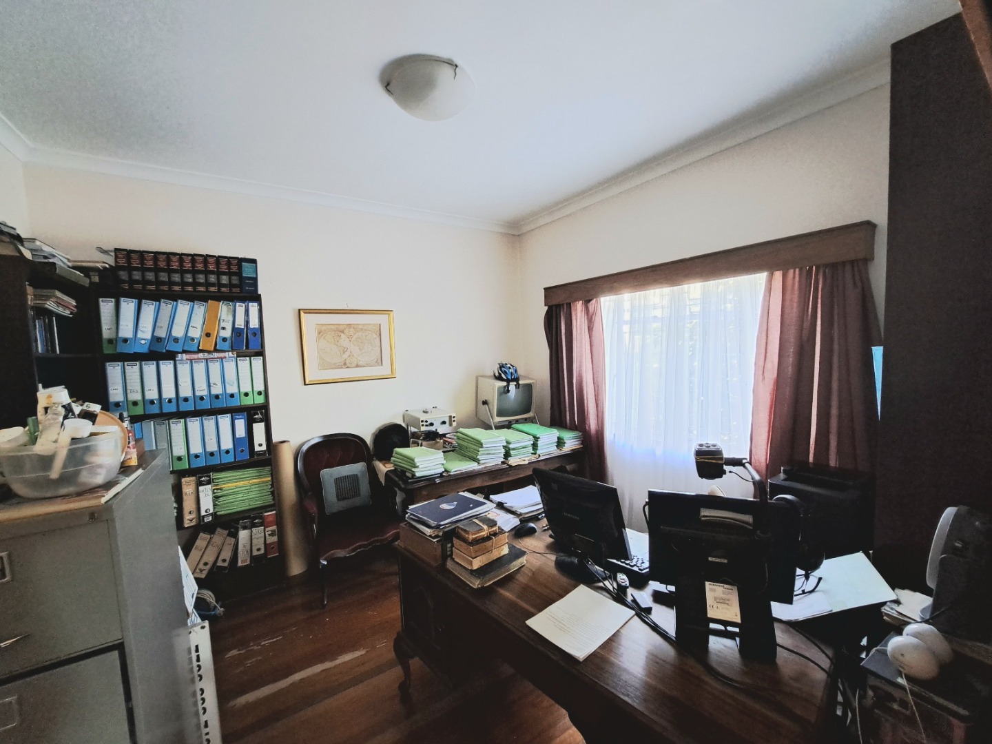 This beautifully cared for property, as is, will easily provide for business accommodation as it has place for reception, board room, three large offices, a filing space, waiting room, bathroom facilities, Kitchen as well as ample yard space. It also has a flatlet which can be used for accommodation or adapted for extra offices or storage. Security is good and supported by surrounding business security and activity including partial electric fencing. The property is fully walled and has an access gate.