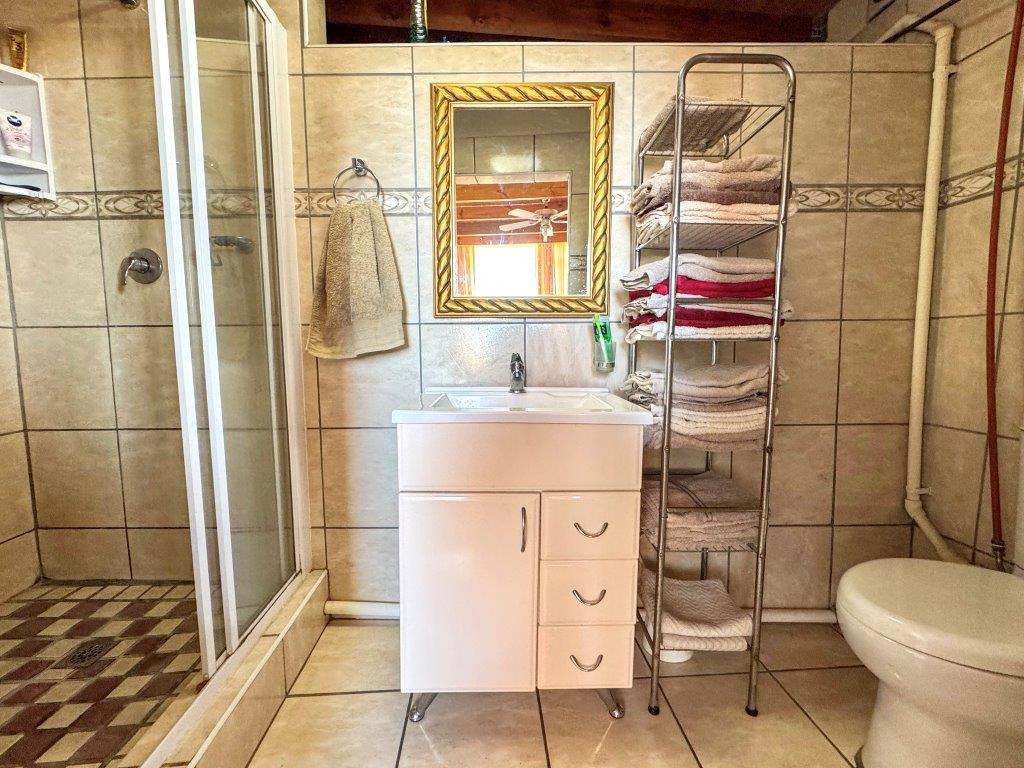 The open-plan lower level living area below has large windows inviting in natural light while framing the stunning outlook. You’ll find a well-designed open-plan one-bedroom flatlet with an en-suite bathroom. This space is perfect for on-site living, rental income, or accommodating staff, offering both privacy and comfort.