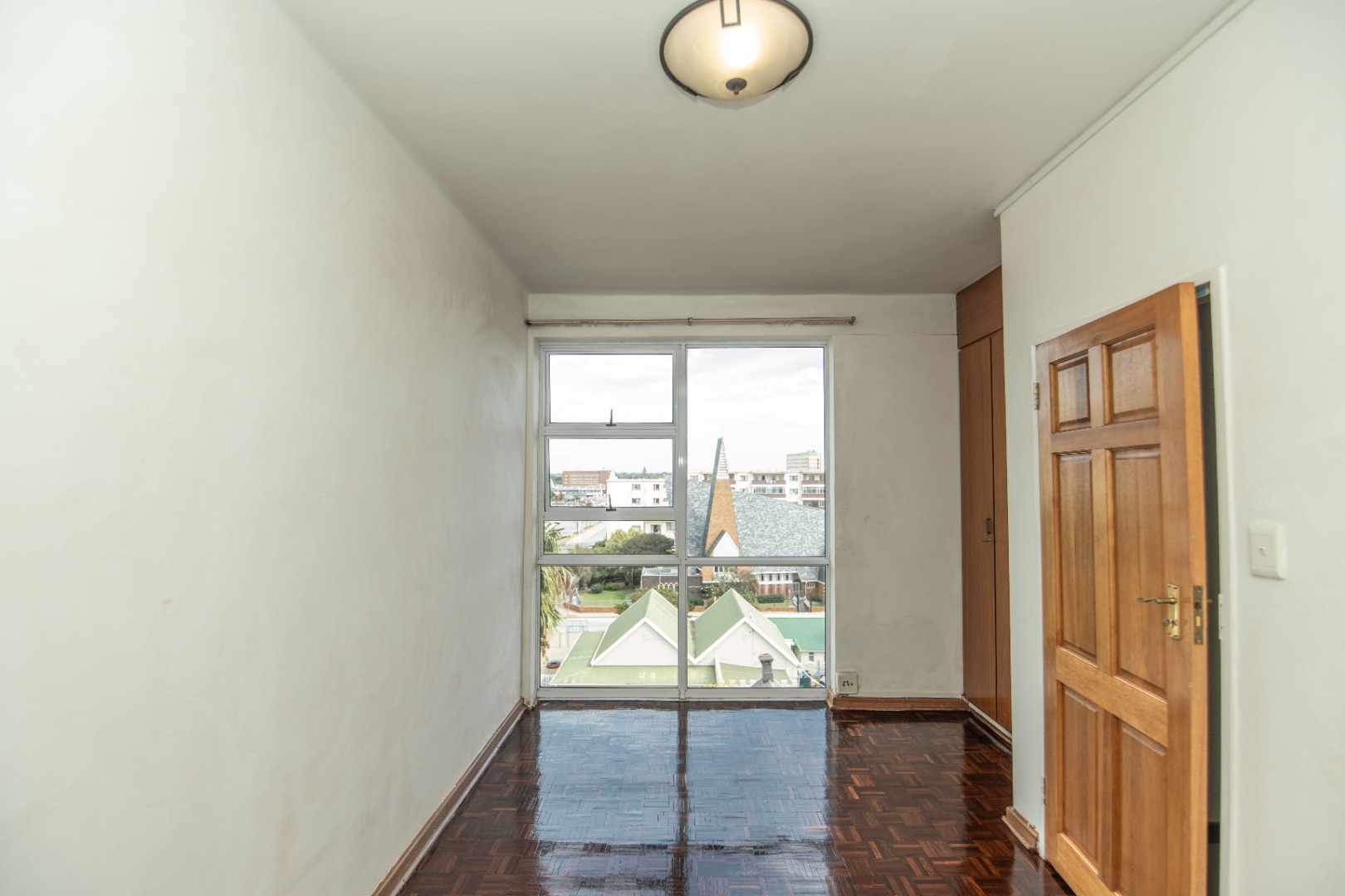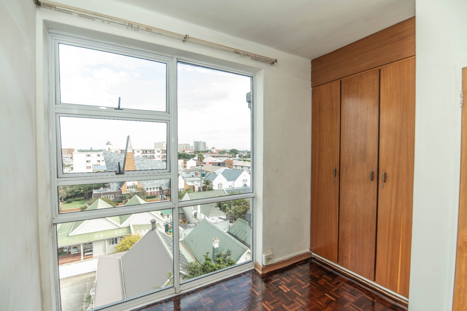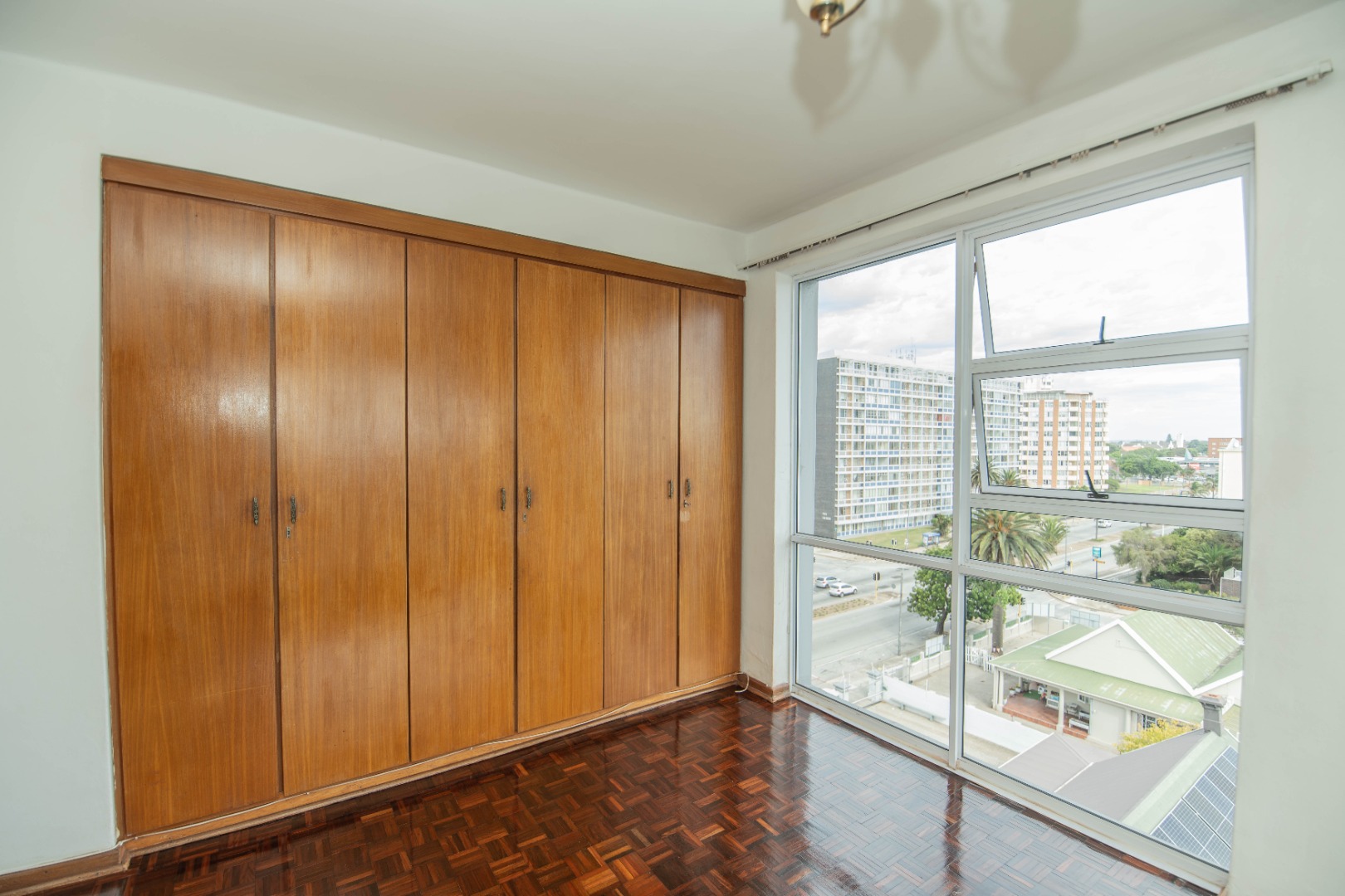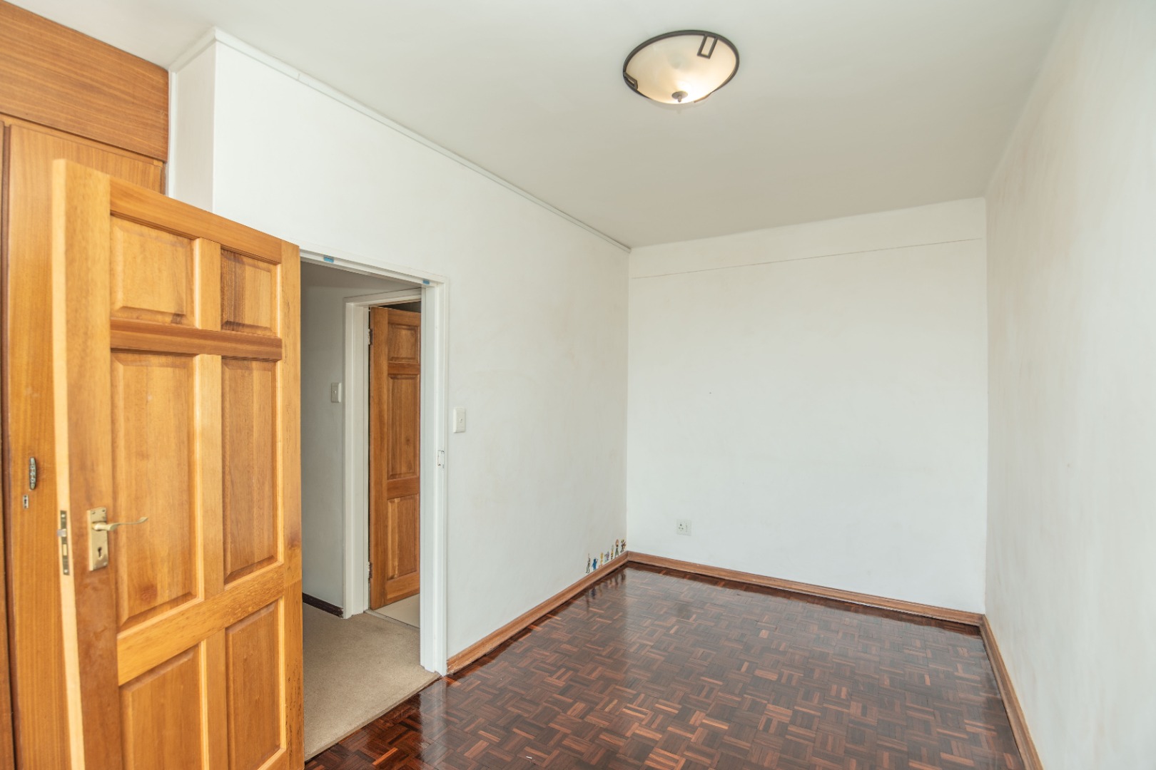 - The third bedroom features parquet flooring, continuing the home’s timeless charm.