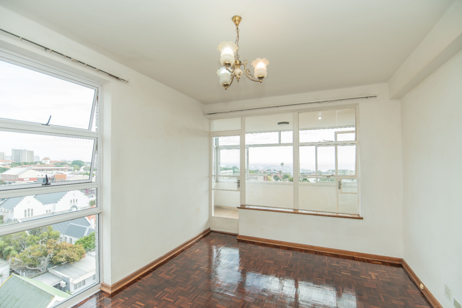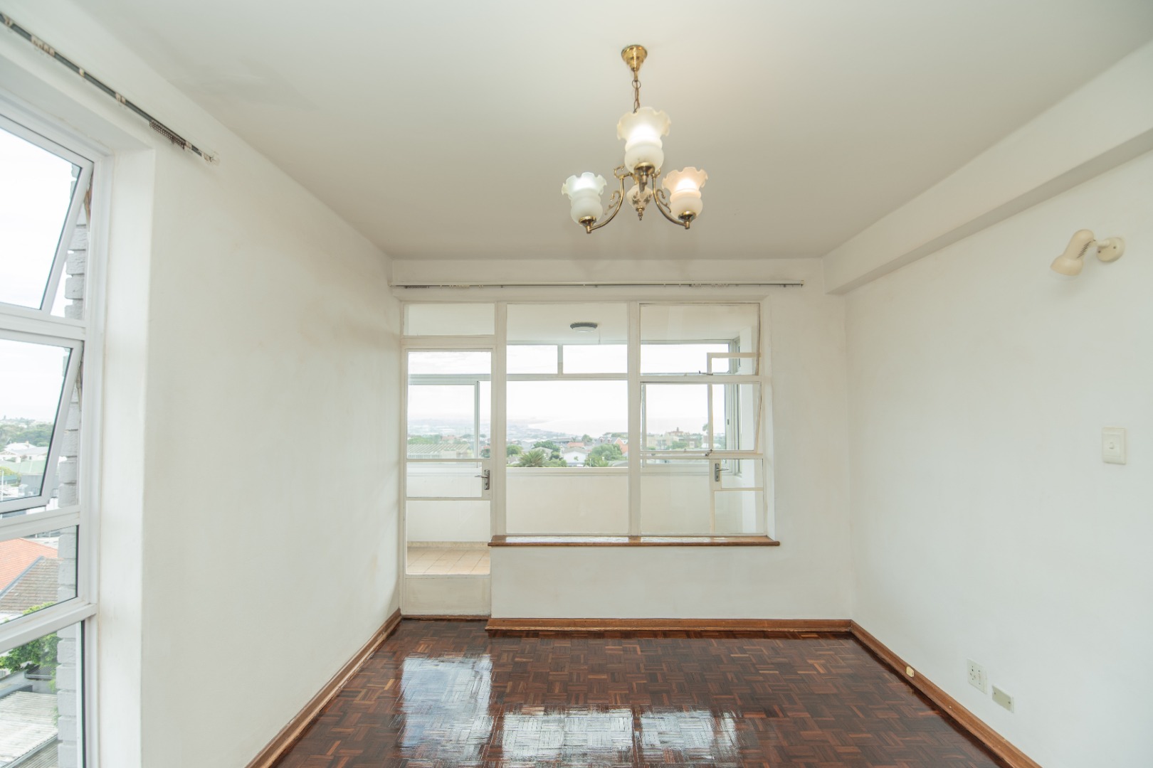 - The main bedroom has the original and freshly varnished parquet flooring, adding warmth and character, and opens onto a sun-filled enclosed balcony — ideal as a reading nook or all-season sunroom with panoramic views.