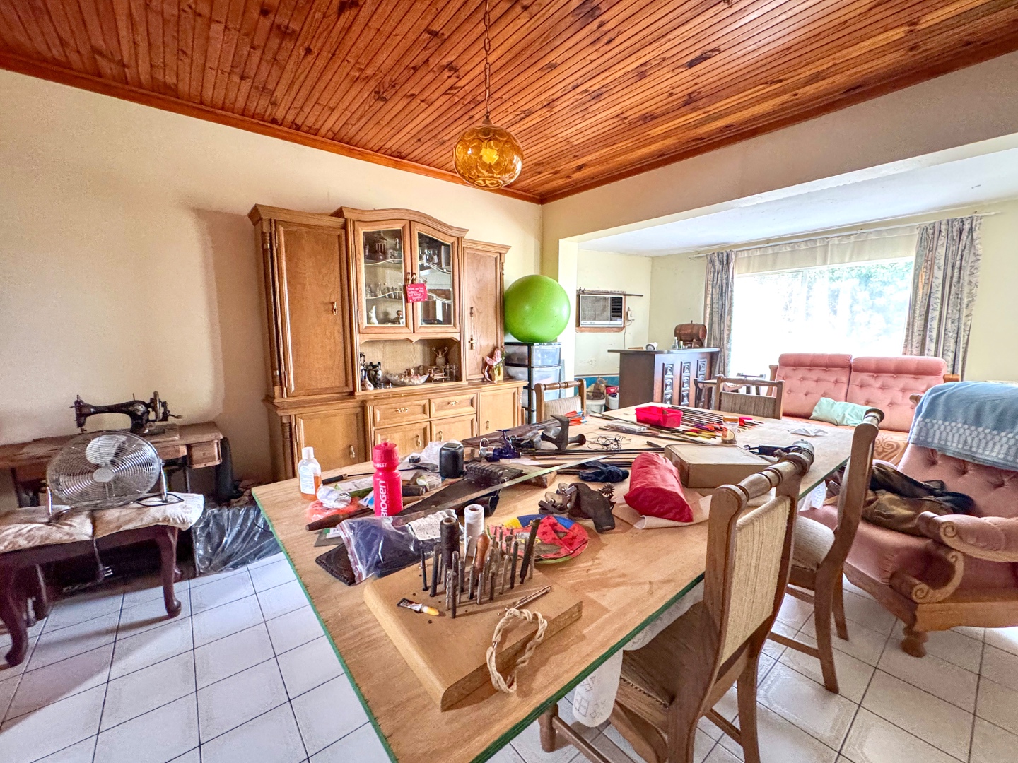3 spacious living areas with tiled floors with an open plan layout consisting of a lounge/TV room with fireplace, dining area with a pub.