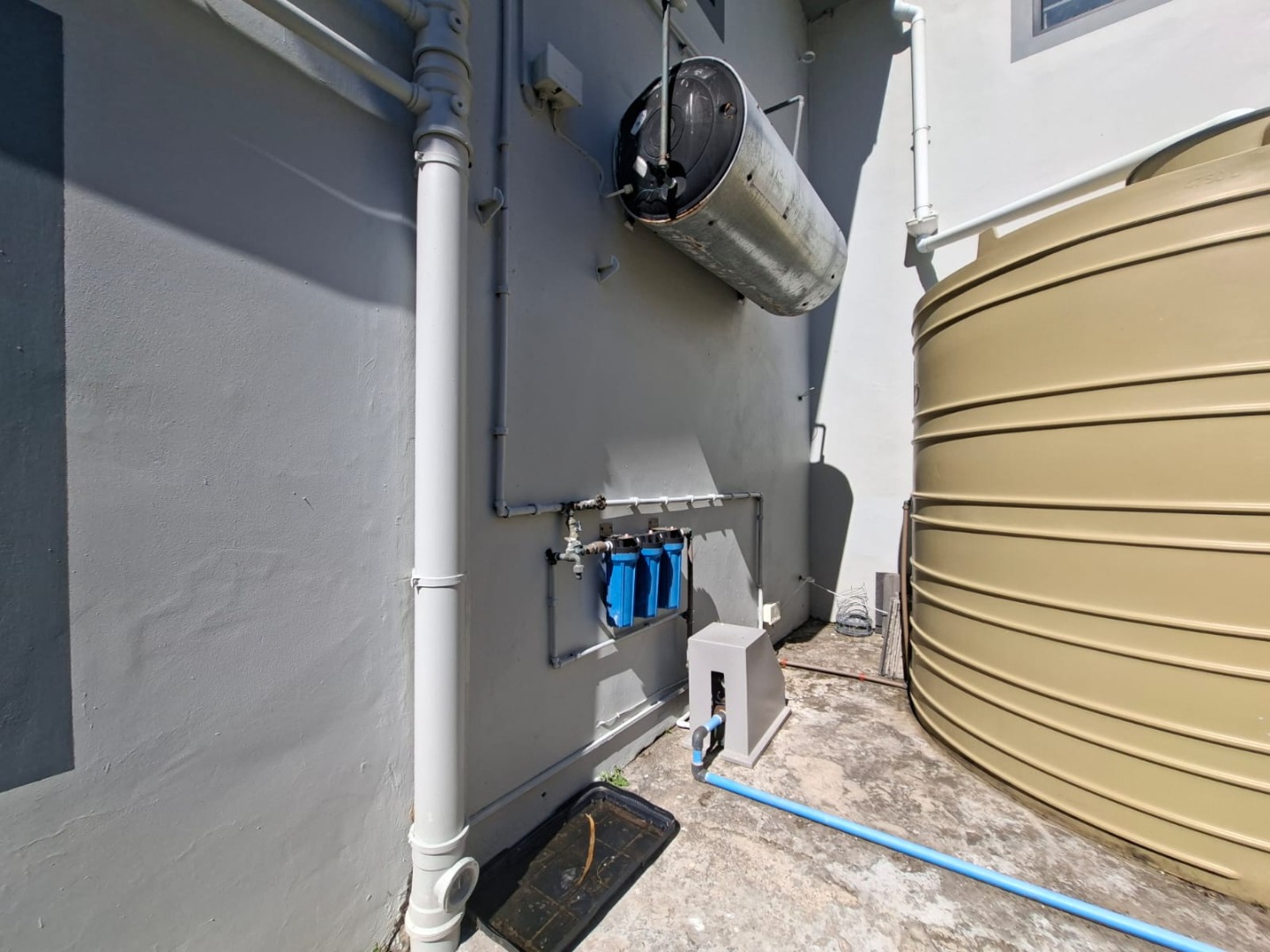 Designed with sustainability in mind, the property is equipped with two 5,000-litre water tanks, fully filtered and plumbed into the home — a valuable asset that adds long-term peace of mind.