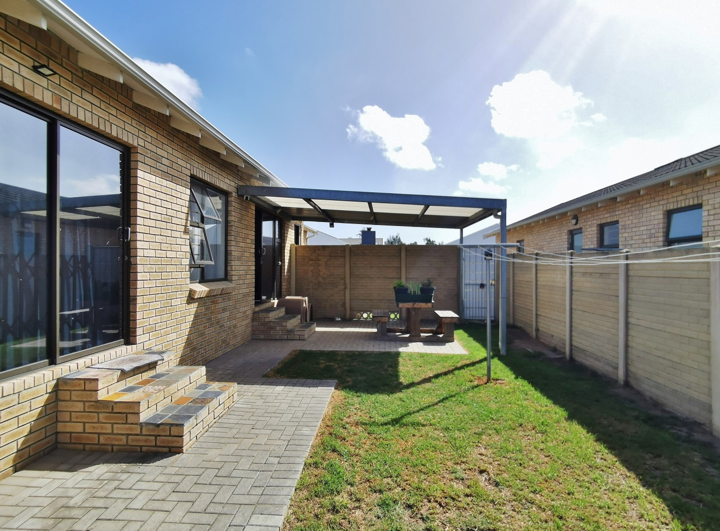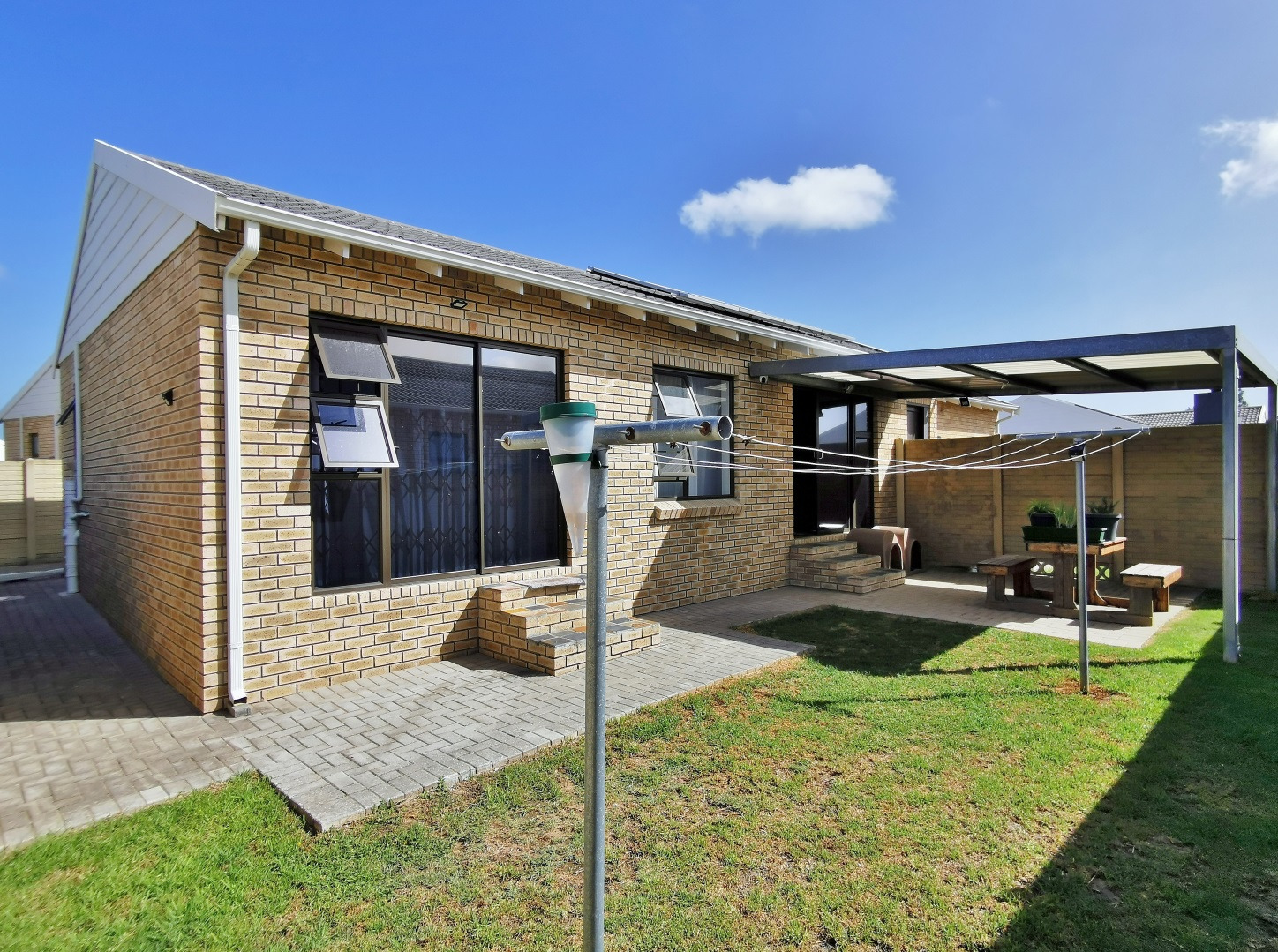 This well-appointed 3-bedroom, 2-bathroom freehold home is situated in the sought-after Thriftwood complex and offers practical, modern living with thoughtful extras. The main bedroom includes an en-suite bathroom, while the open-plan kitchen features a stylish centre island and flows seamlessly into the living area and out to a covered patio with built-in braai, perfect for entertaining.