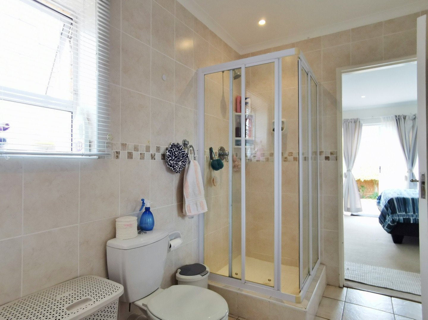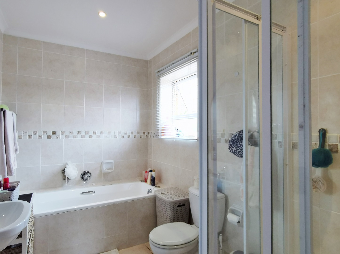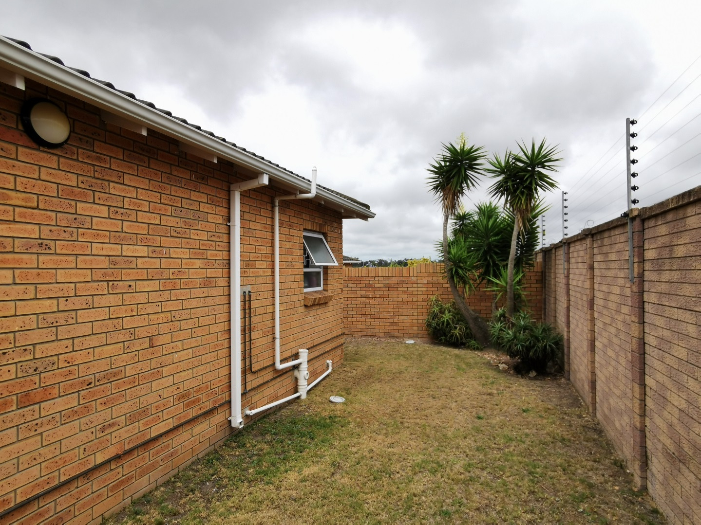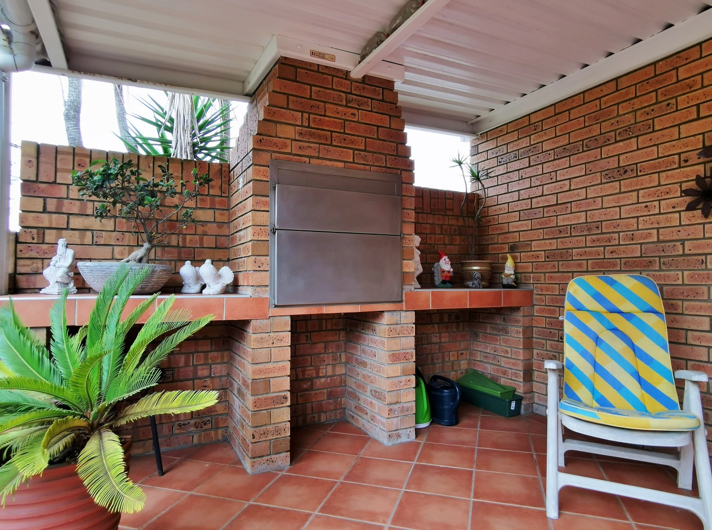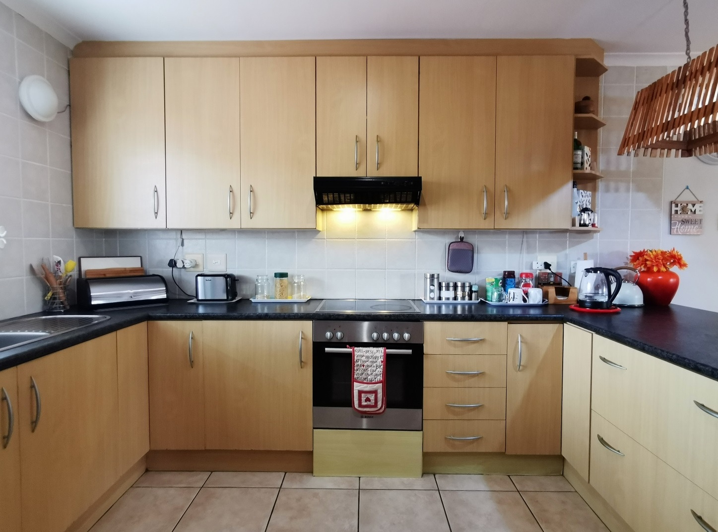 This well-maintained sectional title home offers comfortable living in a secure and pet-friendly complex. It features three bedrooms and two bathrooms, including a main en suite with a walk-through dressing area and sliding door opening onto a private paved patio in the garden. The kitchen is fitted with a breakfast counter, ceran hob, under-counter oven and is open plan to the carpeted living area, which leads out to a covered tiled patio with a built-in braai and an enclosed garden – ideal for entertaining.
