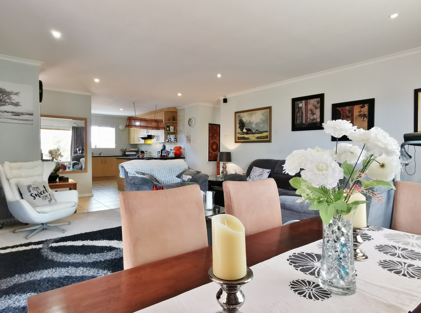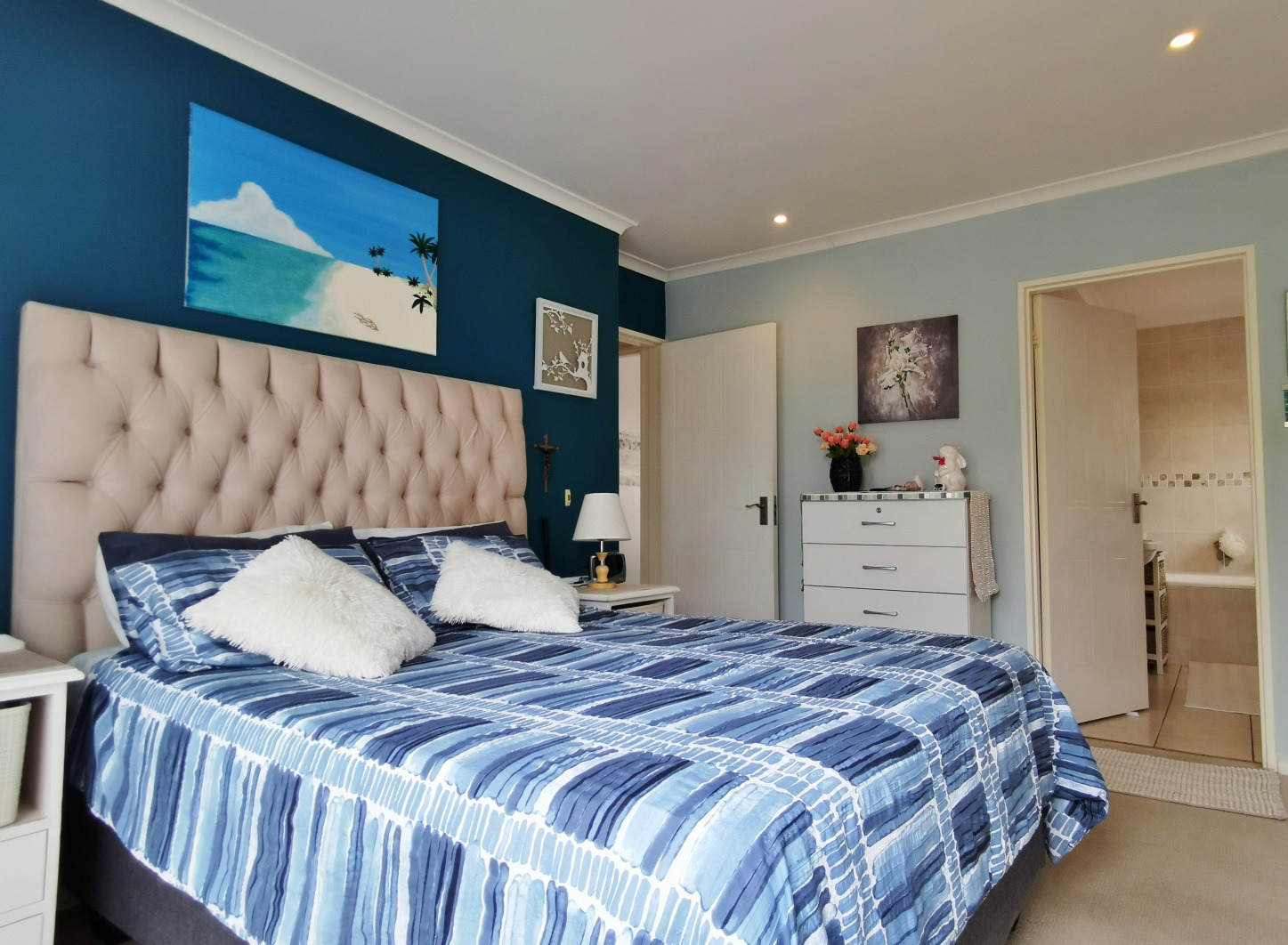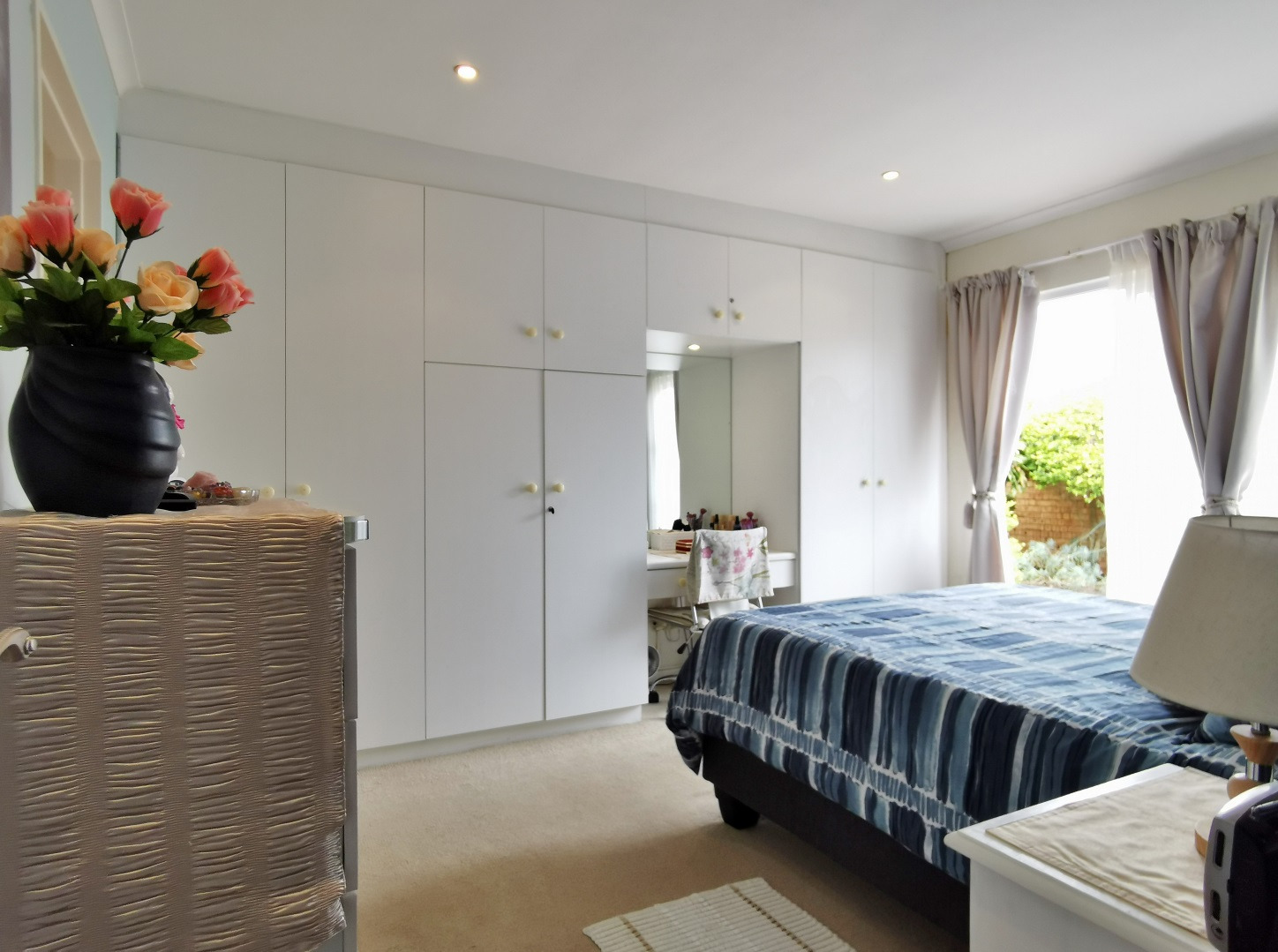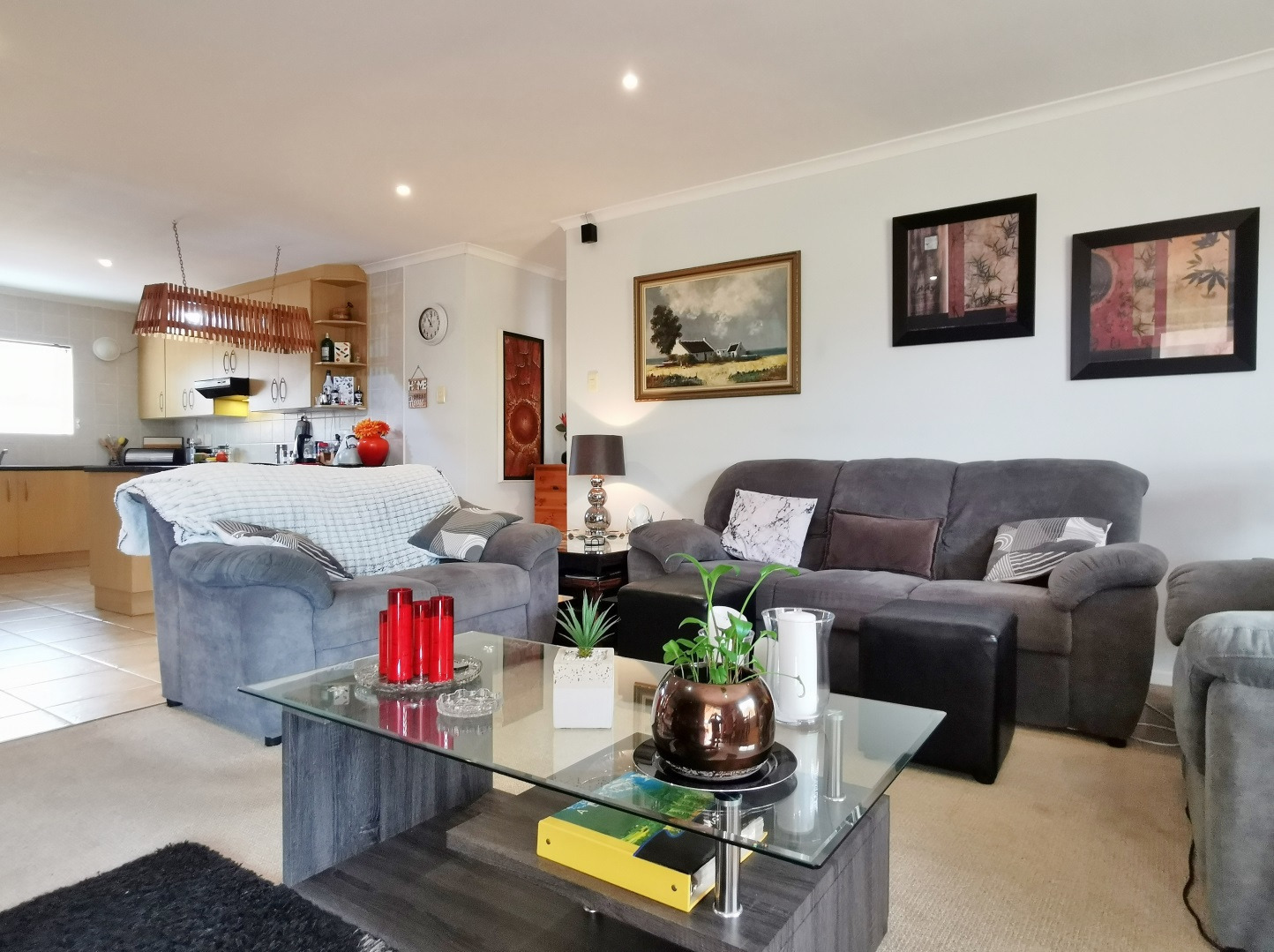 This well-maintained sectional title home offers comfortable living in a secure and pet-friendly complex. It features three bedrooms and two bathrooms, including a main en suite with a walk-through dressing area and sliding door opening onto a private paved patio in the garden. The kitchen is fitted with a breakfast counter, ceran hob, under-counter oven and is open plan to the carpeted living area, which leads out to a covered tiled patio with a built-in braai and an enclosed garden – ideal for entertaining.